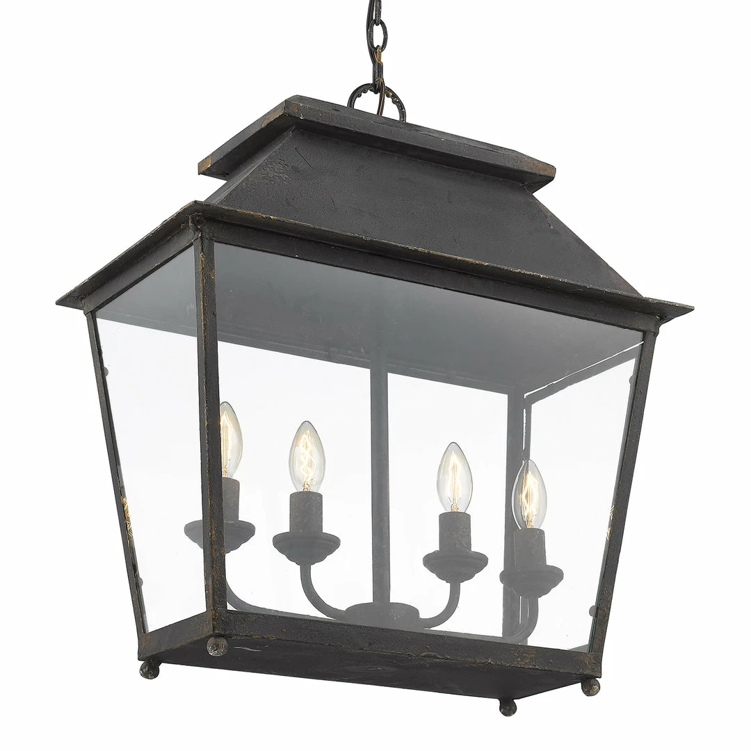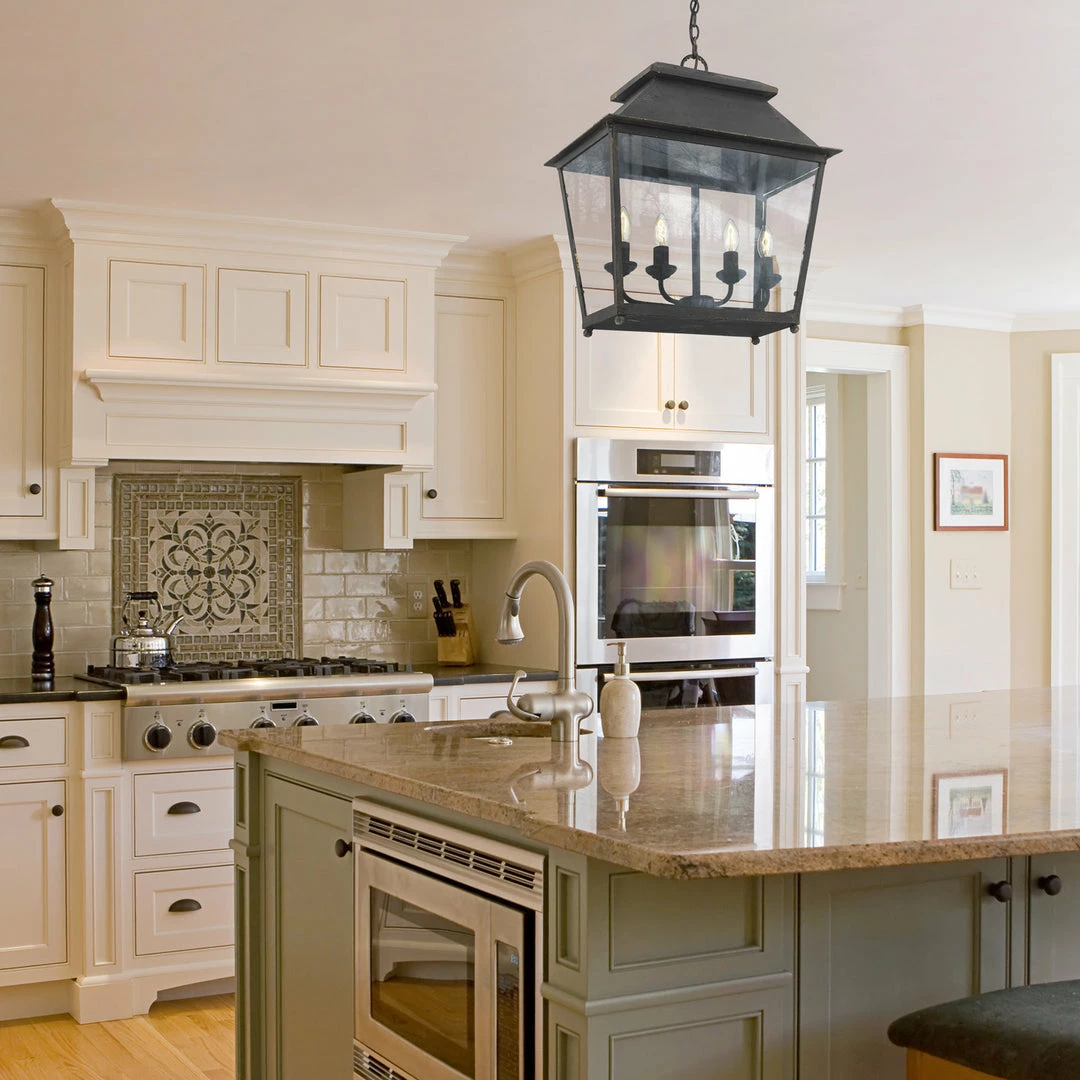 The Abingdon Collection features cozy, lantern style fixtures. This four-light pendant is available in choice finish options. The transitional style of this pendant will fit perfectly with your farmhouse design and it is available in two finishes. Pendants create stylish focal points and this 4-light pendant is comfortably sized for a cozy dining room, nook, or entry.