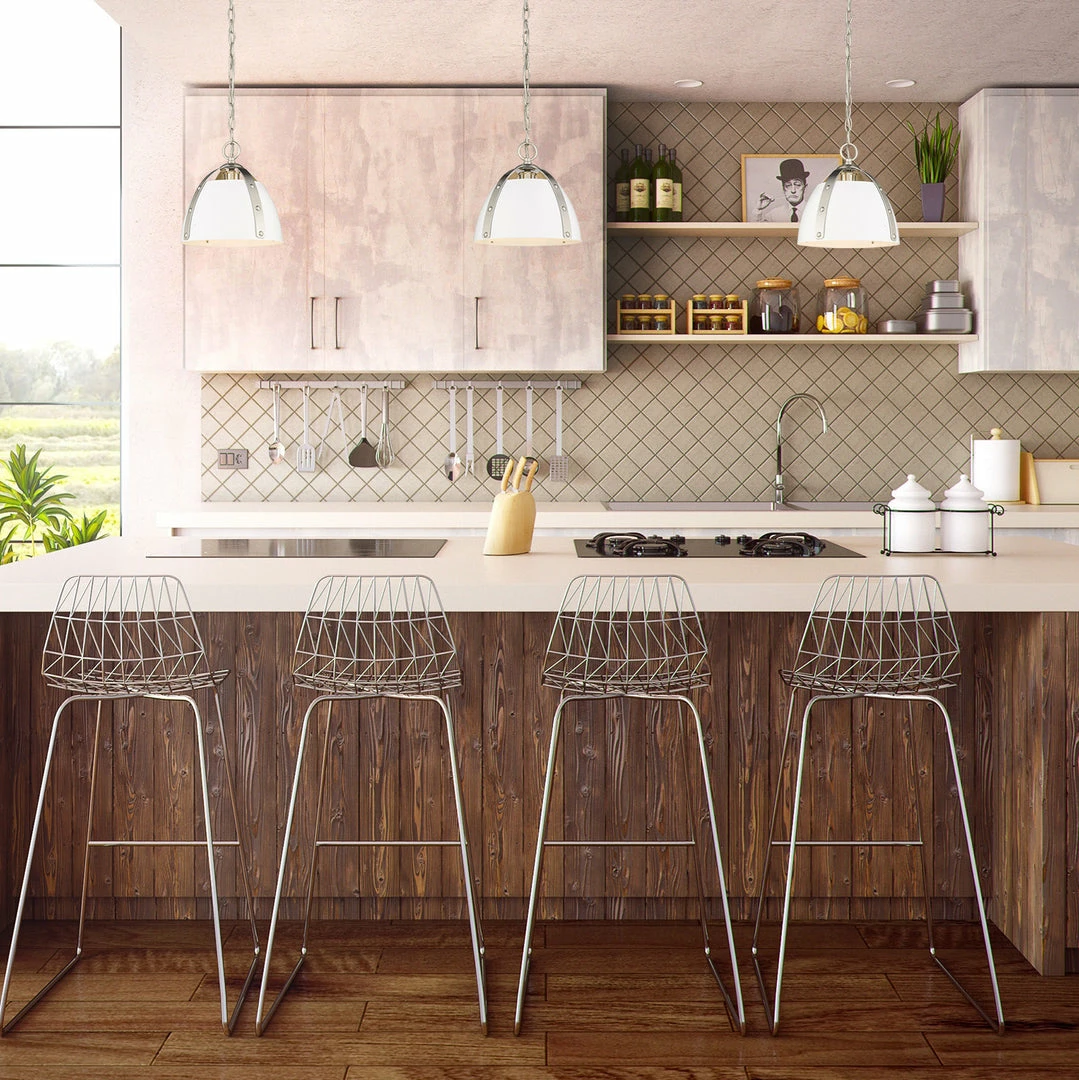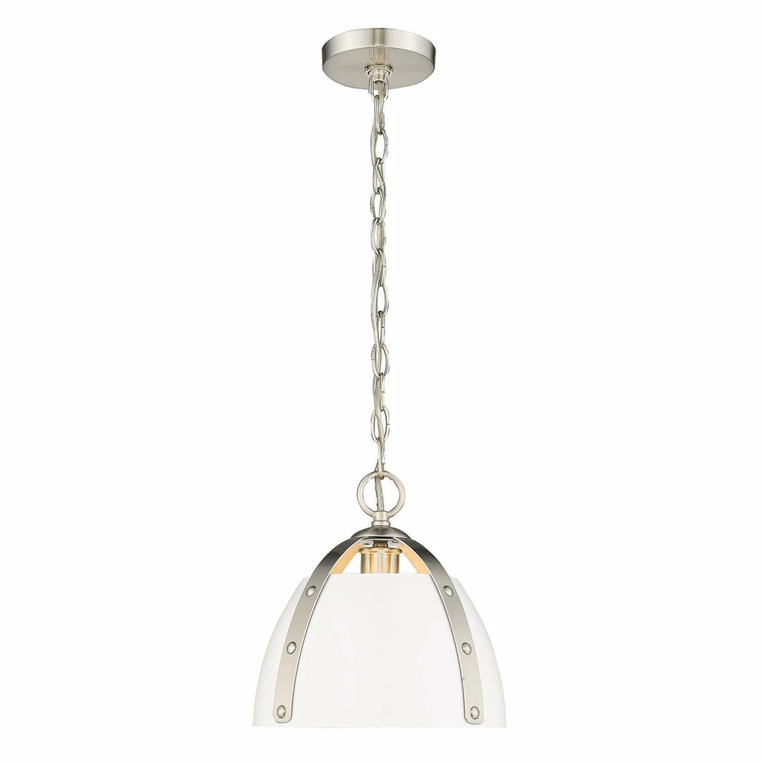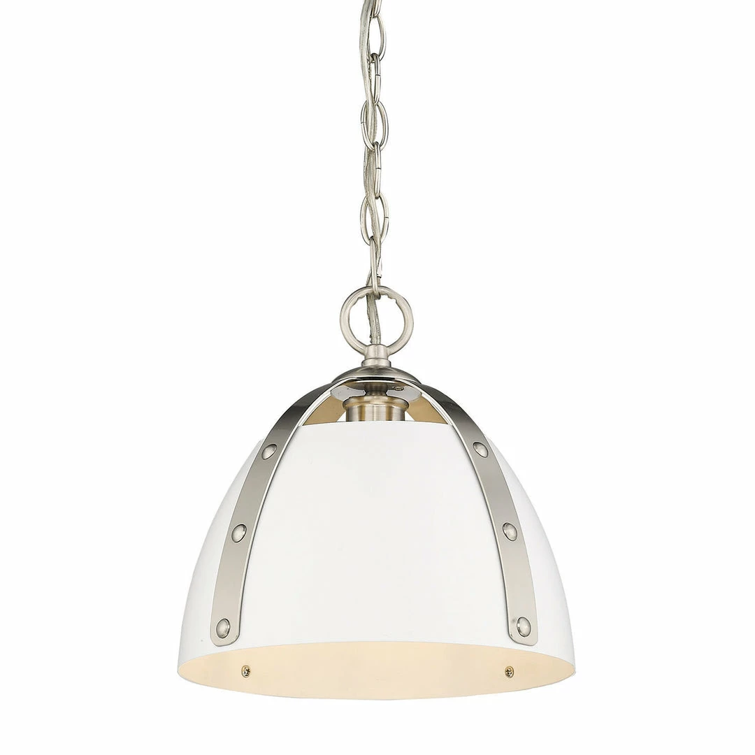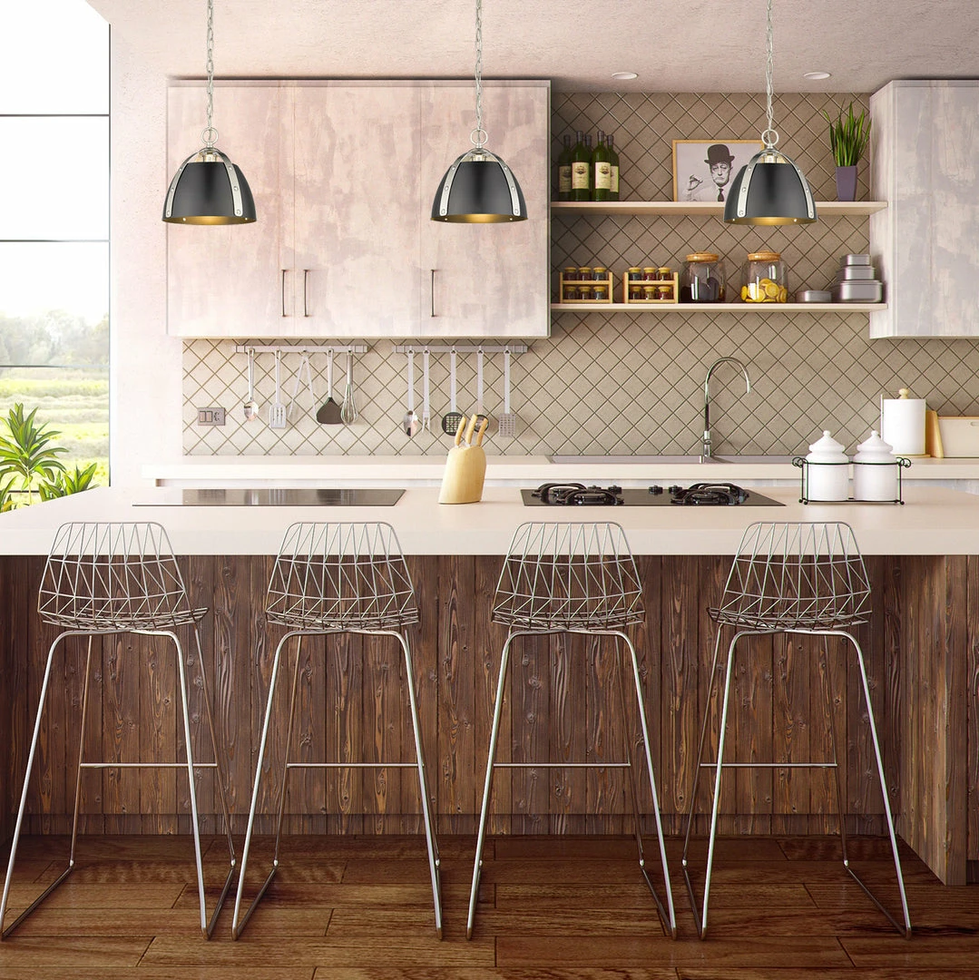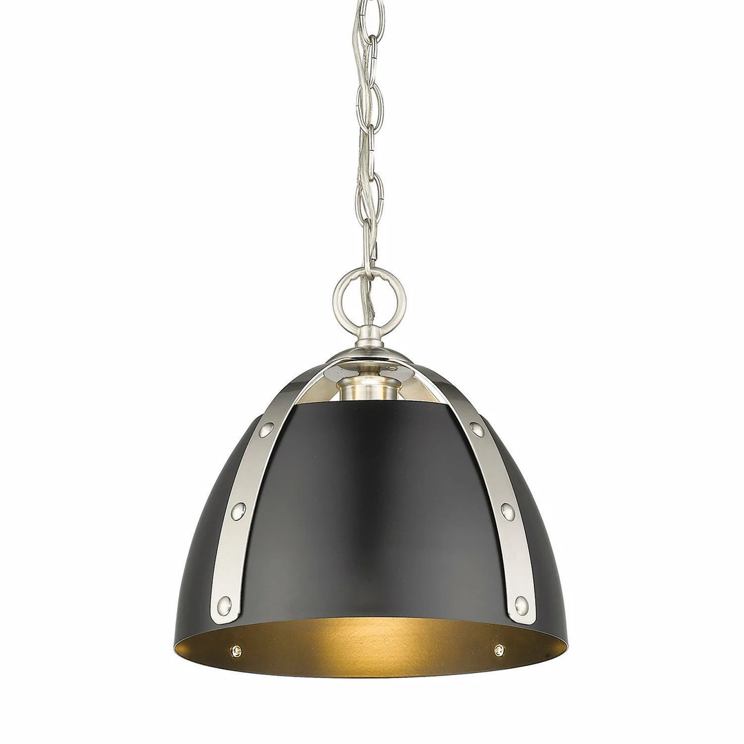 Finally, fashion meets function in a refined, oversized dome pendant with the ability to cast ample light. Aldrich is a stylish collection of industrial-inspired pendants designed to push bright ambient and task light through the tops and bottoms of metal shades. Heavy-duty rivets provide aesthetic appeal and utility, securing the matching wide steel straps to the coordinating shade. Created to complement a wide variety of interior styles, from modern to rustic, these pendants are available in multiple finish combinations. The frame is offered in multiple finishes with a selection of different shades to complete the look. This pendant is beautiful alone or arrayed in a group.