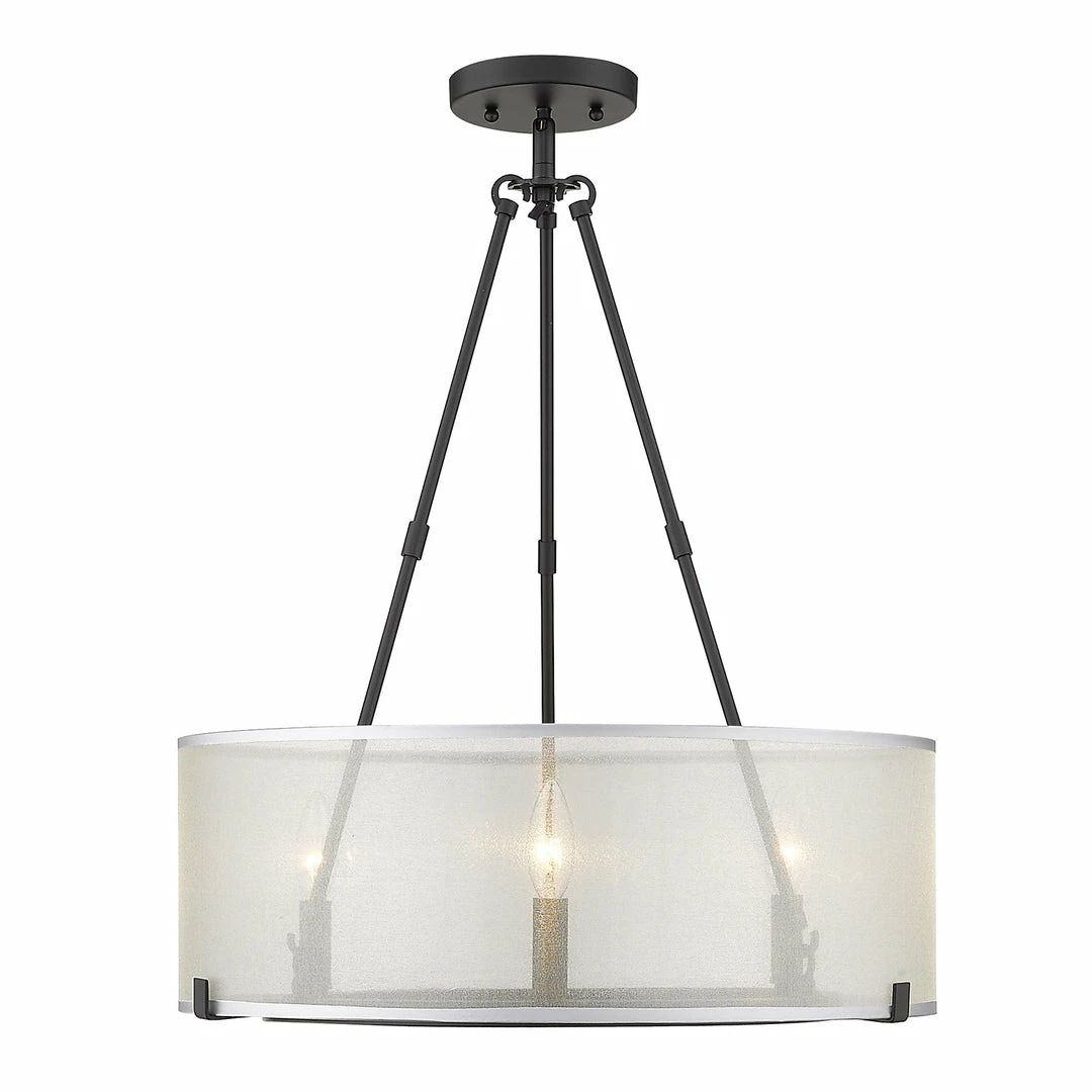 Beautifully brighten up your space with this chic feminine design. Alyssa is understated elegance in a transitional to modern form. The deceptively simple look has an underlying intelligent design that allows users to customize the hanging heights of the fixtures through the use of Alyssa’s short and long rods. The stylish, sheer opal fabric shade is positioned to lightly veil the candelabras. The connector rods act as a configurable detail. Break apart the connector rods to customize the look of the fixtures. Choose to install with the long connector rods, the short connector rods, or both. For versatility, this updated classic is offered in multiple finishes. This 3-light fixture creates a stylish focal point and is comfortably sized for intimate dining and living areas.