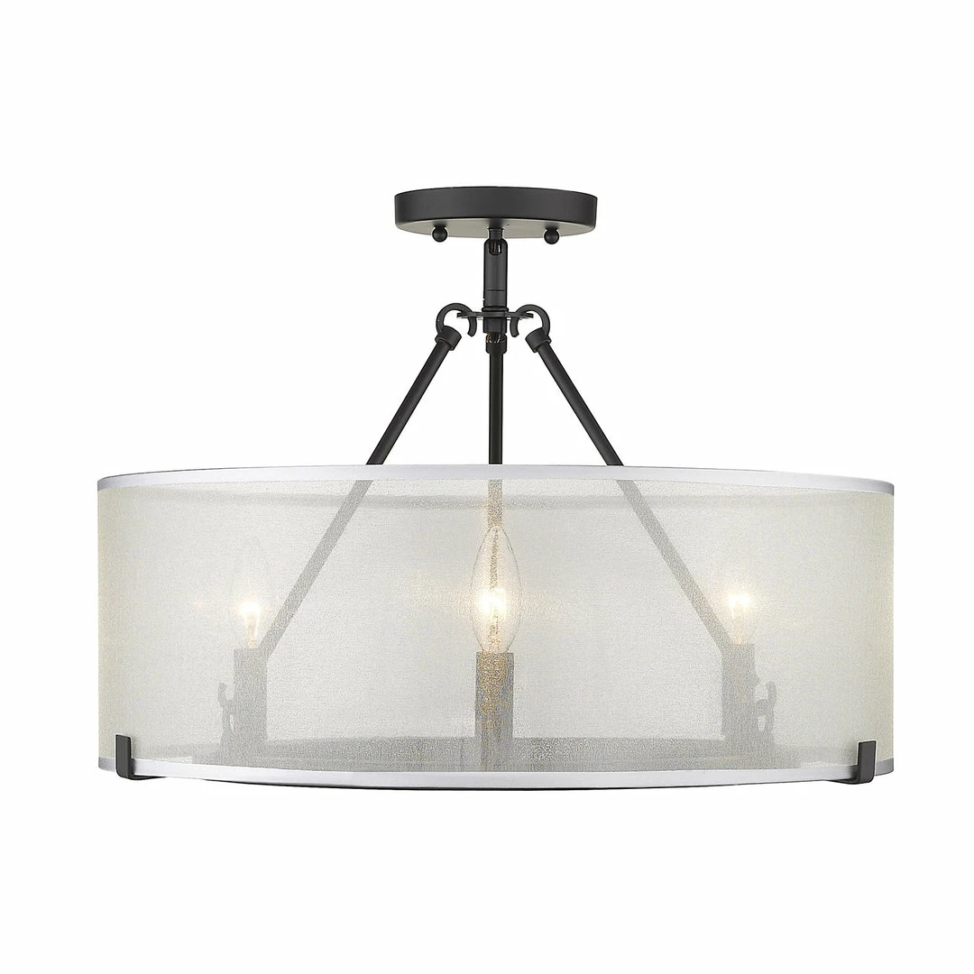Beautifully brighten up your space with this chic feminine design. Alyssa is understated elegance in a transitional to modern form. The deceptively simple look has an underlying intelligent design that allows users to customize the hanging heights of the fixtures through the use of Alyssa’s short and long rods. The stylish, sheer opal fabric shade is positioned to lightly veil the candelabras. The connector rods act as a configurable detail. Break apart the connector rods to customize the look of the fixtures. Choose to install with the long connector rods, the short connector rods, or both. For versatility, this updated classic is offered in multiple finishes. This 3-light fixture creates a stylish focal point and is comfortably sized for intimate dining and living areas.