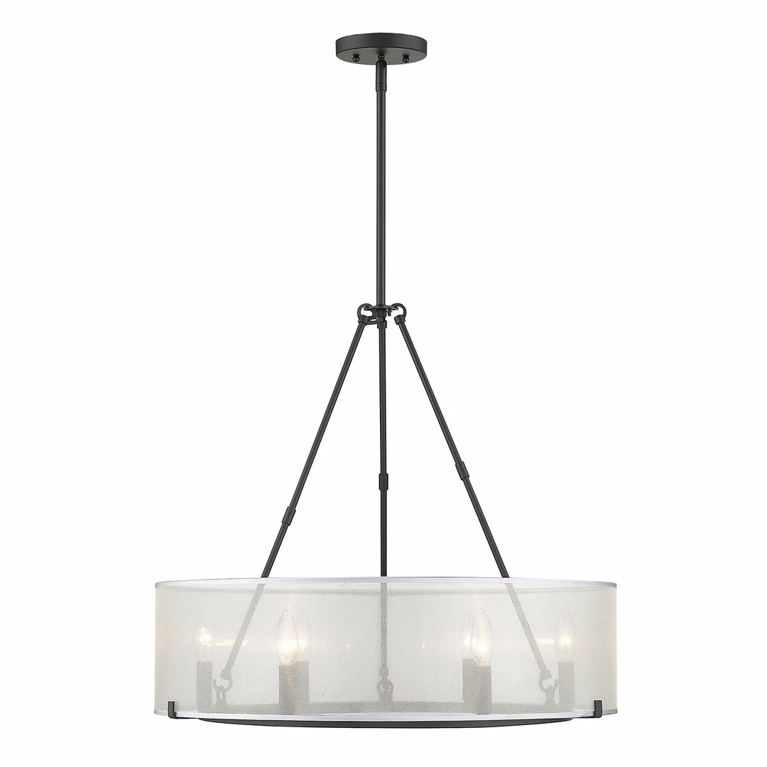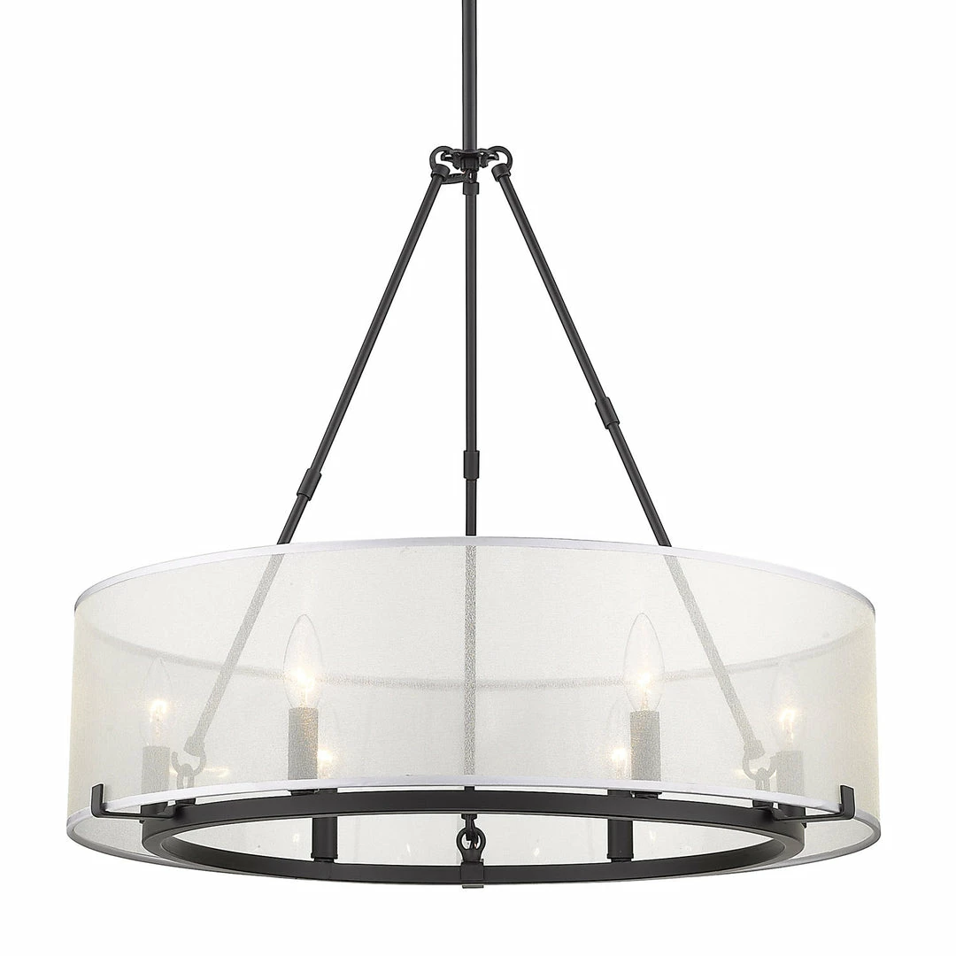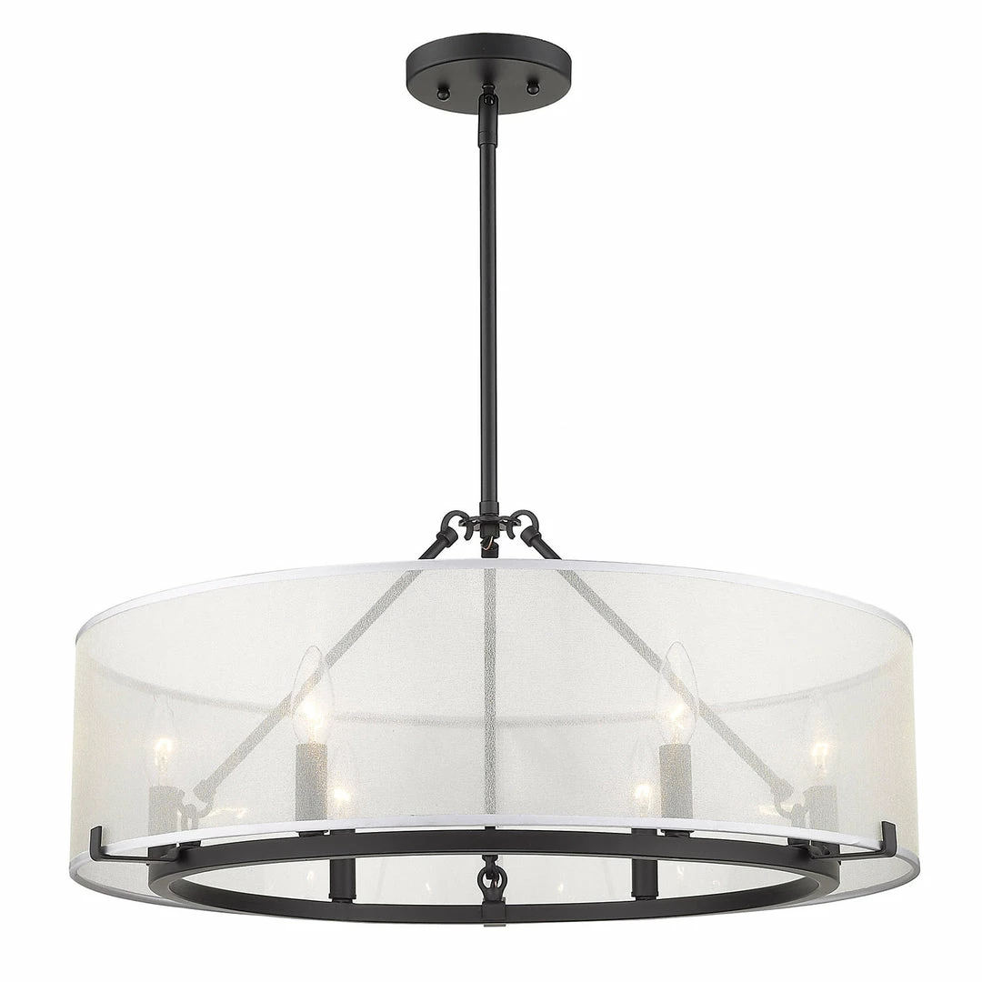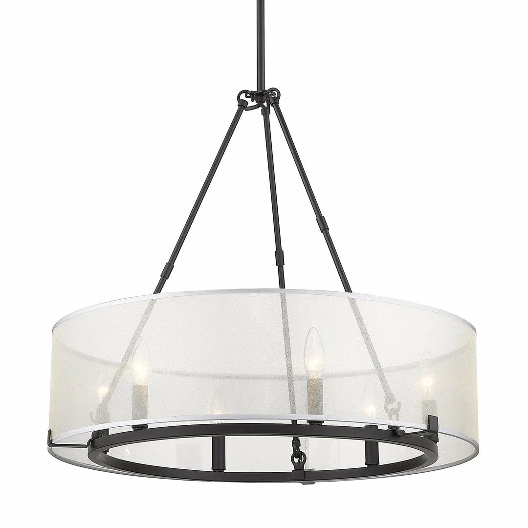 Beautifully brighten up your space with this chic feminine design. Alyssa is understated elegance in a transitional to modern form. The deceptively simple look has an underlying intelligent design that allows users to customize the hanging heights of the fixtures through the use of Alyssa’s short and long rods. The stylish, sheer opal fabric shade is positioned to lightly veil the candelabras. The connector rods act as a configurable detail. Break apart the connector rods to customize the look of the fixtures. Choose to install with the long connector rods, the short connector rods, or both. For versatility, this updated classic is offered in multiple finishes. This 6-light fixture creates a stylish focal point and is comfortably sized for intimate dining and living areas.