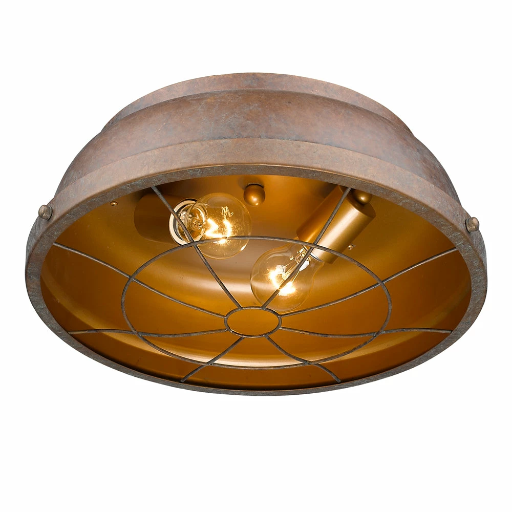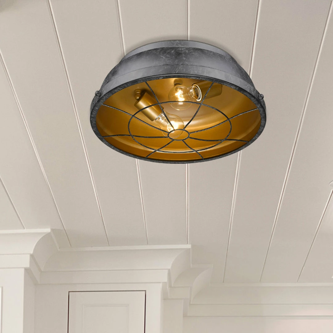 The Bartlett collection features industrial, vintage-inspired fixtures with simple, traditional silhouettes that are a nod to a bygone era. The collection features authentic details like caged diffusers and exposed hardware. Available in a selection of rustic finishes. This flush mount offers widespread ambient lighting.