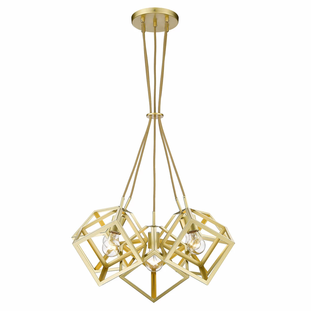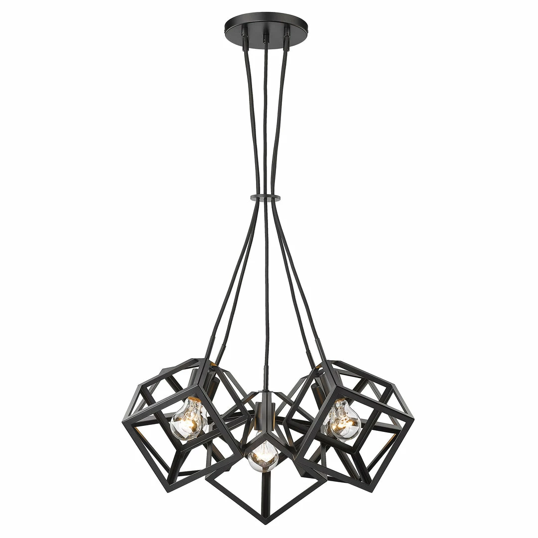 Strong, industrial lines and a unique geometric design are the basis of the Cassio series. Dramatic, double edges and bold lines make Cassio a focal point that is sure to add visual interest to any space. As if frozen in space, an exposed lamp sits within a suspended 3-dimensional cube. The open, glass-free cage lends an airy, playful tone while providing utility in the form of widespread light and easy bulb changes. Choose between trending metal finishes like Olympic Gold and Matte Black.