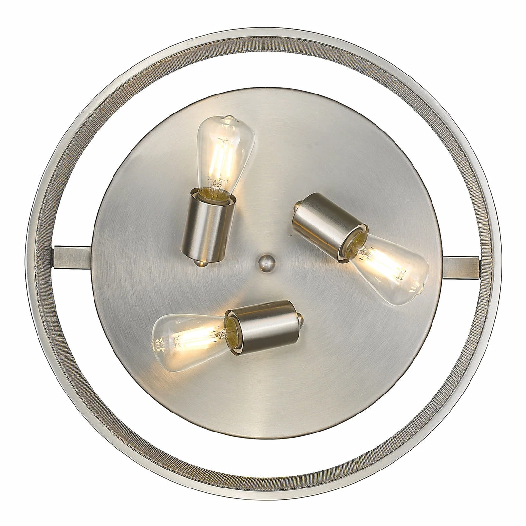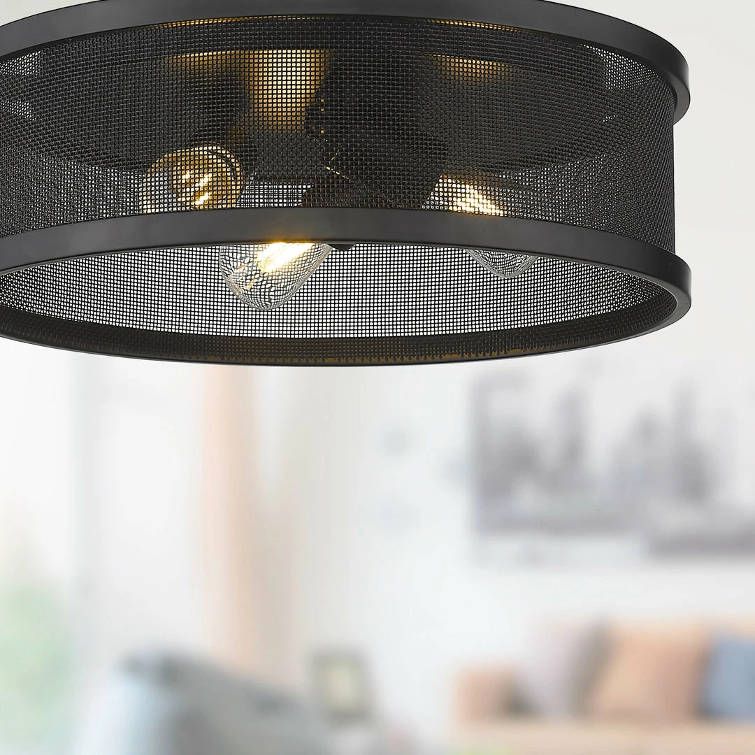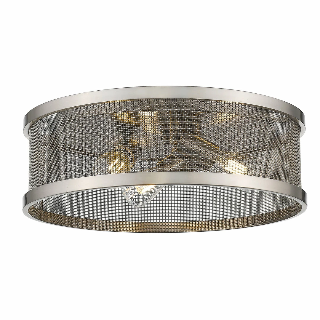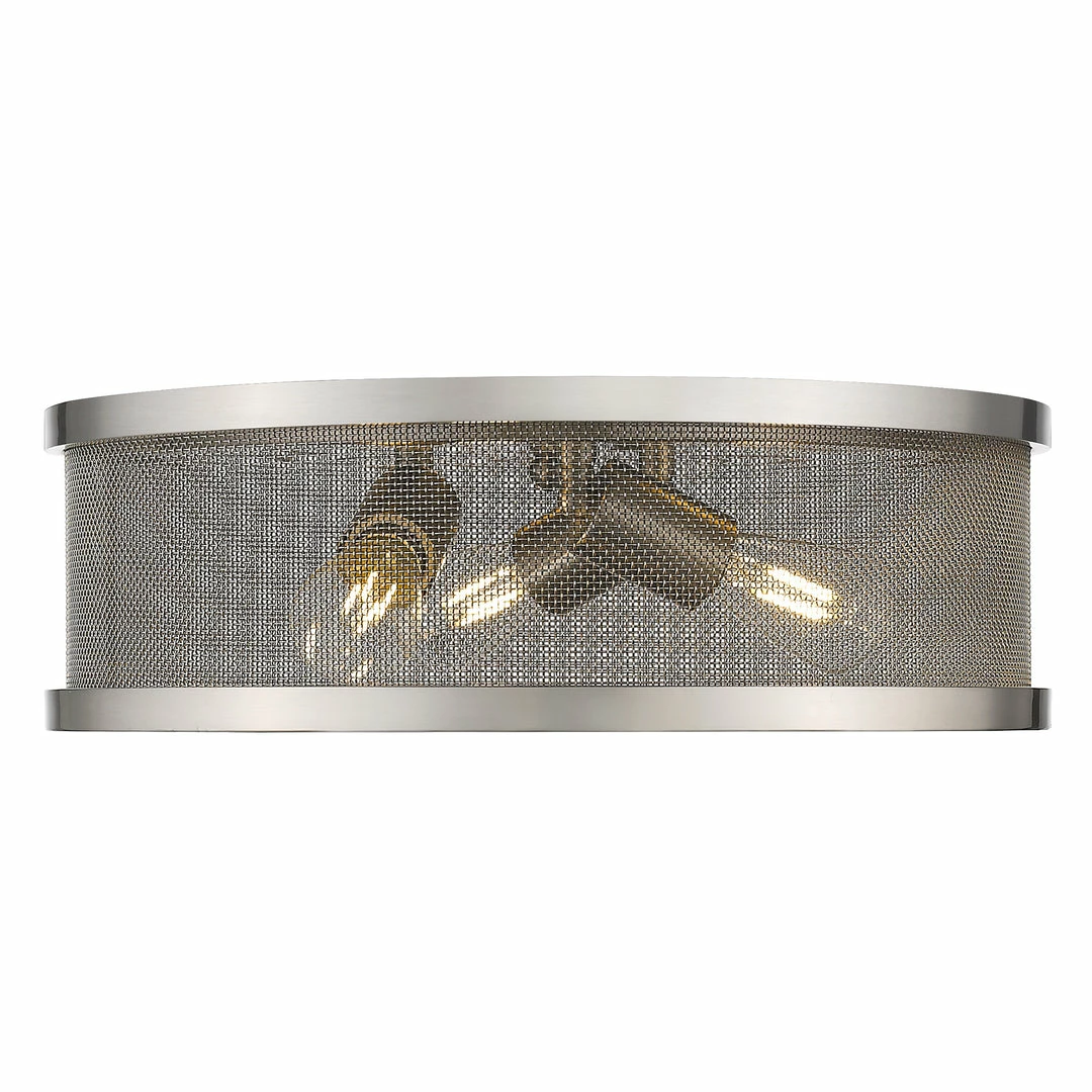 The simple, partially exposed lamps of the Channing collection reinforces the transitional and industrial-chic style. A mesh metal shade is the only accent for this utilitarian fixture. The contemporary shade partially shields the bulbs and gently diffusing the fixture’s bright light. The low-profile design is offered in multiple finishes and sizes. Perfect for a bedroom, hallway, or bath, this fixture is approved for use in damp locations.