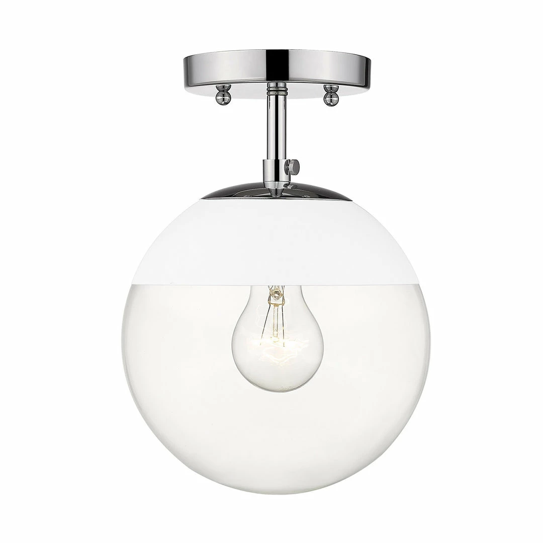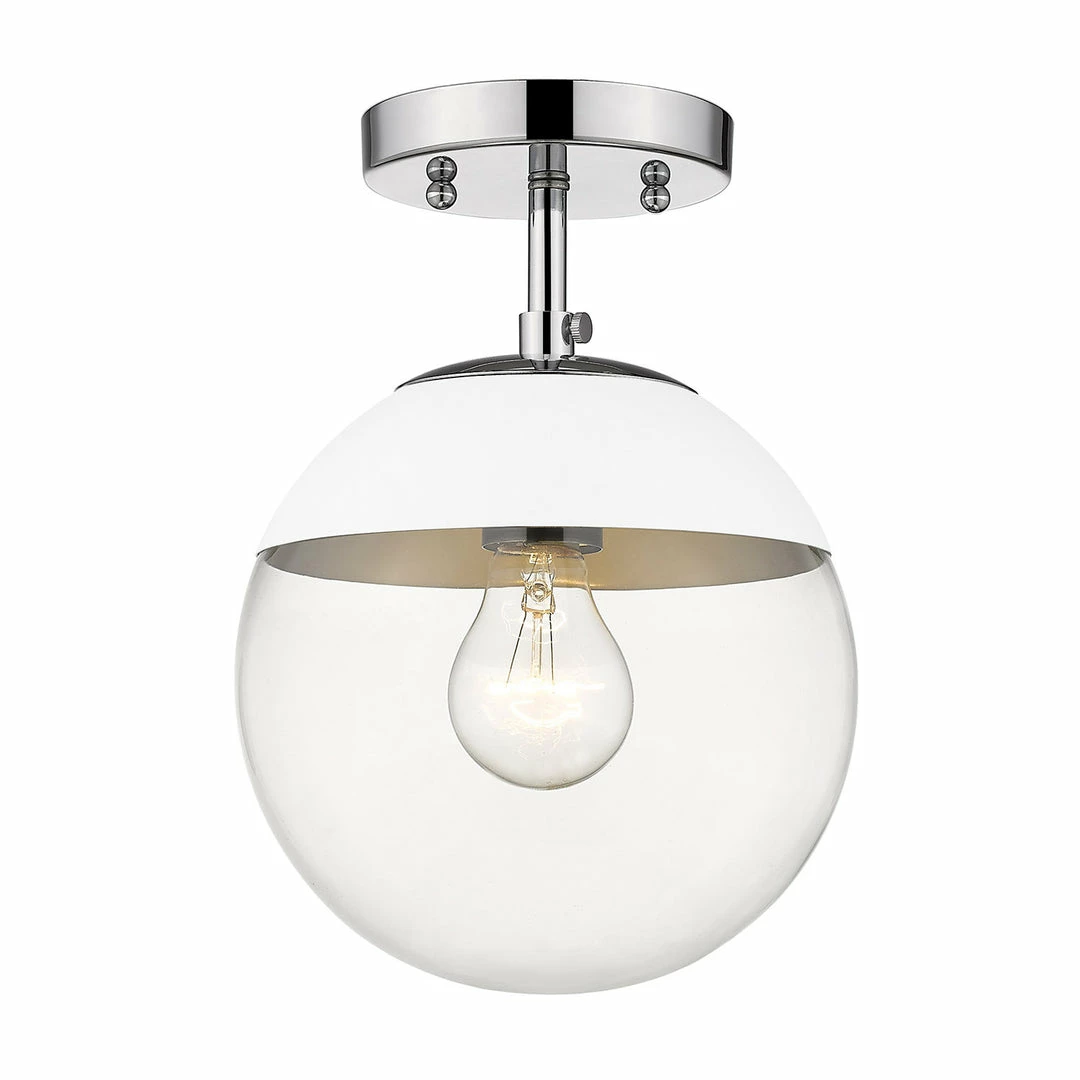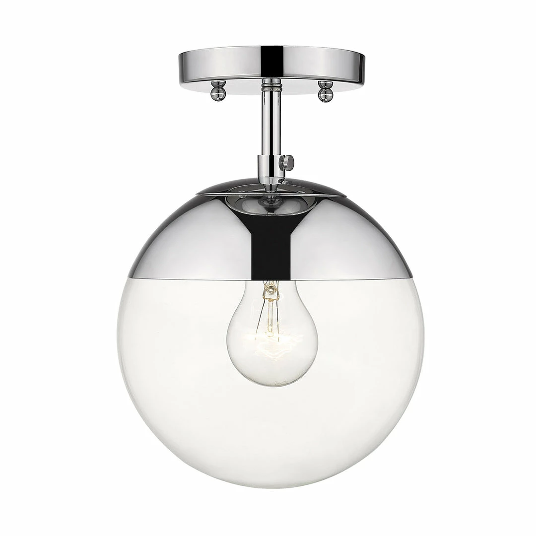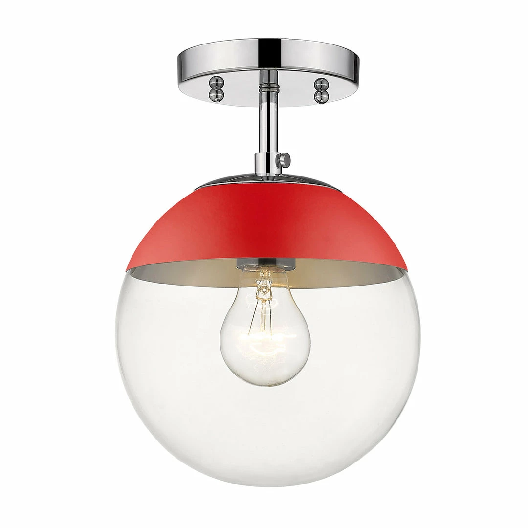 Mid-century modern design with a modern twist, these fashionable orbs are highly customizable. Available in clear or opal glass with plated chrome, pewter or brass hardware. Caps are available in a number of accent colors to further customize your look. Choose colors and finishes that complement your existing dรฉcor or design your entire room around your favorite color combination. This semi-flush is UL approved for use in a bathroom, but also works perfectly in a kitchen, living room, entry, or hallway.