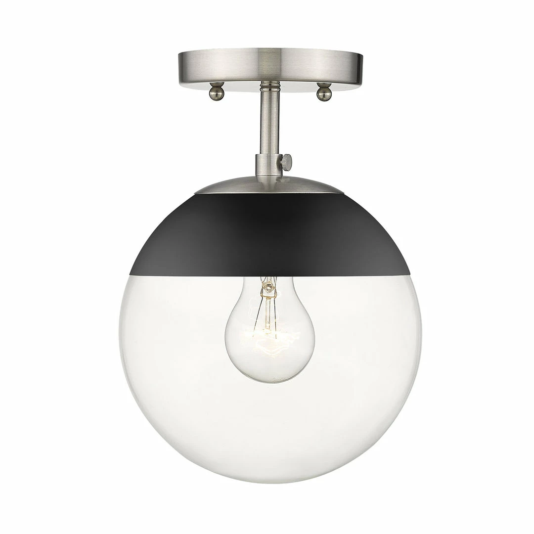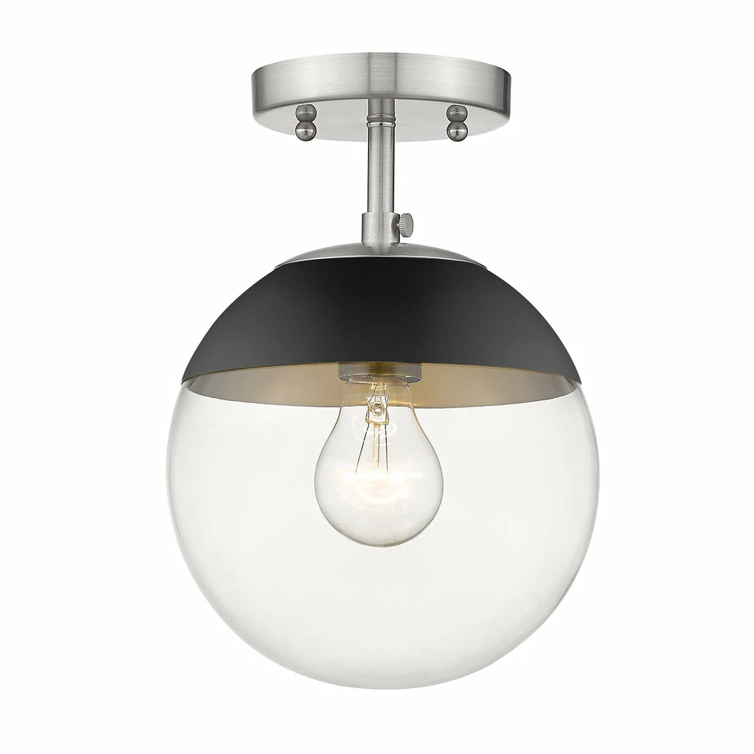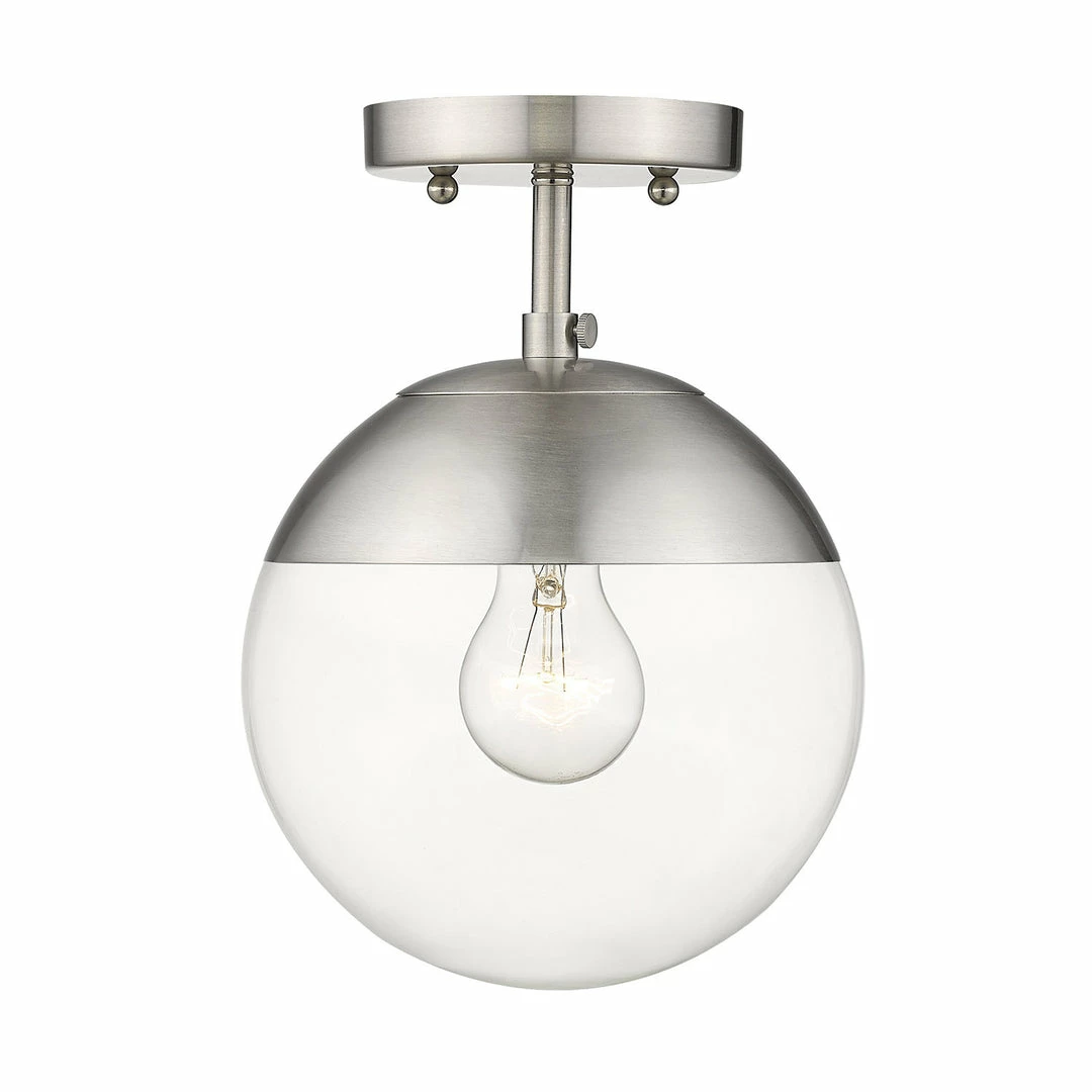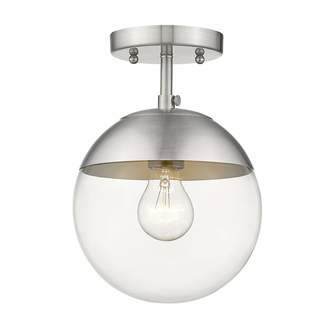 Mid-century modern design with a modern twist, these fashionable orbs are highly customizable. Available in clear or opal glass with plated chrome, pewter or brass hardware. Caps are available in a number of accent colors to further customize your look. Choose colors and finishes that complement your existing dรฉcor or design your entire room around your favorite color combination. This semi-flush is UL approved for use in a bathroom, but also works perfectly in a kitchen, living room, entry, or hallway.
