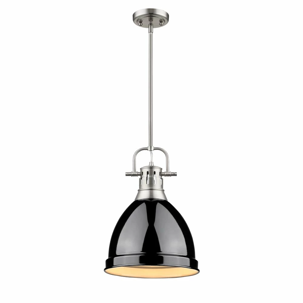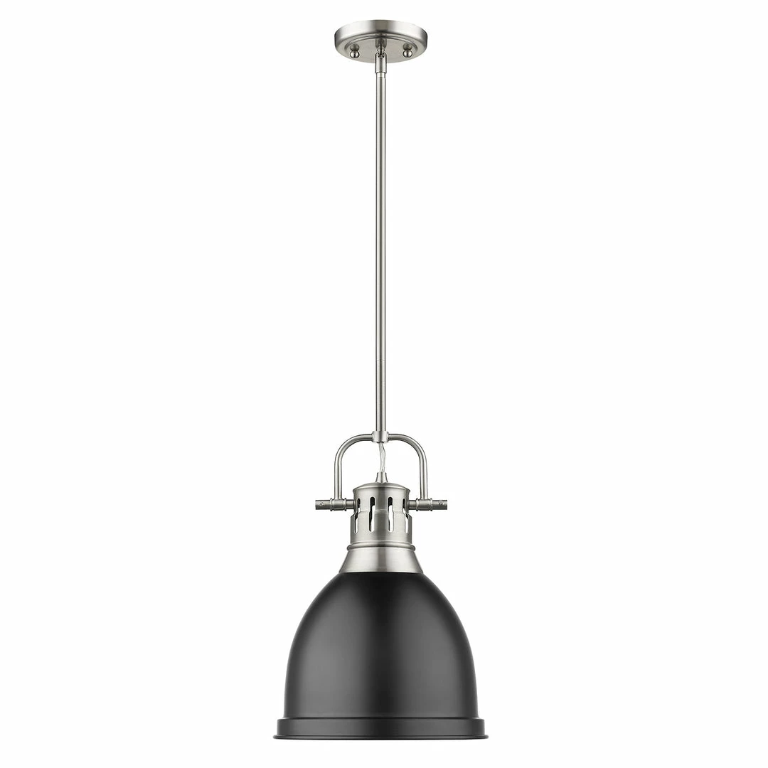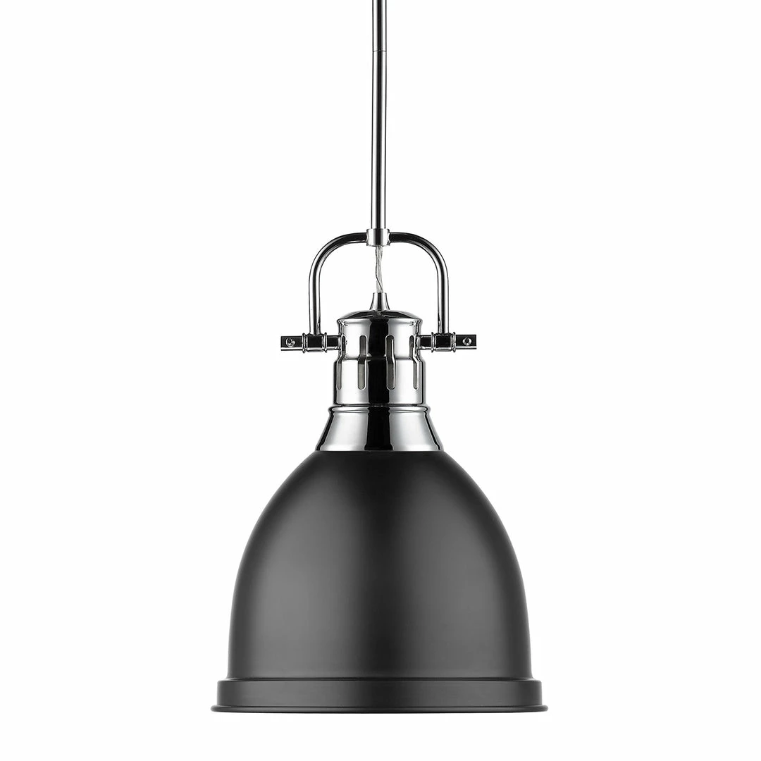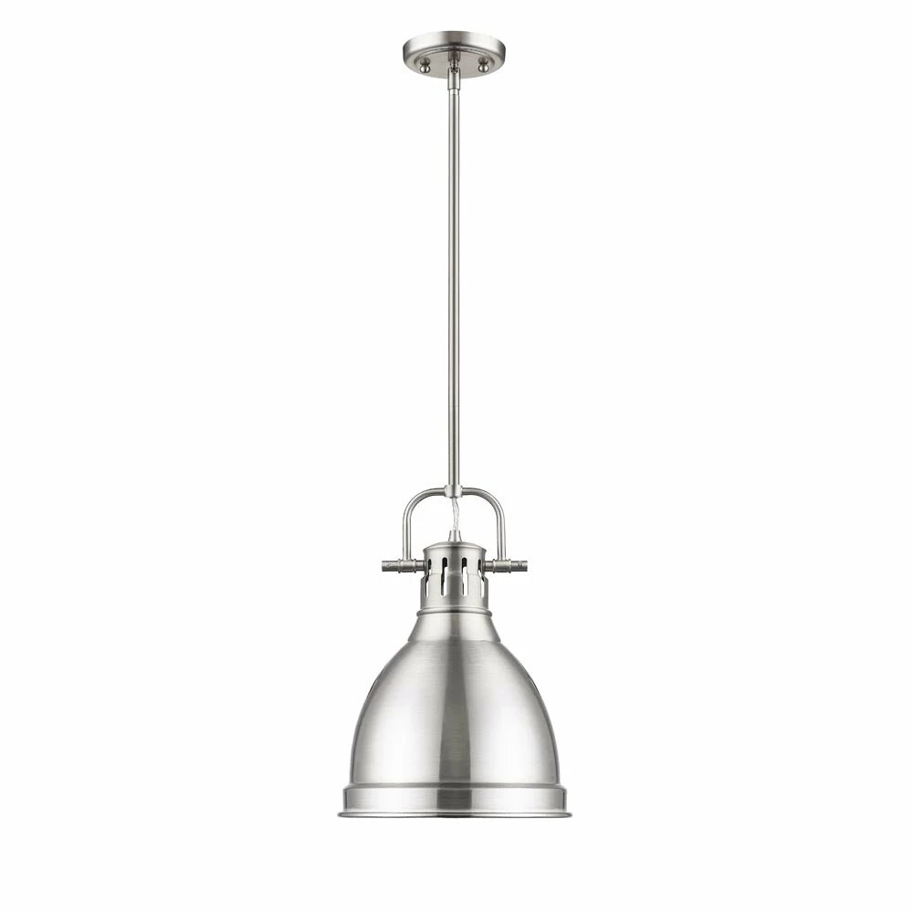 The Duncan collection is contemporary style with an industrial feel. The collection features a variety of simple, traditional silhouettes that are a nod to a bygone era. Transform the look of your room with these classic, vintage-inspired fixtures. A variety of plated and painted metal shade finishes are offered in choice combinations. This small, rod-hung pendant features a may be hung individually or grouped over a bar.