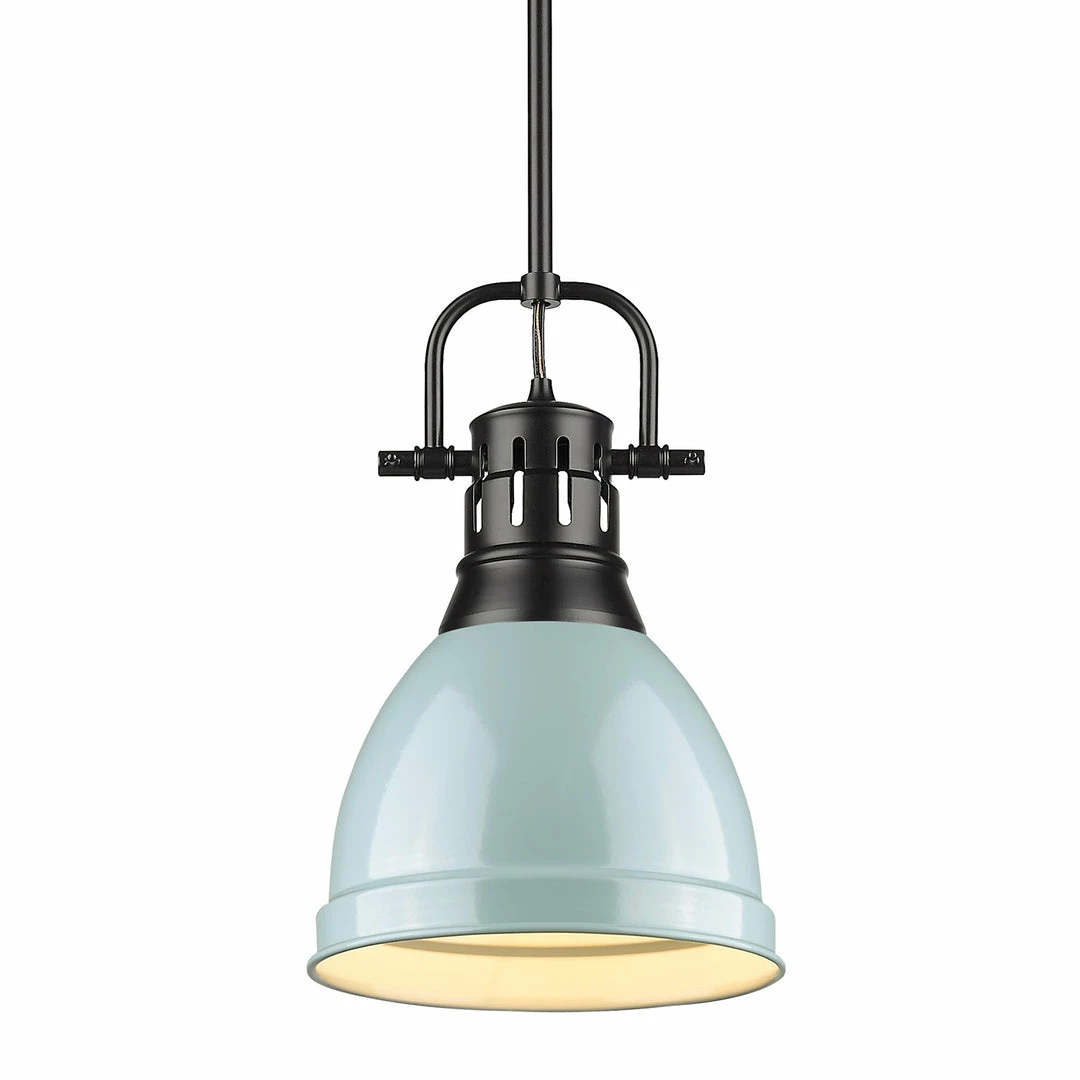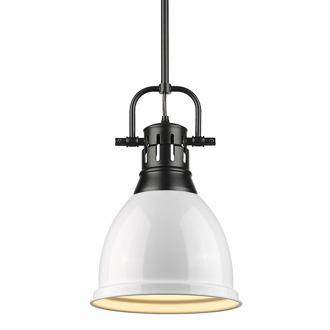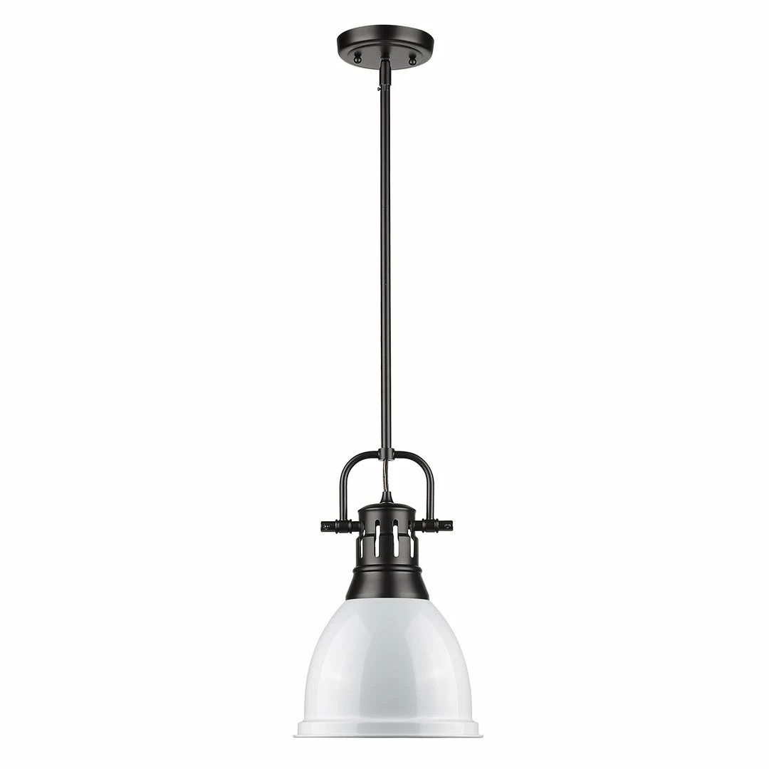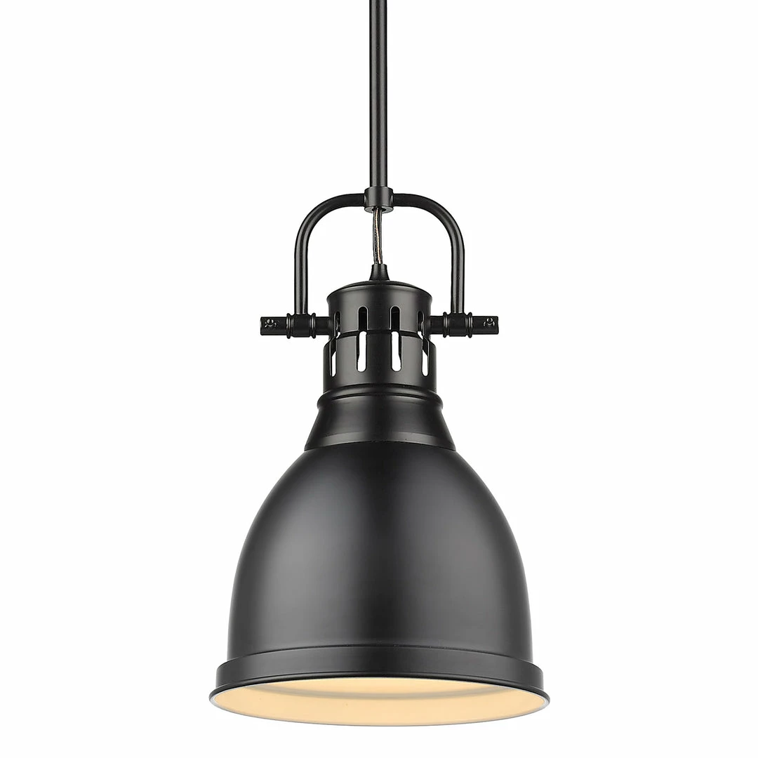 The Duncan collection is contemporary style with an industrial feel. The collection features a variety of simple, traditional silhouettes that are a nod to a bygone era. Transform the look of your room with these classic, vintage-inspired fixtures. A variety of plated and painted metal shade finishes are offered in choice combinations. This small, rod-hung pendant features a may be hung individually or grouped over a bar.