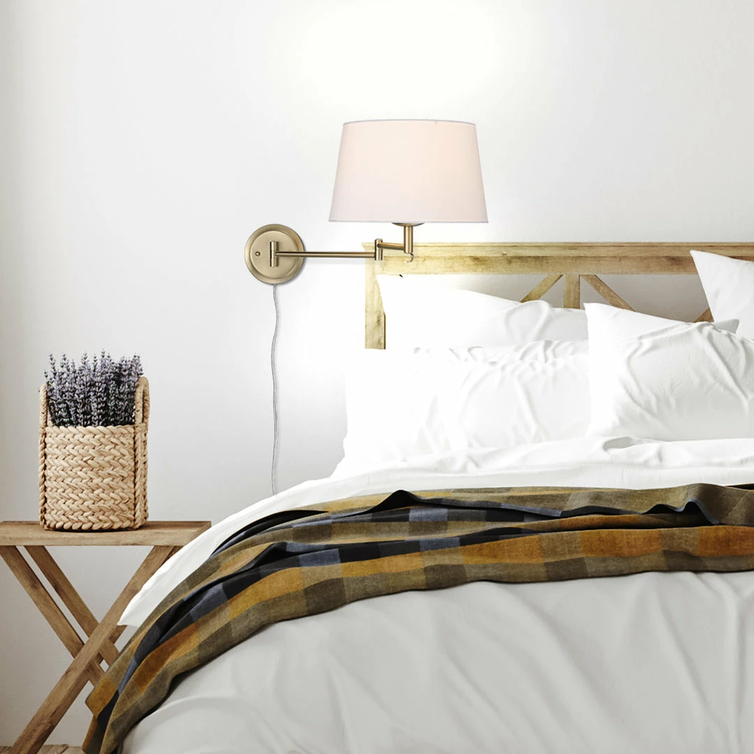 Clean lines and refined accents give Eleanor a timeless appearance that is perfect for traditional to transitional homes. Traditional elements are paired with stylish functions in this collection of articulating wall sconces. Available in trending finishes and shade options, these versatile fixtures can be plugged in or hardwired. Two points of adjustment and 180 degrees of motion provide custom illumination. Enjoy bright light exactly where you need it. Install one in your office or use a pair of the fixtures to flank your bed. These articulating wall sconces are the perfect accent for every space.