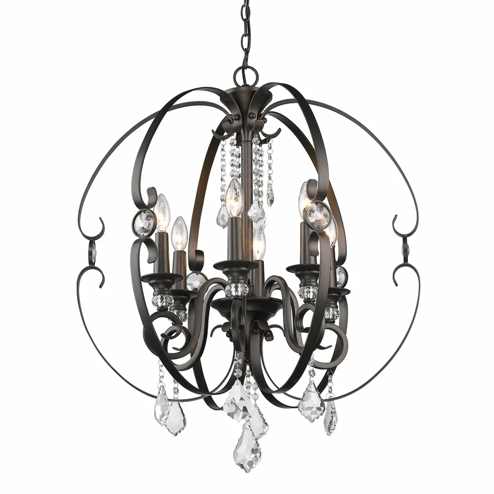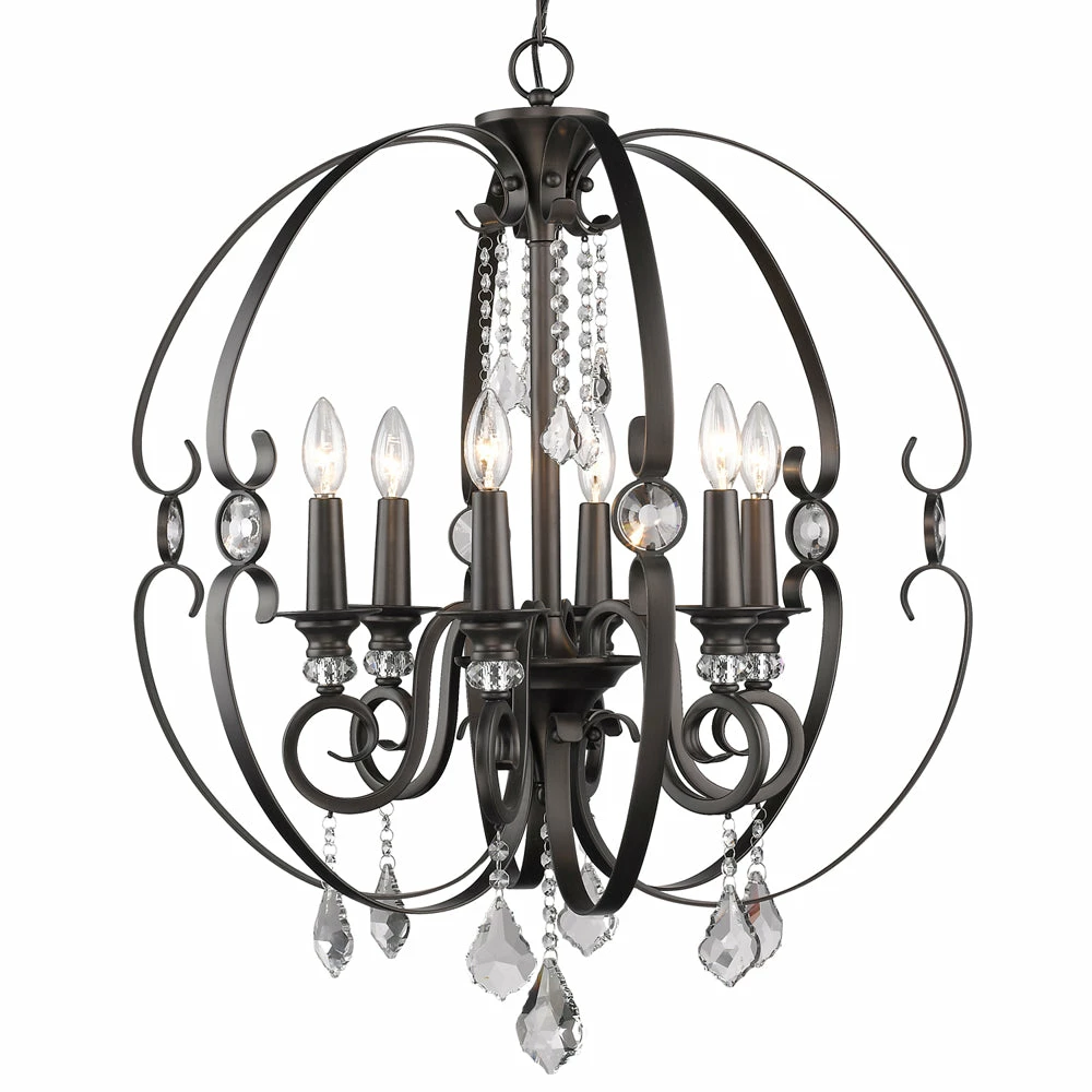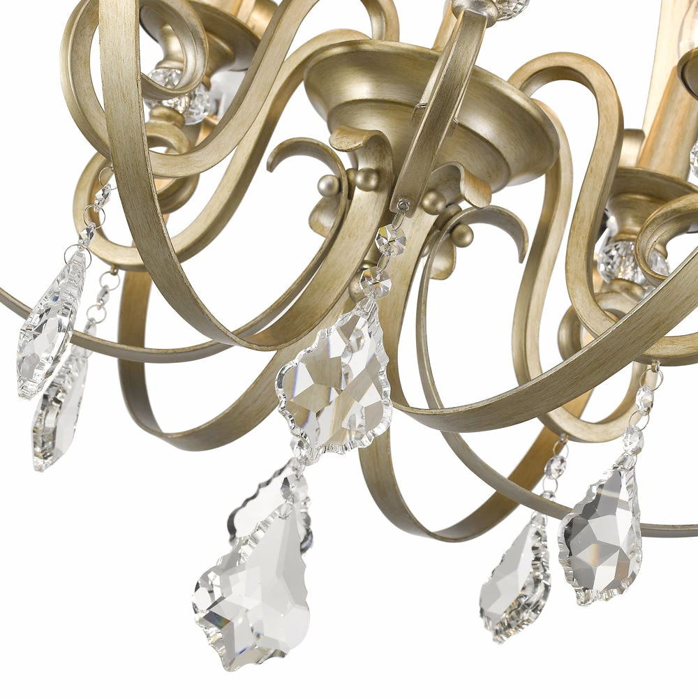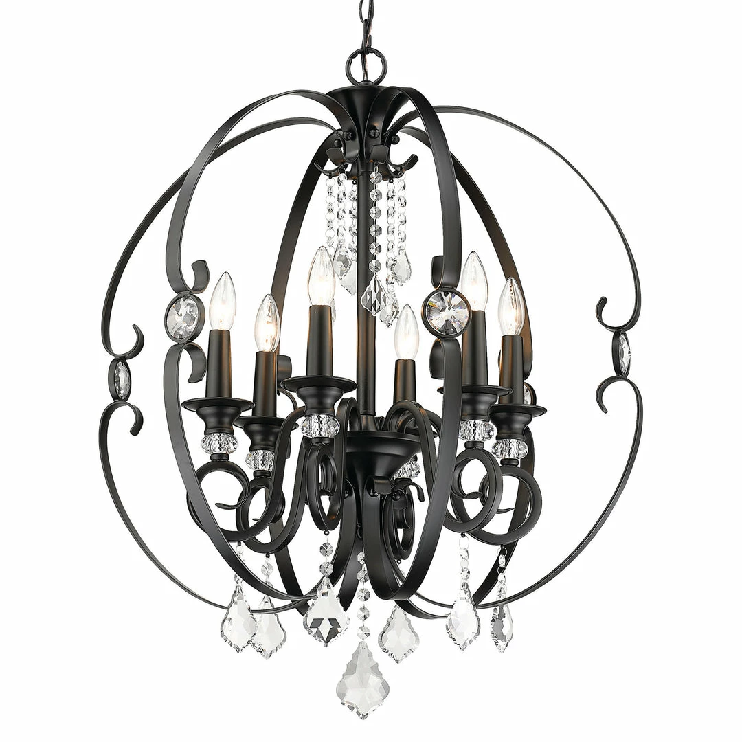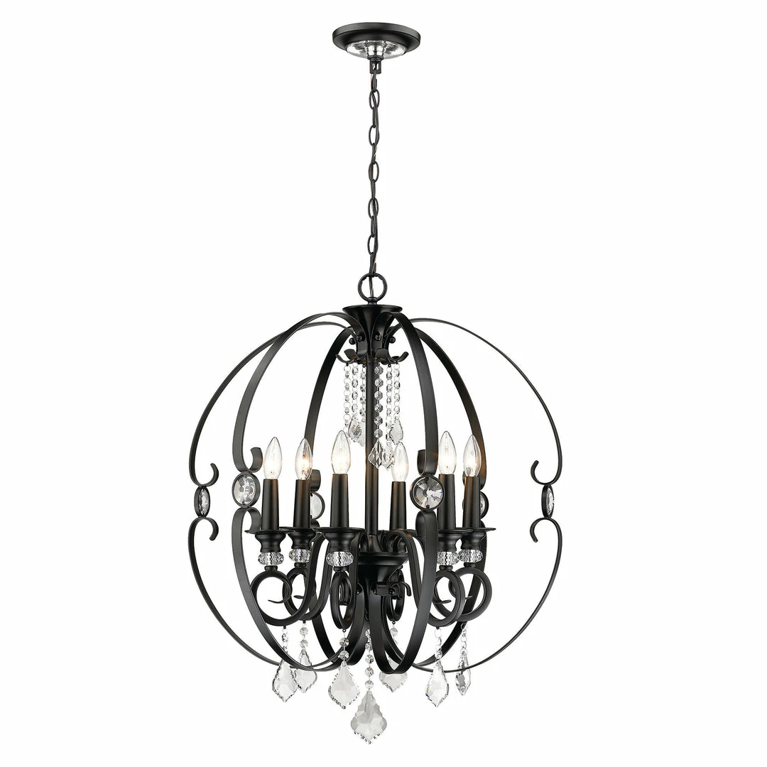 Beauty, glamour and fantasy are the inspirations behind this enchanted collection, the Ella collection lends charm and romance to a room. The style is transitional, but ideal for eclectic and contemporary room decors. Riveting, multi-faceted clear crystal accents twinkle vivaciously. Offered in several finishes, pendant chandeliers provide stylish focal points and this 6-light fixture is comfortably sized for a dining room or entry.