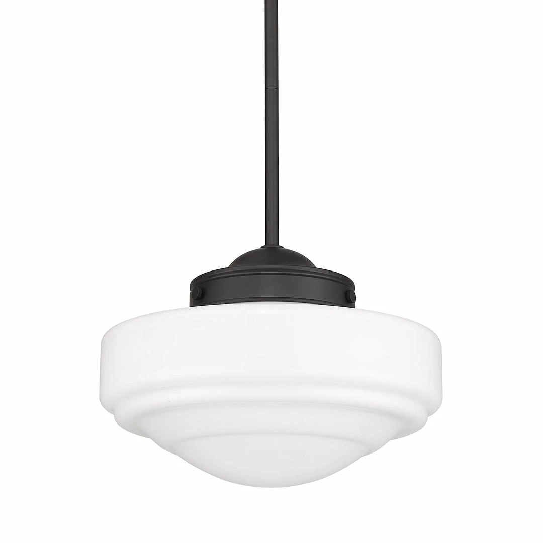 Vintage glass with a chic, retro silhouette creates the classic look of the Ingalls Collection. Blown by artisans into bold, striking molds, the glass creates a contemporary look. Inspired by old drive-ins and train car-style diners, these school-house fixtures are sure to turn heads. The contrasting matte black finish adds a modern update.