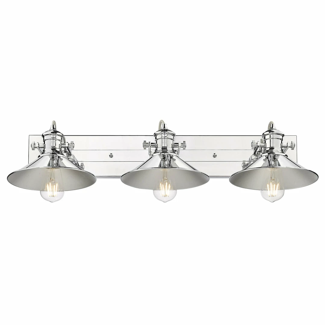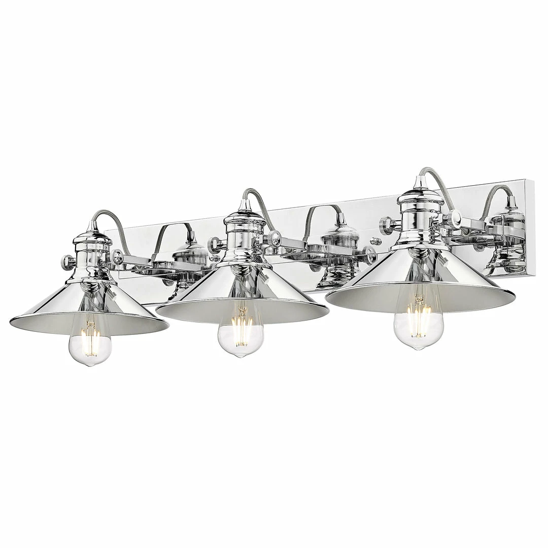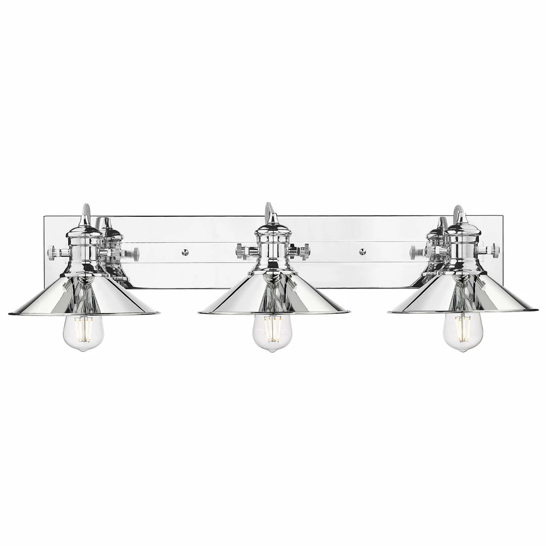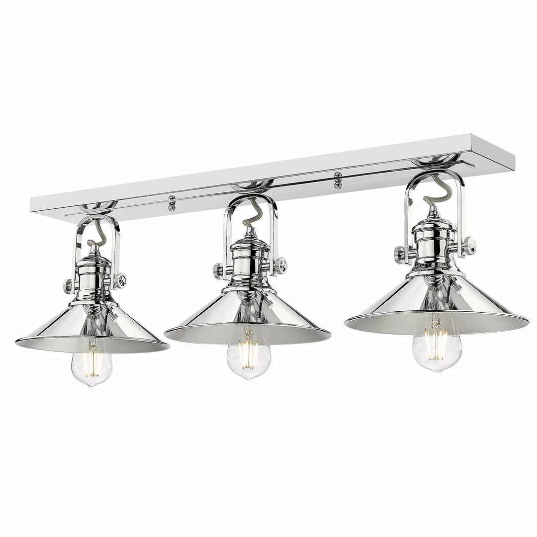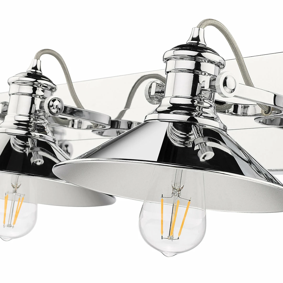 The coastal influence on the Kleine collectionโs bold design is obvious. The transitional style is a combination of a traditional silhouette with a modern chrome finish. For a timeless appeal, these vintage-industrial fixtures feature pivoting truncated shades and cool retro details. The exposed bulbs are on full display. Mount the simple backplate on the wall or ceiling, and angle the lamps to suit your needs. These versatile nautical-inspired fixtures are a great fit for lots of styles.