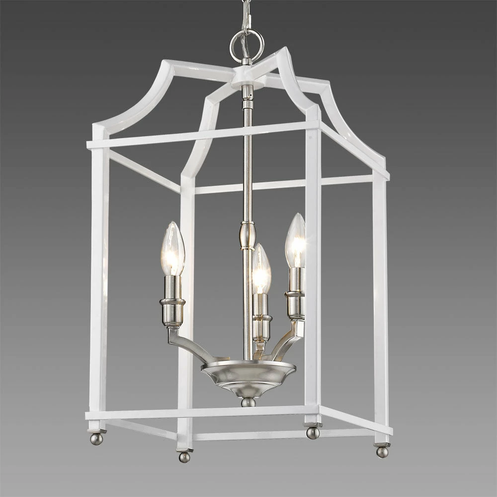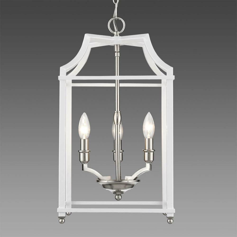 Leighton is a transitional and sleek minimalistic design. These attractive open-cage lanterns are two-toned and offered in multiple color combinations. The smooth painted cages house exposed lamps. The beautiful, airy aesthetic is heightened by the elegance of the exposed candelabras and strong lines. Strategically integrated plated metal accents finish the design.
