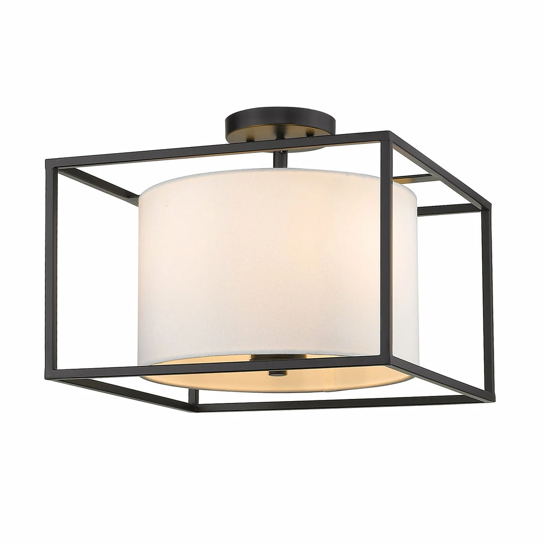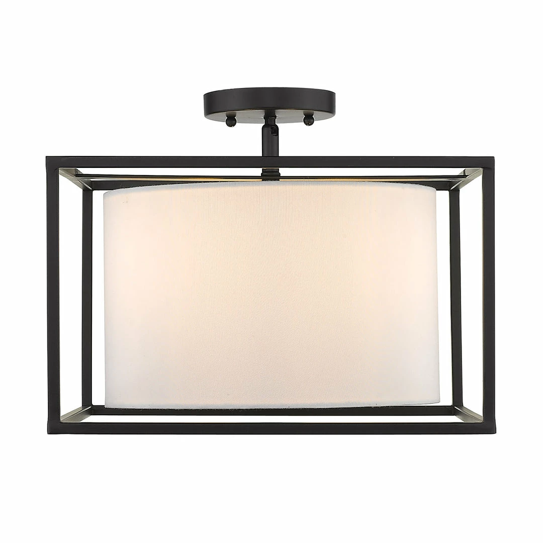 This simple and versatile look is at home in transitional to modern settings. The smooth, matte black finish adds a contemporary feel. The neutral white shade dresses up the look, while softening the geometric lines and gently diffusing the light. This semi-flush is ideal for a hallway, nook or entry.