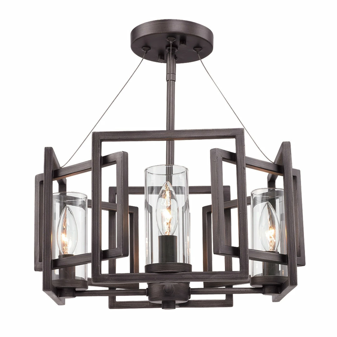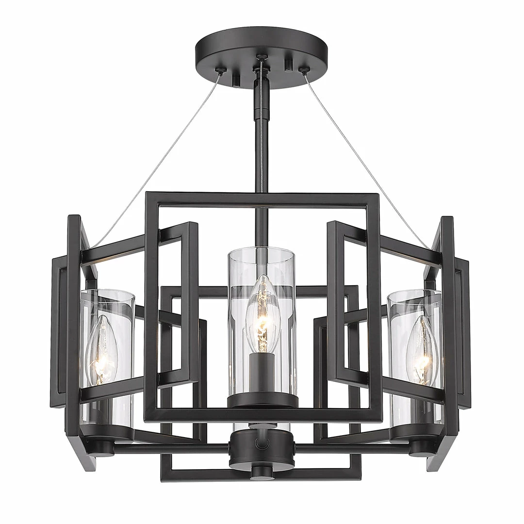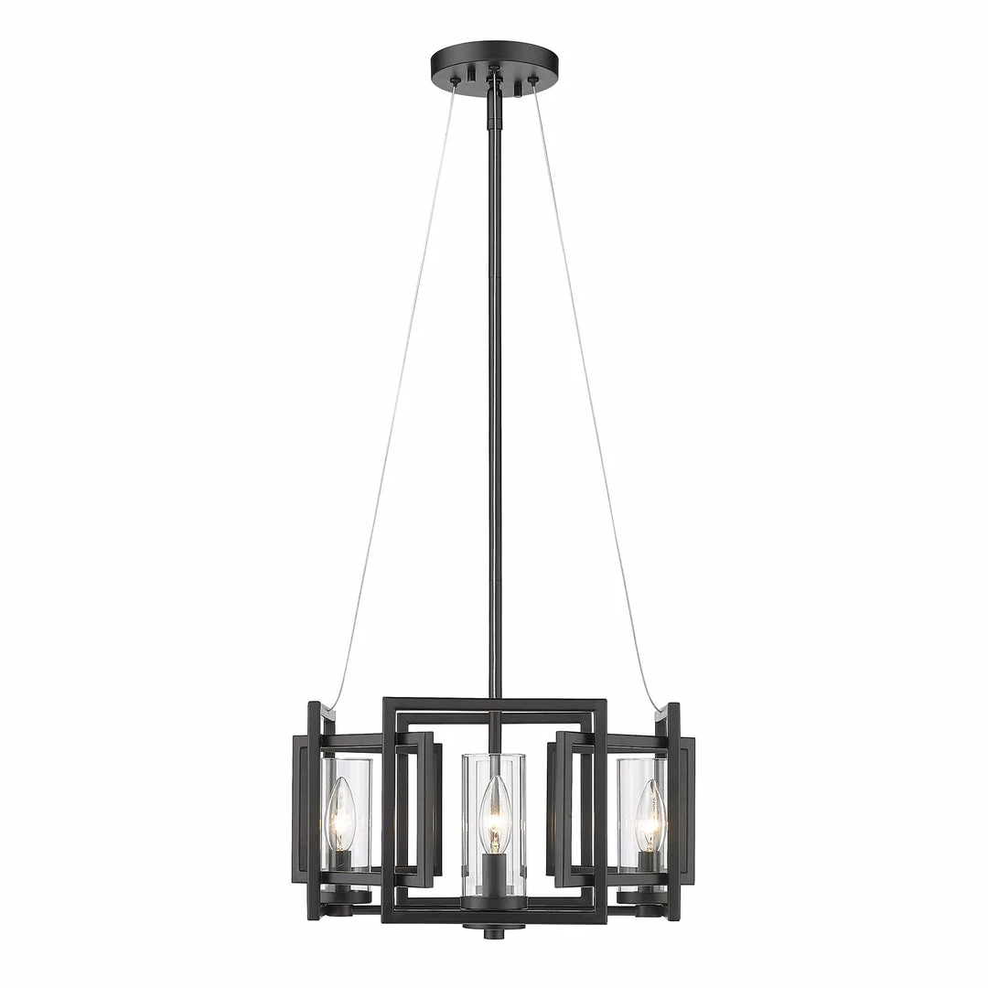 Sleek angles and a geometric form make an ultra-modern statement in the Marco collection. The series is offered in multiple finishes that heighten the light airy look. Clear Glass cylinders surround the stately silhouettes of candelabra bulbs. The Marco pendant provides ample light with contemporary flair.