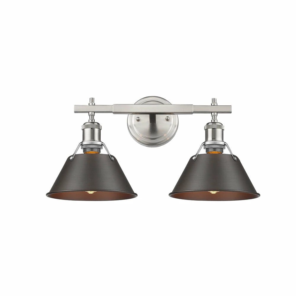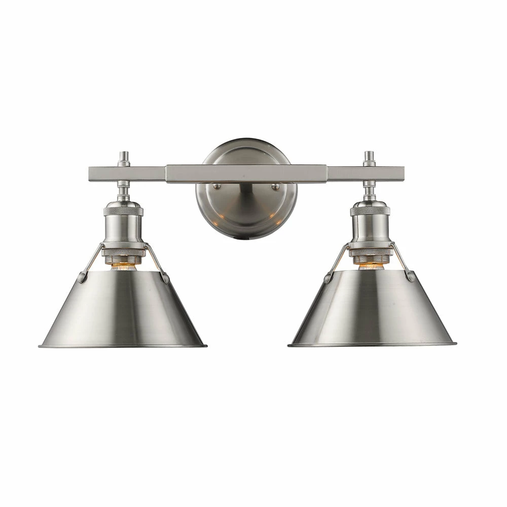 Orwell is an extensive assortment of industrial style fixtures. The beauty and character of the collection are in the refined details. This transitional series works well in a variety of settings. Partial shades shield the eyes from possible hot spots, while the open tops tease onlookers with a view of the sockets and bulbs. The design allows light and heat to escape from above and below the metal shades, providing both task and ambient lighting. Edison bulbs are recommended to complete the vintage, industrial look of the fixtures. A choice-selection of finish and shade color combinations heighten the appeal of the series. Single pendants are suspended from woven fabric cords while multi-light fixtures are rod-hung.
