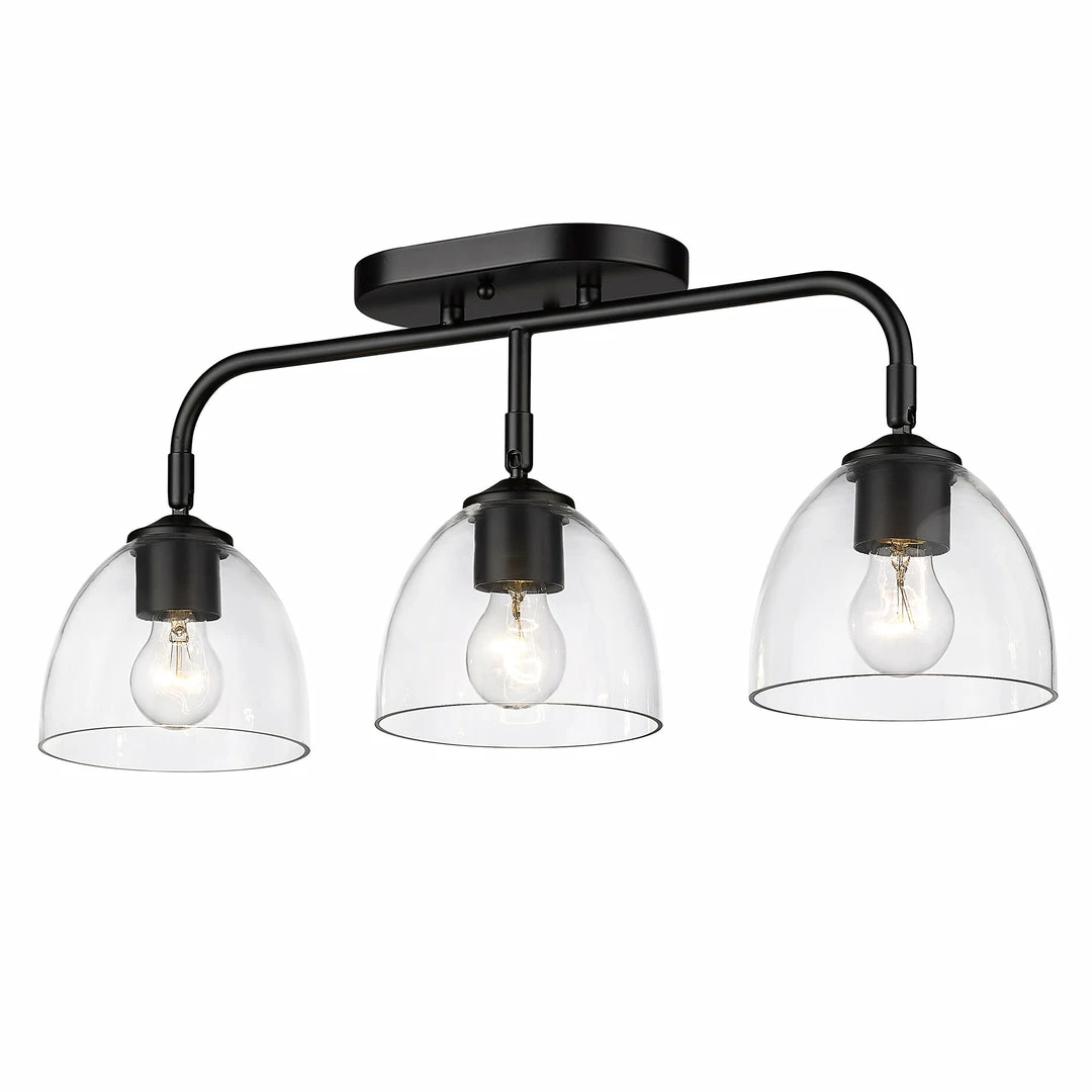 Roxie’s classic look complements a wide variety of transitional interiors. Make a bold statement with this minimalist-inspired series. Large clear glass shades allow for widespread illumination while the multi-functional versatility allows you to customize the installation to fit your application. Install the fixtures on a wall or ceiling and pivot the shades for directional lighting. Personalize further by choosing between finish options. Select monochromatic Matte Black accents or spice it up with contrasting Brushed Champagne Bronze accents.