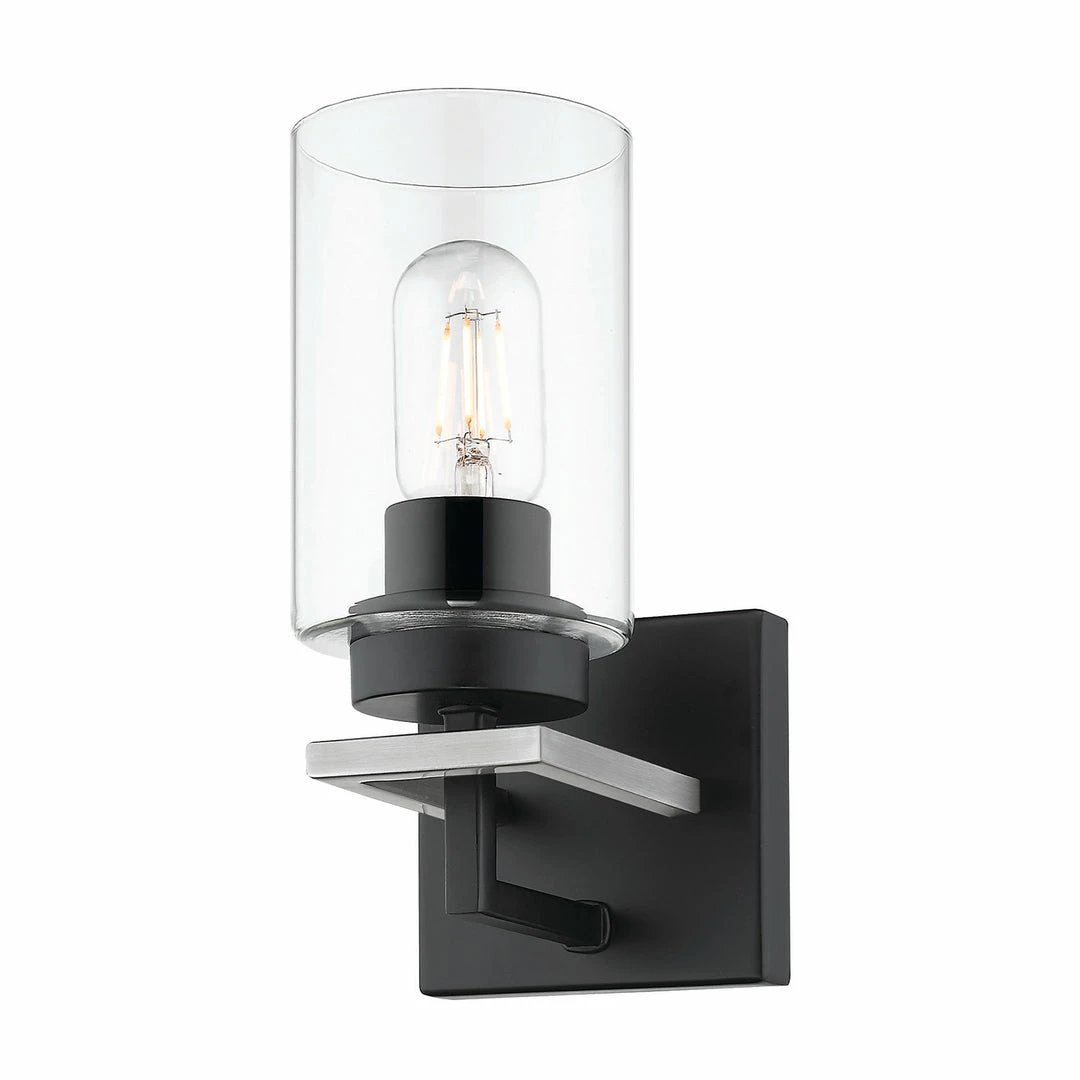 Tribeca is a contemporary, geometric series of customizable layered boxes. These striking open-cage fixtures bring sophisticated style to a space. Offered in a variety of finish options and silhouettes, including two-tone combinations, this clean transitional design pairs well with modern fashions. 1-light bath fixtures are popularly used in halls, stairways, bathrooms and entries as accents.