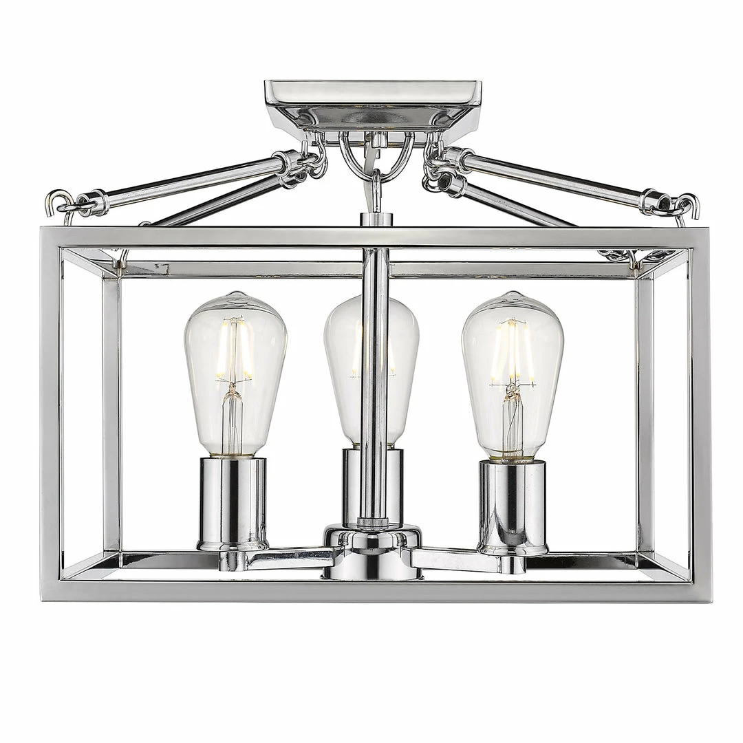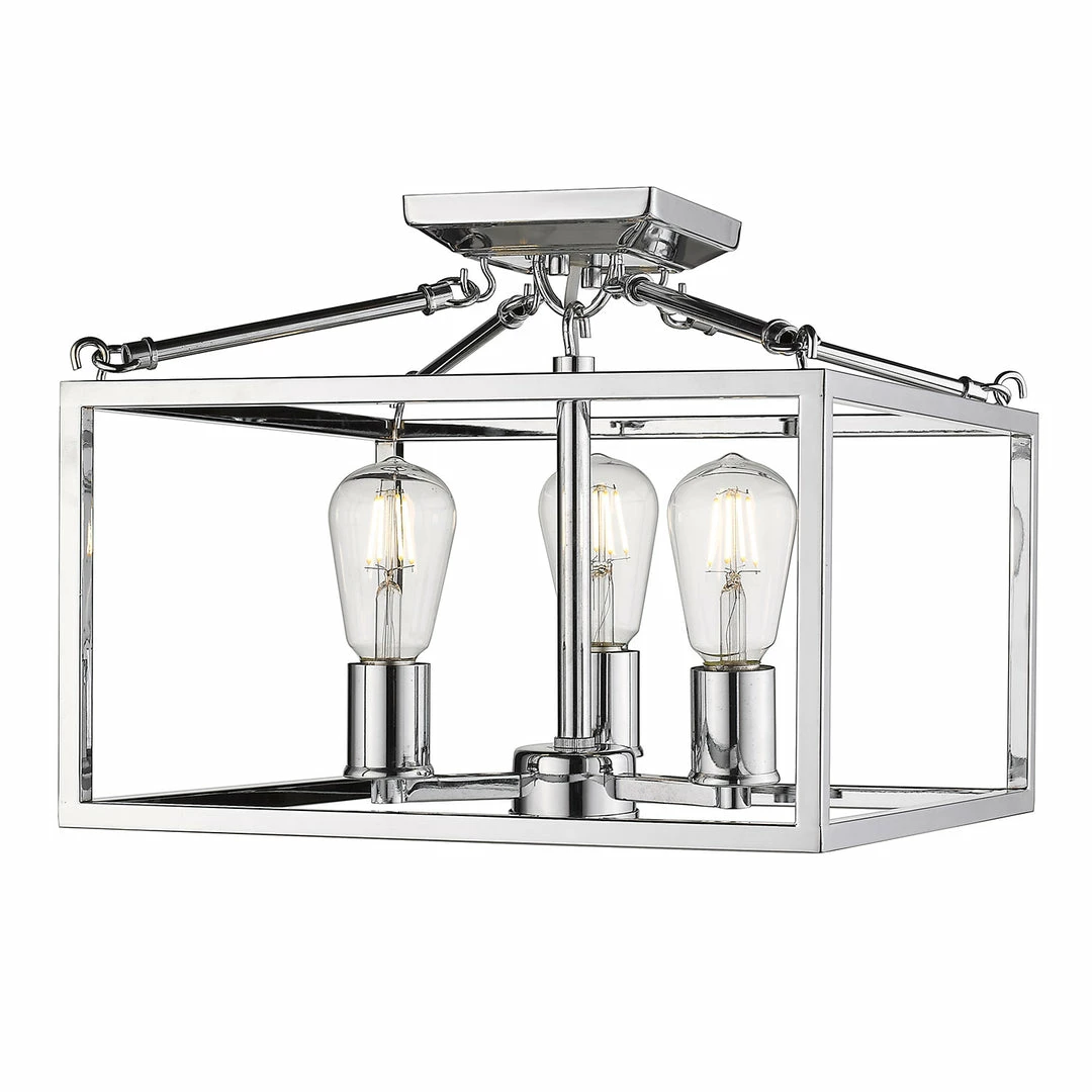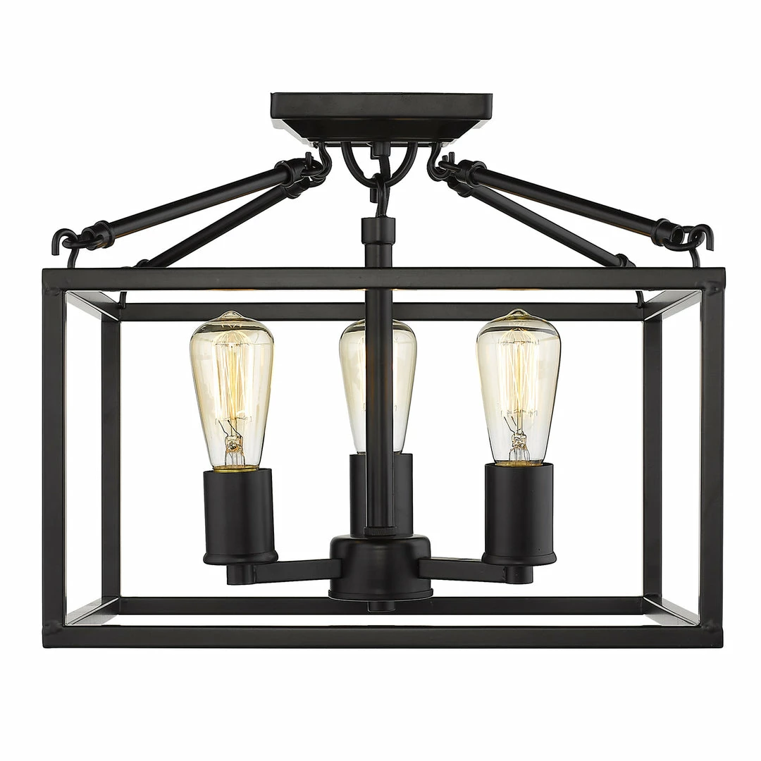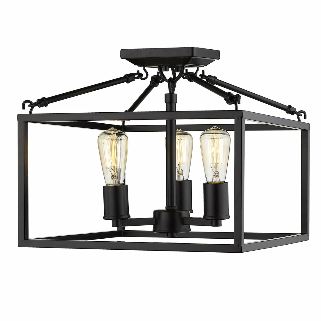 Wesson is a clean contemporary collection that is available in multiple finishes. The industrial look is enhanced by the exposed medium-based bulbs inside the square tubing of the open, geometric cages. Complete the modern, rustic look by installing Edison Bulbs. This flush mount is perfect for hallways and foyers.
