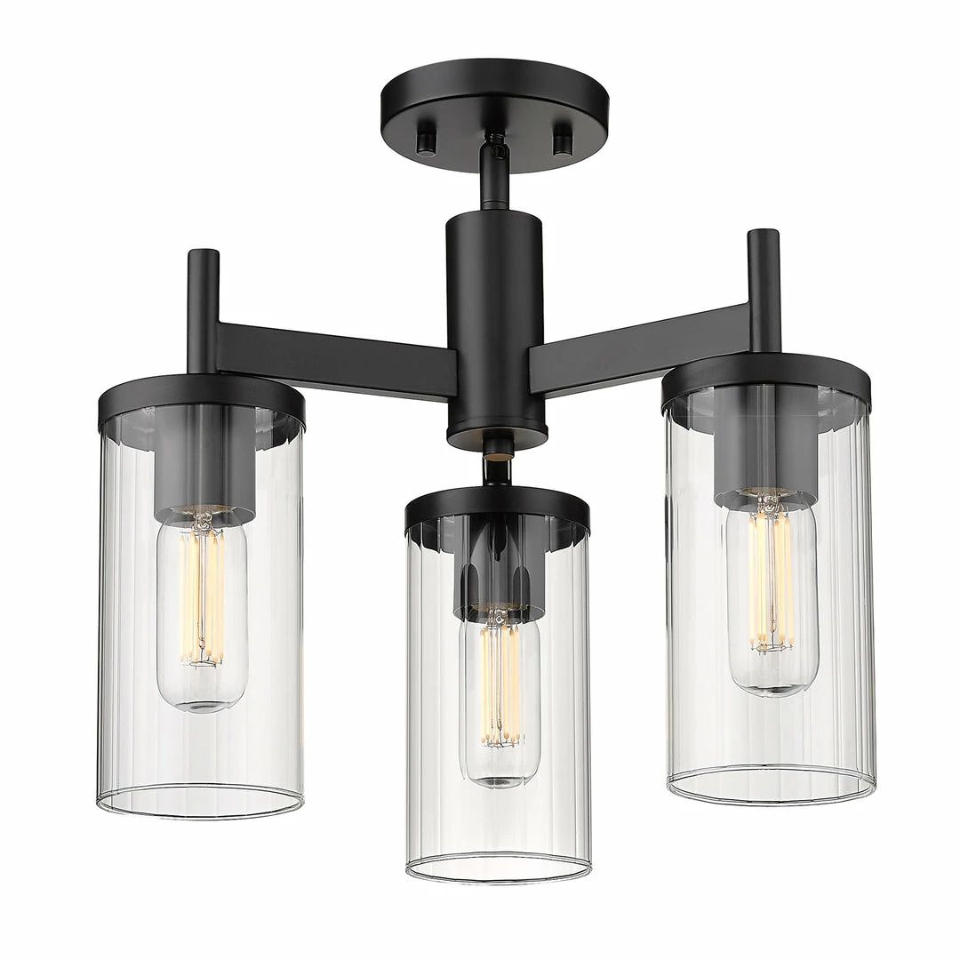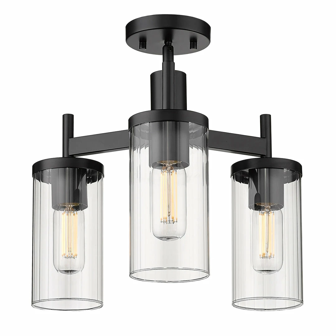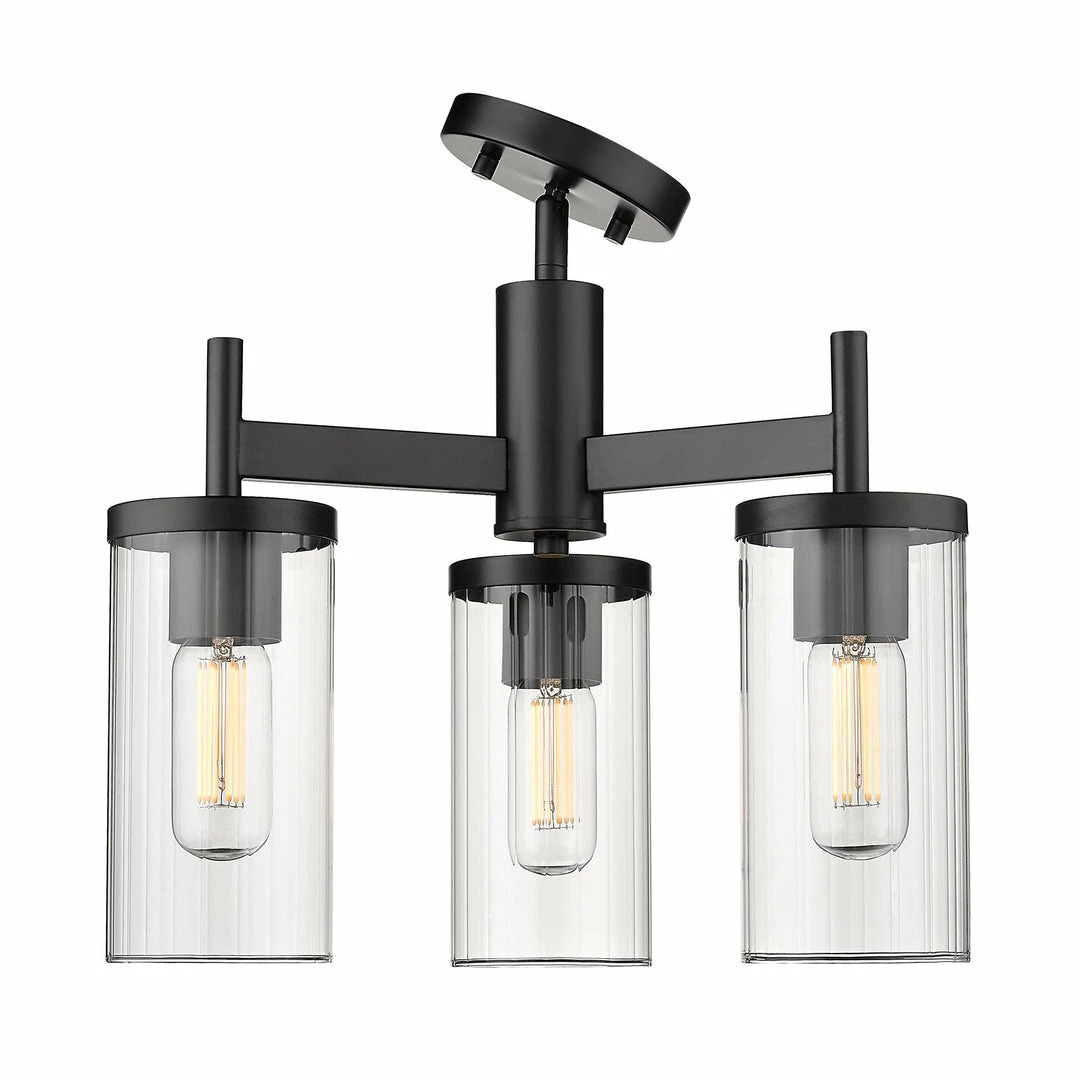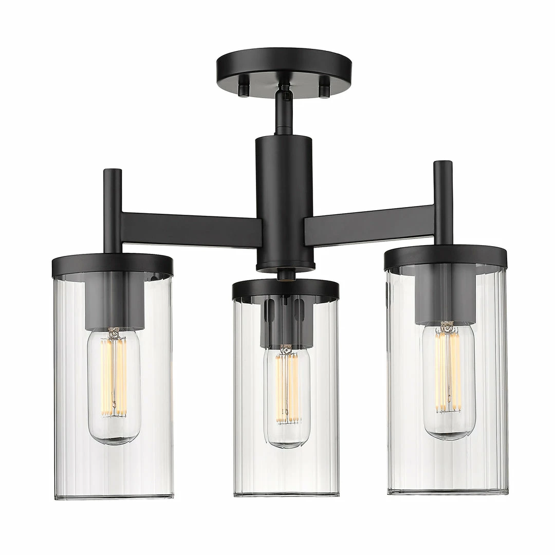 The Winslett collection is versatile and transitional in style. Classic silhouettes are perfectly matched with clean, modern lines for a mixture of form and function. Bright bulbs shine within ribbed clear glass shades. The linear texture, made by a glass-blowing technique, creates the optical illusion of distortion. The vertical lines in the glass provide gentle diffusion while playfully refracting light. Offered in a selection highly adaptable finishes, the Winslett collection is suitable for a variety of decors. This 3-light semi-flush creates a dramatic focal point and smooth ambient lighting.
