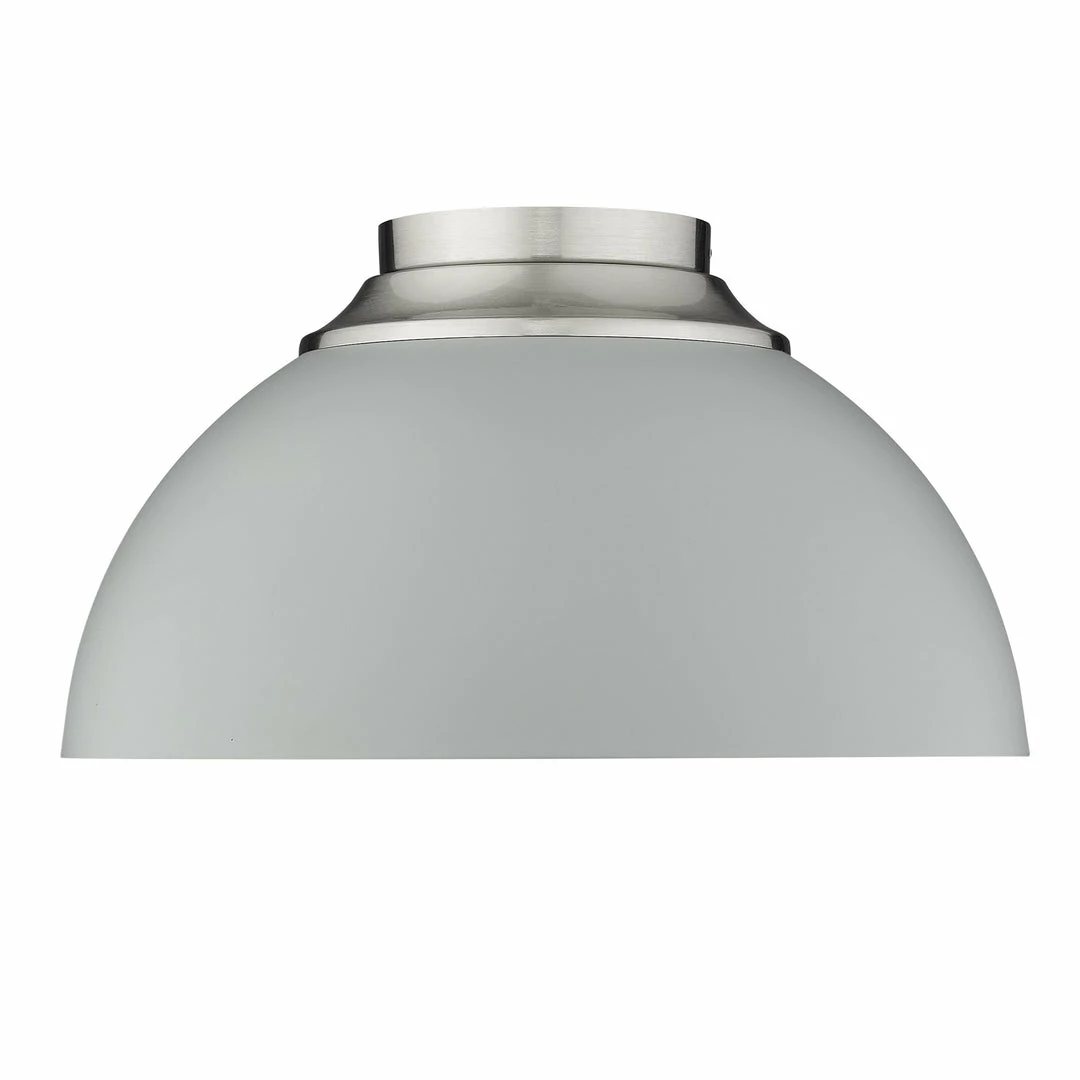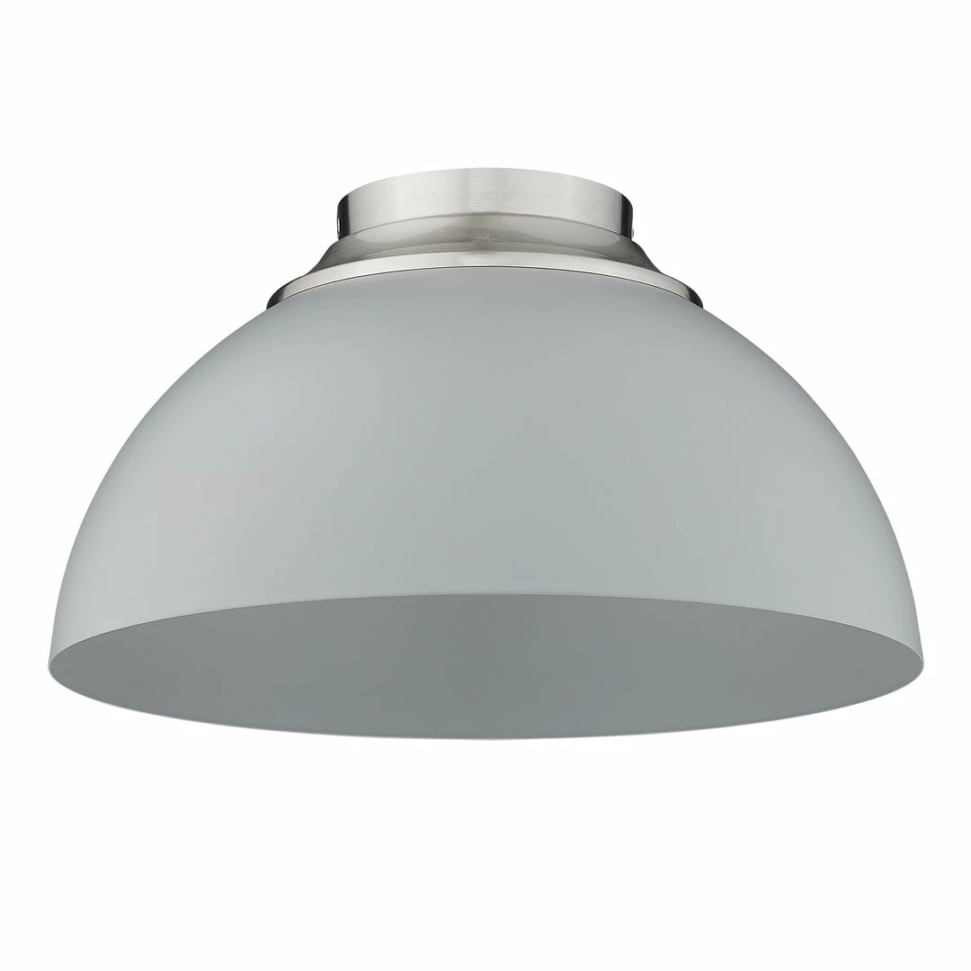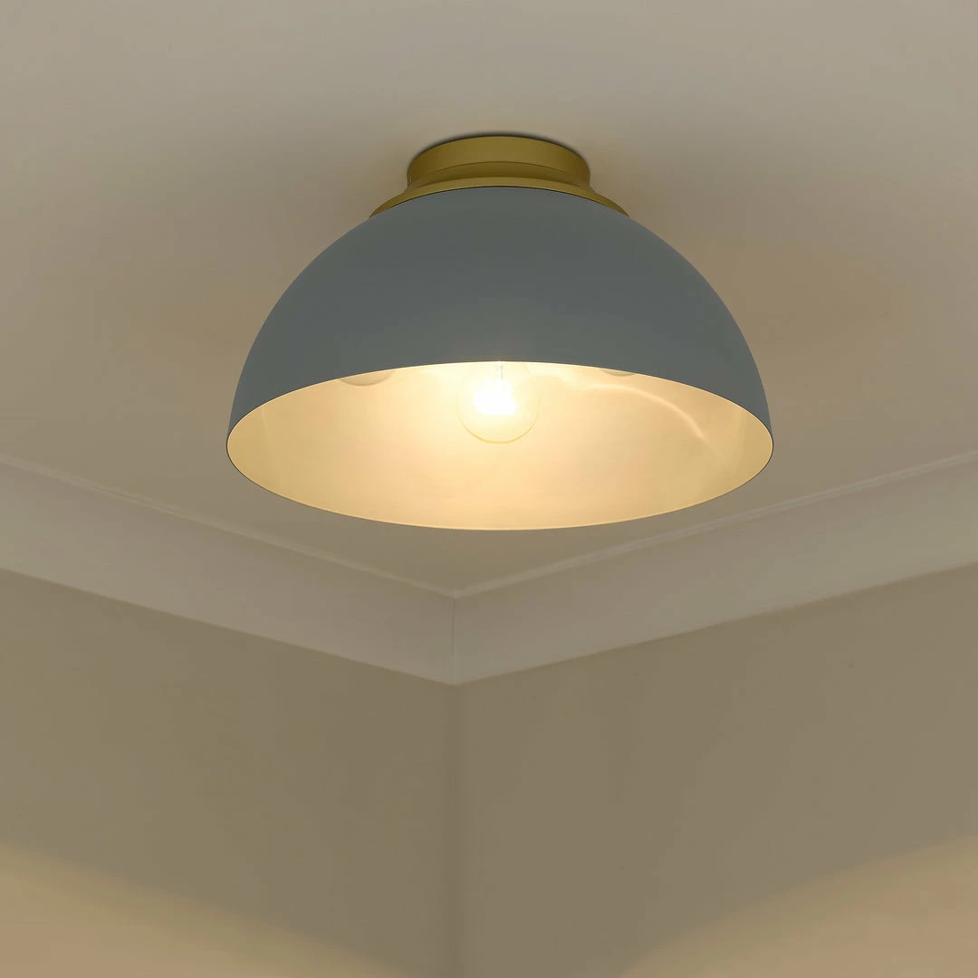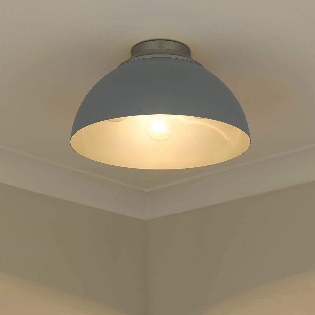 The Zoey Collection is proof that simple can be beautiful. This elegantly utilitarian series has the chic versatility to enhance the style of a variety of spaces. The smooth lines of this minimalist design pair well with transitional to modern décors. The cleanness of the contemporary look gives the fixtures a slightly industrial feel. Zoey is offered in a number of sizes with a combination of matte sheen shade and finish options available. The color of the shade’s interior consistently matches the shade’s exterior finish. The silhouette of the metal shade is a modern update to the classic dome shape. This Flush Mount is perfect for bathrooms, hallways, and kitchens.