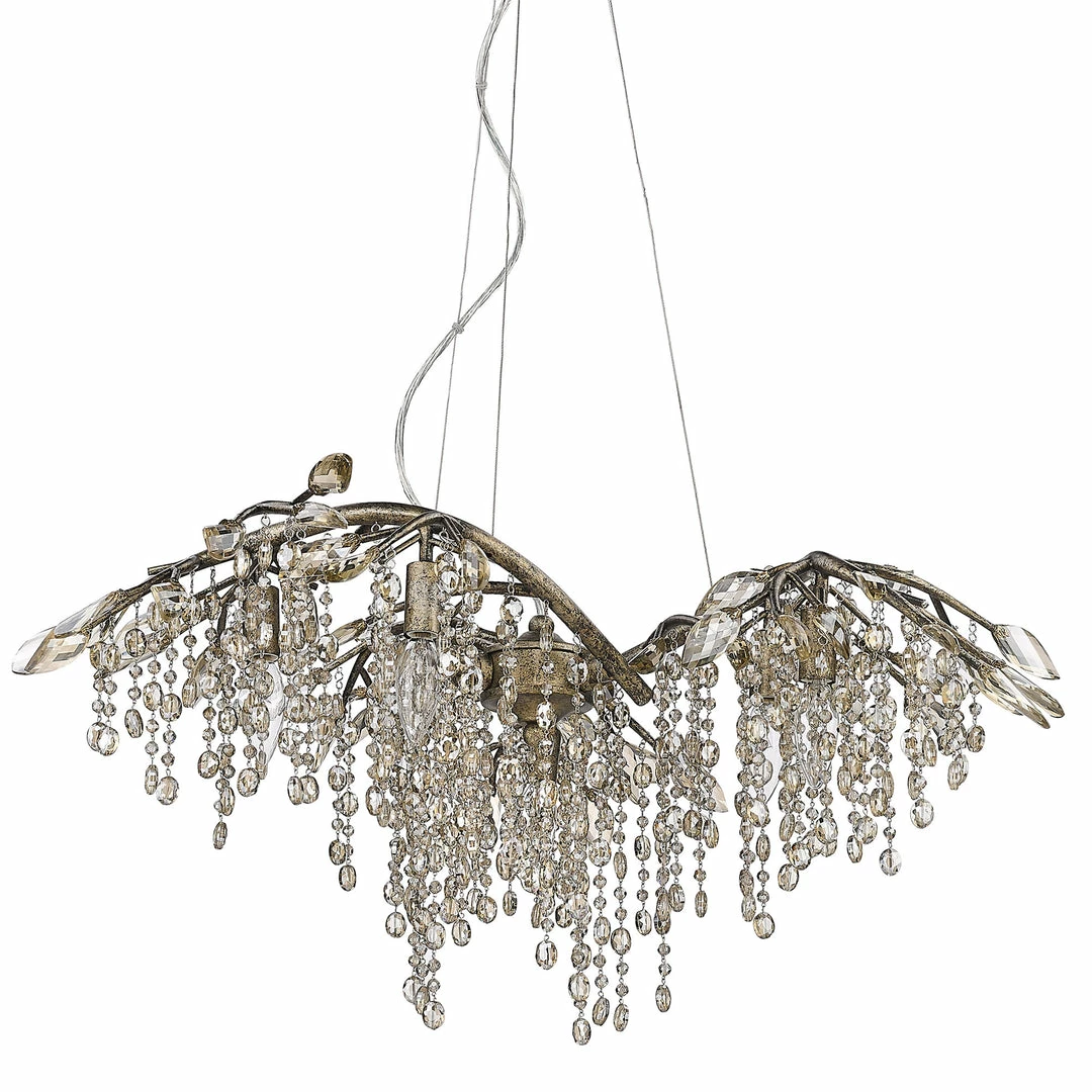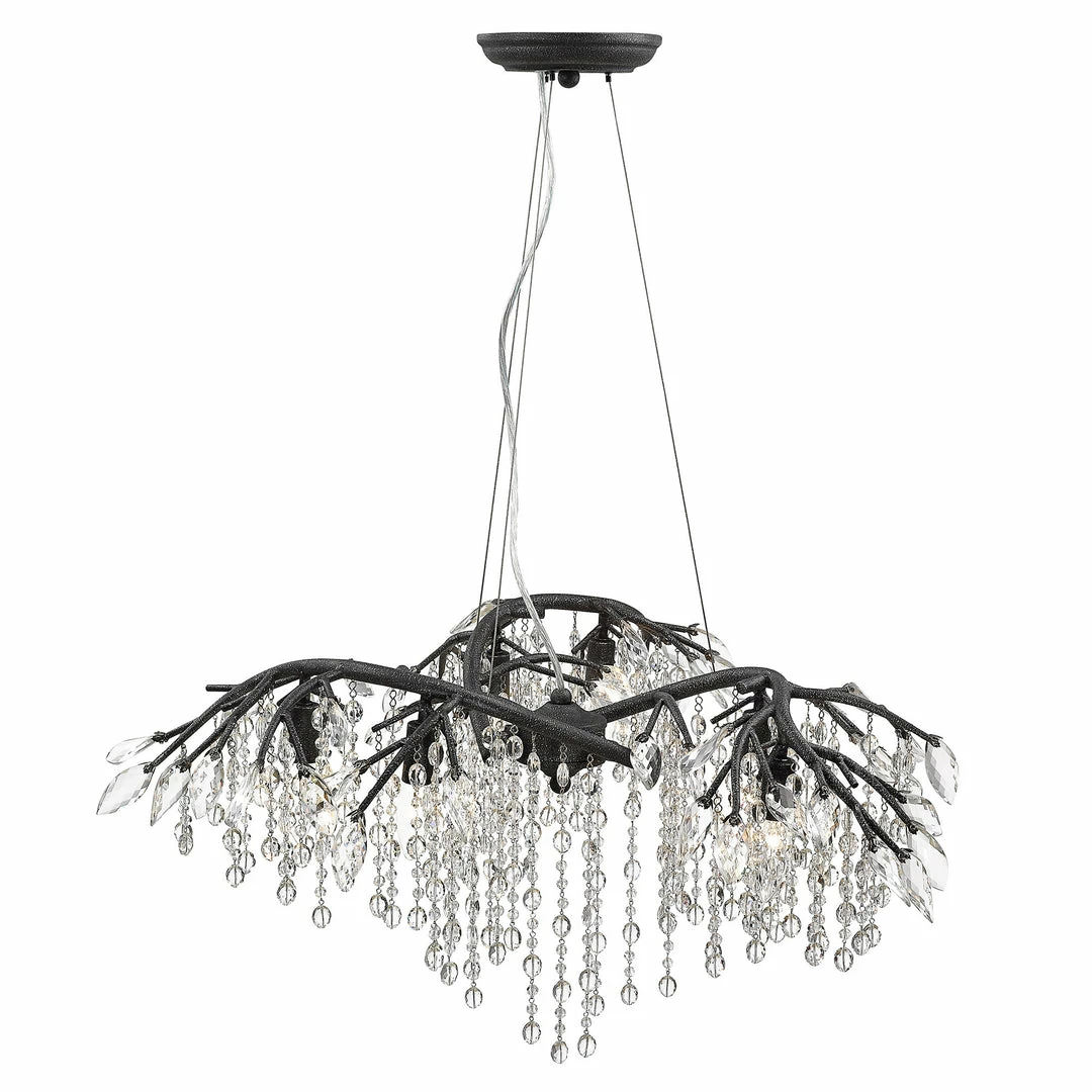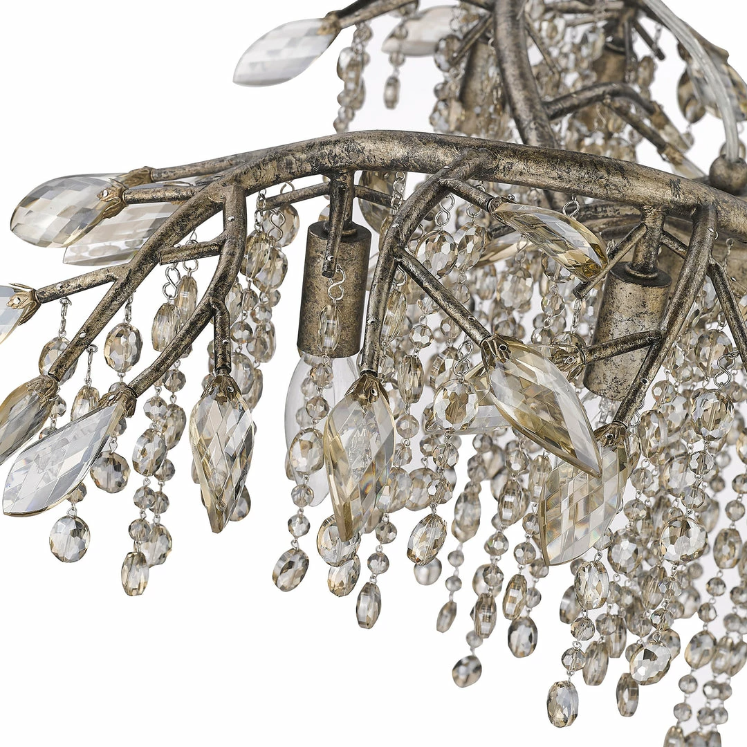 Like dewdrops under a forest canopy, the Autumn Twilight collection displays glistening glass beads that cascade from organic leaves and branches, available in choice finishes. A modern nod to nature, this collection is a natural in contemporary settings. Candelabra bulbs provide an inner source of illumination that causes the light to sparkle and reflect playfully off the countless gleaming surfaces sparking both curiosity and conversation. This 6-light chandelier creates a stylish focal point perfect for intimate living and dining areas.