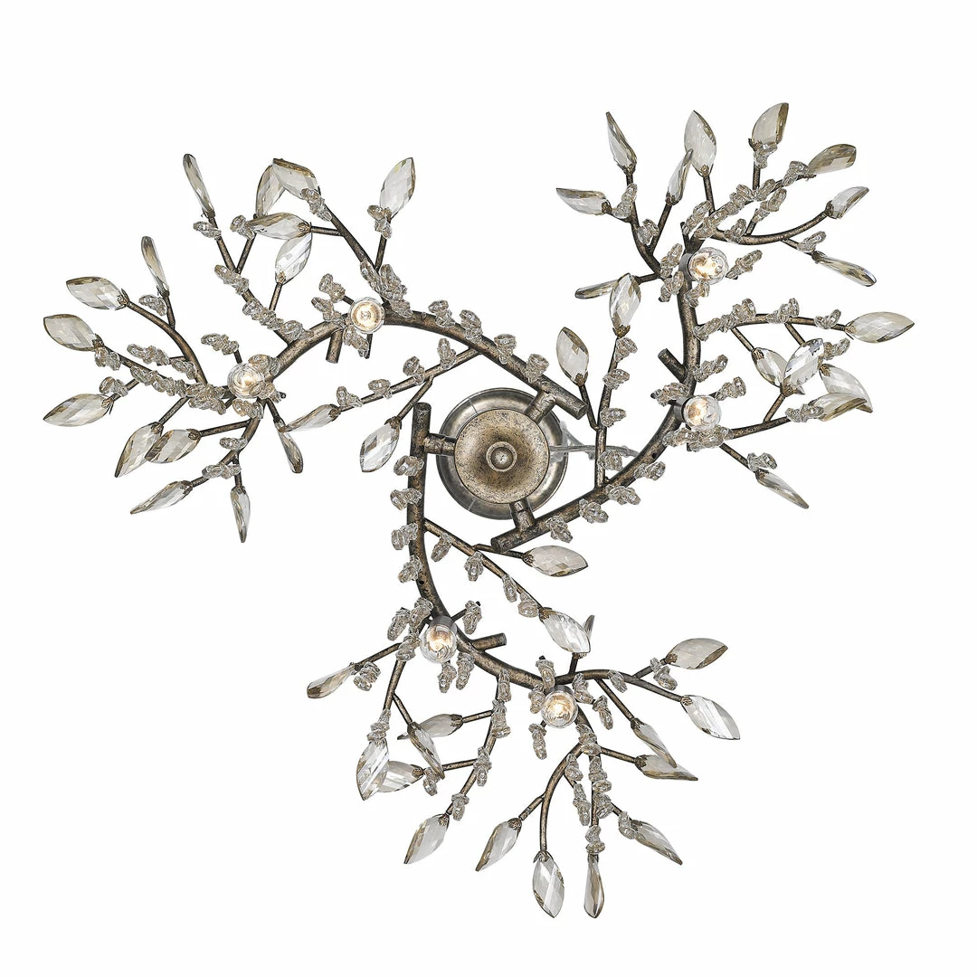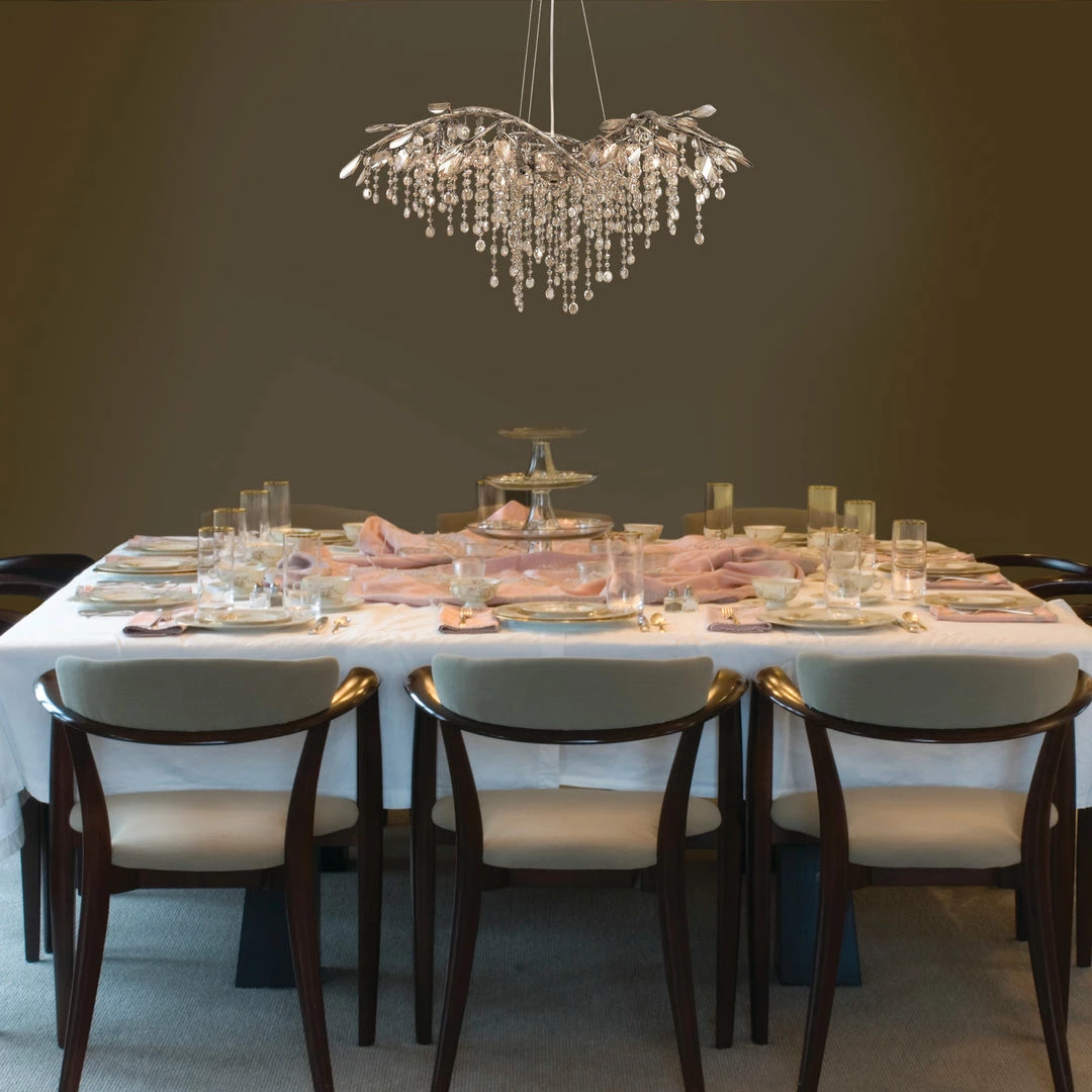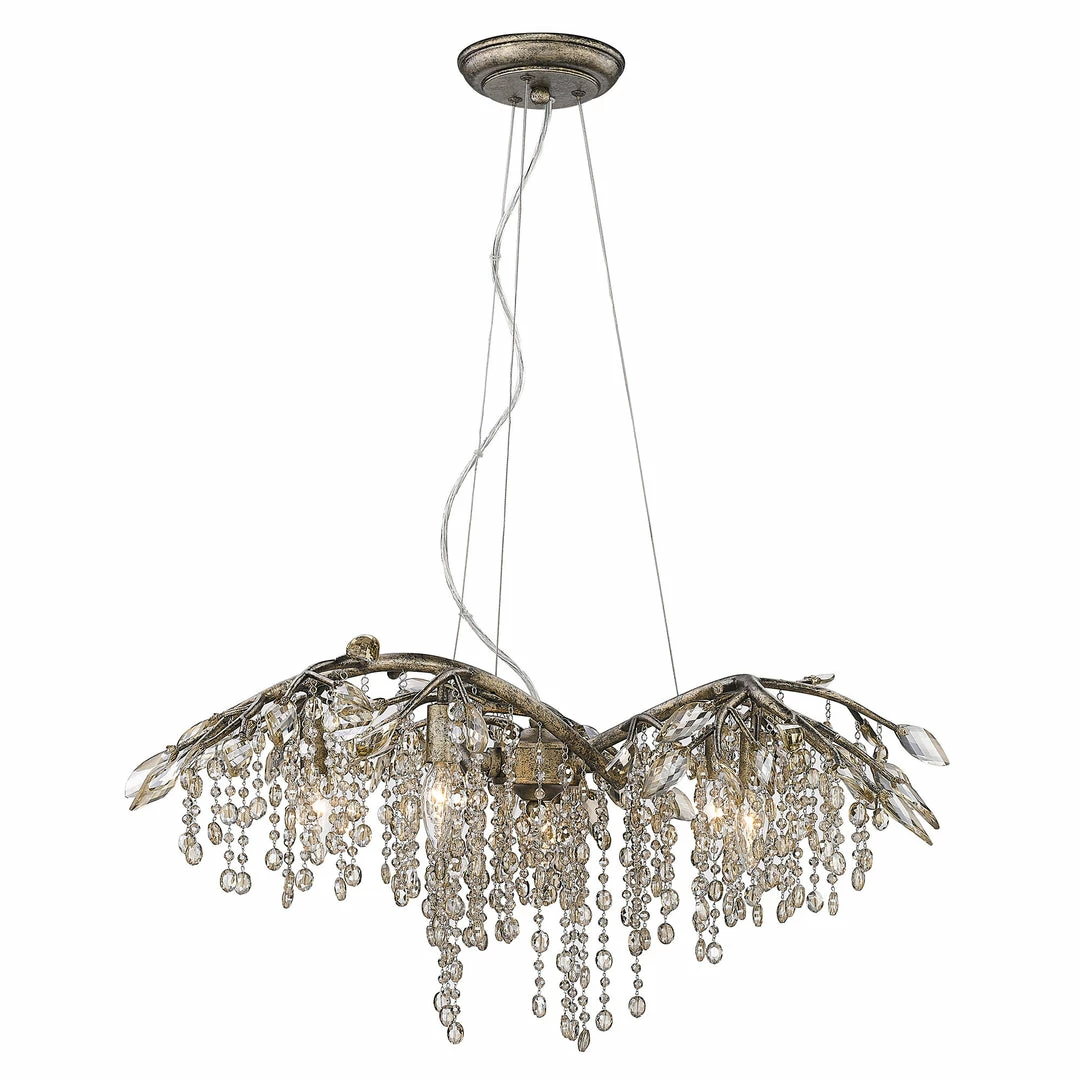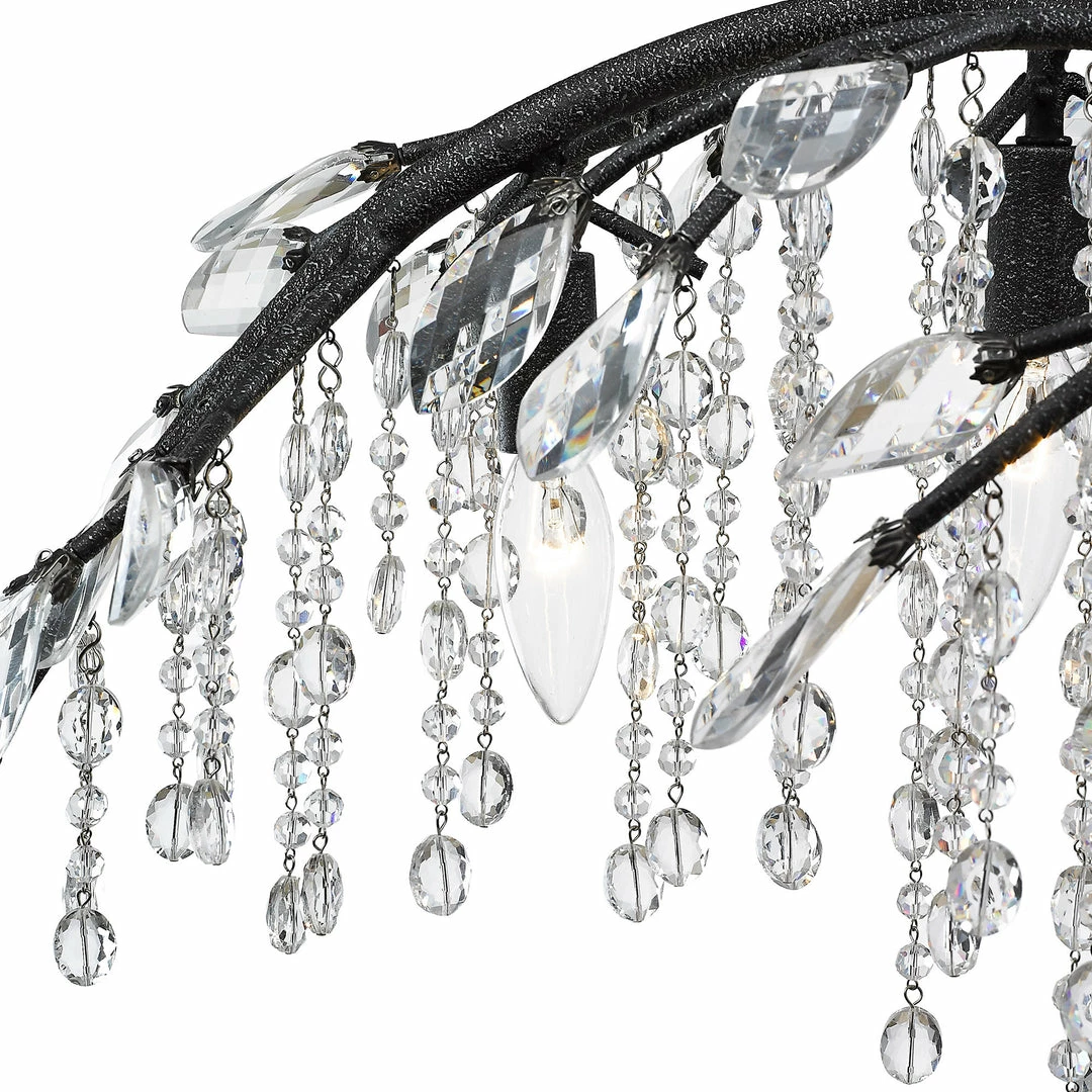 Like dewdrops under a forest canopy, the Autumn Twilight collection displays glistening glass beads that cascade from organic leaves and branches, available in choice finishes. A modern nod to nature, this collection is a natural in contemporary settings. Candelabra bulbs provide an inner source of illumination that causes the light to sparkle and reflect playfully off the countless gleaming surfaces sparking both curiosity and conversation. This 6-light chandelier creates a stylish focal point perfect for intimate living and dining areas.