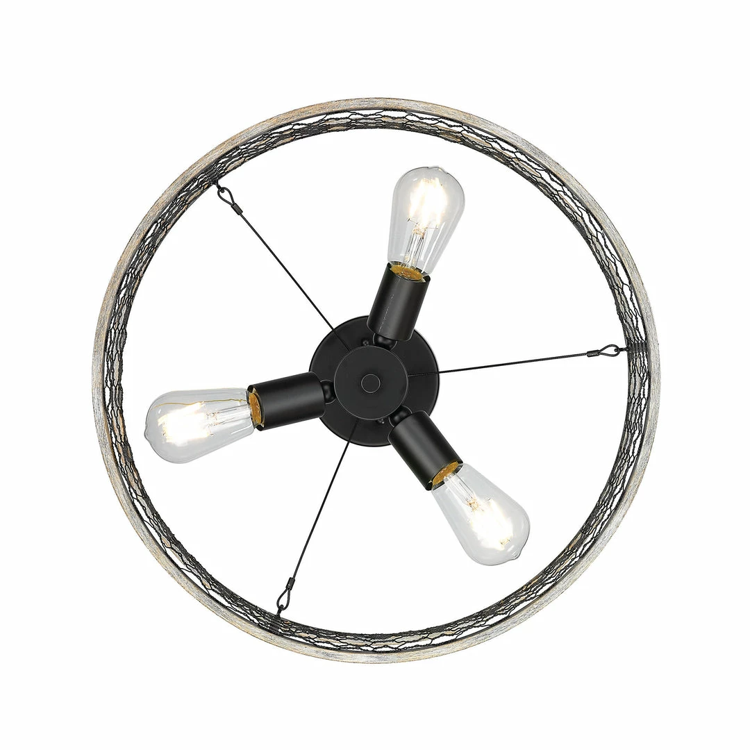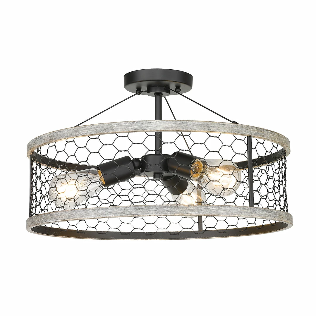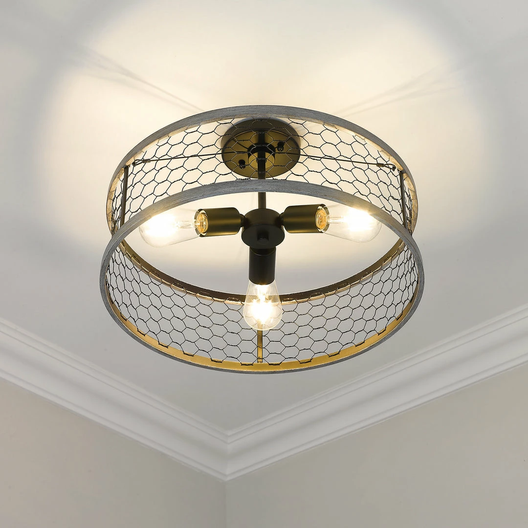 The Bailey collection brings casual, rustic styling to any space. On-trend with modern country interior design, this fixture is perfect for homes with farmhouse dรฉcor. The open bottom shade features rustic chicken wire held together by a hand-painted matte sheen faux wood frame. The faux wood frame contains hints of gray and brown hues. Add a bit of country-chic style to any space including a bathroom, kitchen, living room, entry, or hallway.