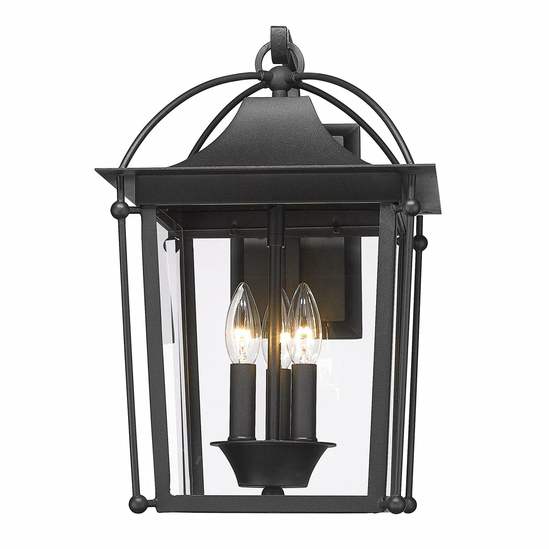 Brigham is a fresh take on classic decor and the perfect addition to traditional home exteriors. This lantern-style design is a welcomed break from the norm. Subtle cage accents provide the architectural interest needed for homes with character. Encased in clear glass panels, the central light cluster is unobstructed from view. The light texture of the UV-coated Natural Black finish contrasts the smoothness of the glass.