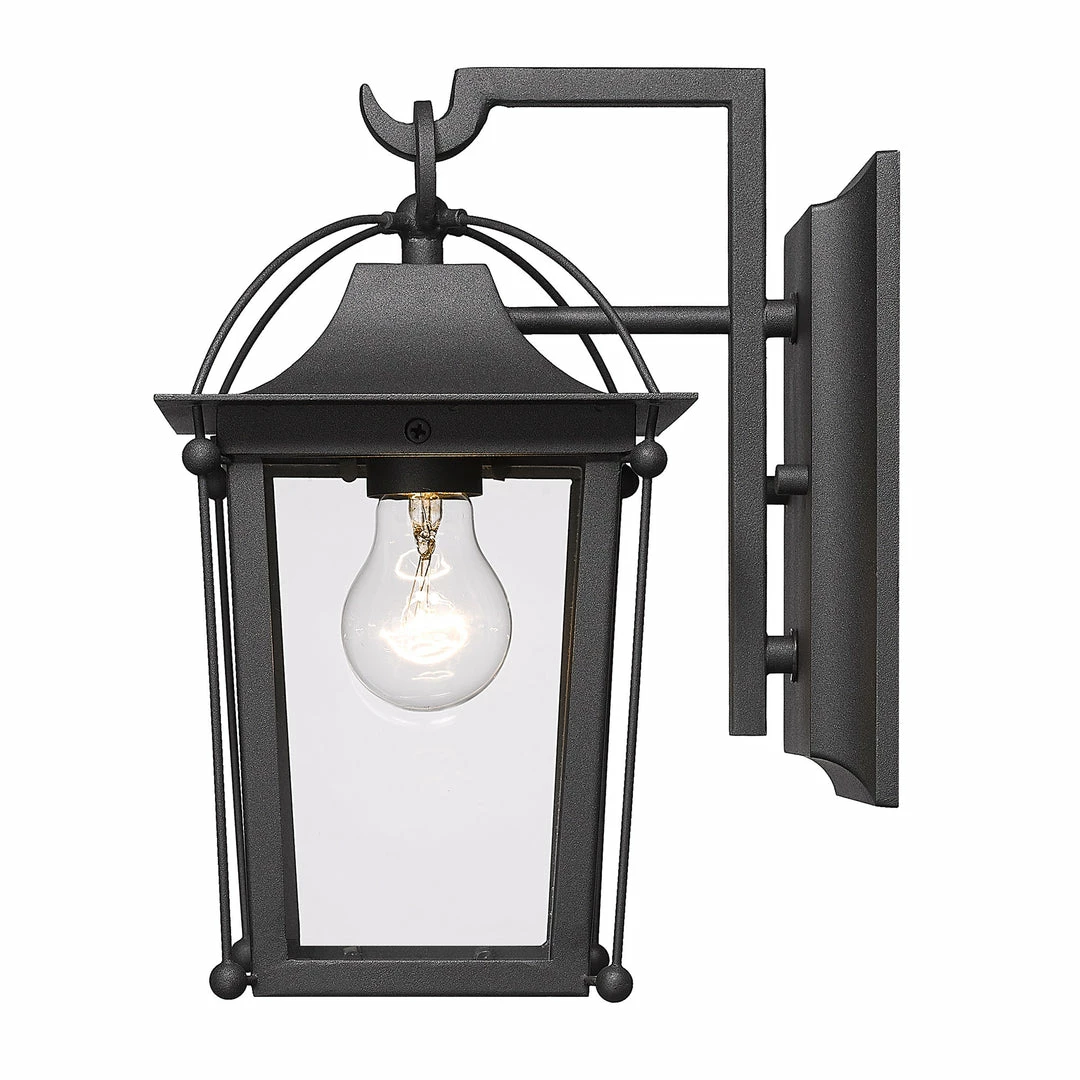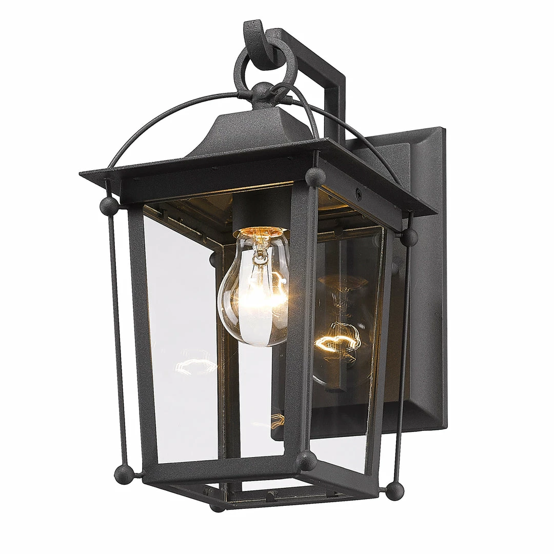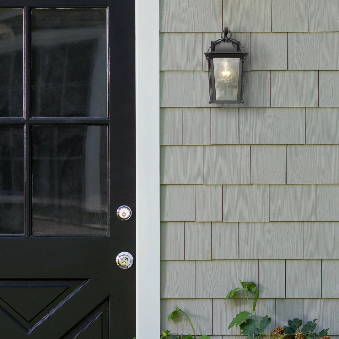 Brigham is a fresh take on classic decor and the perfect addition to traditional home exteriors. This lantern-style design is a welcomed break from the norm. Subtle cage accents provide the architectural interest needed for homes with character. Encased in clear glass panels, the central light cluster is unobstructed from view. The light texture of the UV-coated Natural Black finish contrasts the smoothness of the glass.