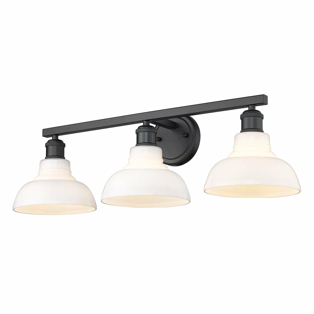 Enhance your home’s contemporary style with the beautiful details of the Carver Collection. This cool industrial design is perfect for transitional to modern decors. This 3-light bath fixture includes all mounting hardware and is easy to install.