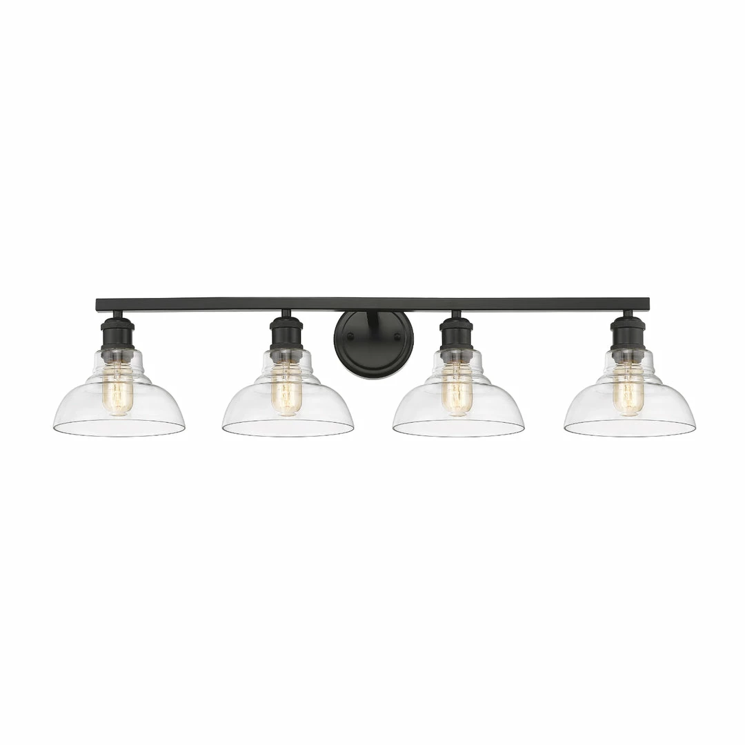 This cool, industrial design is perfect for transitional to modern decors. The sleek finishes and choice glass options create an array of bright, stylish fixtures. Safety-rated for damp locations, it is ready for any room. Enhance your home’s contemporary style with the beautiful details of the Carver Collection. This 3-light bath fixture includes all mounting hardware and is easy to install.