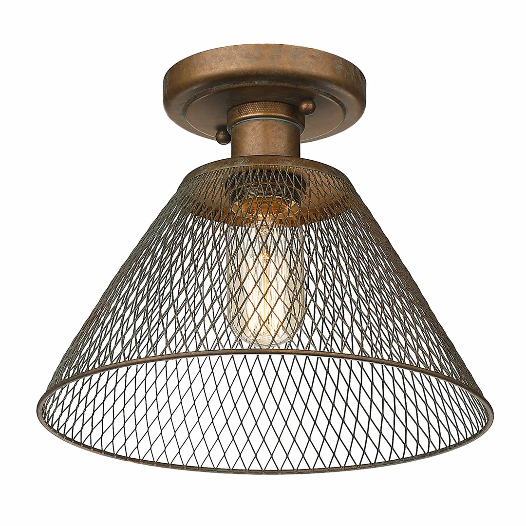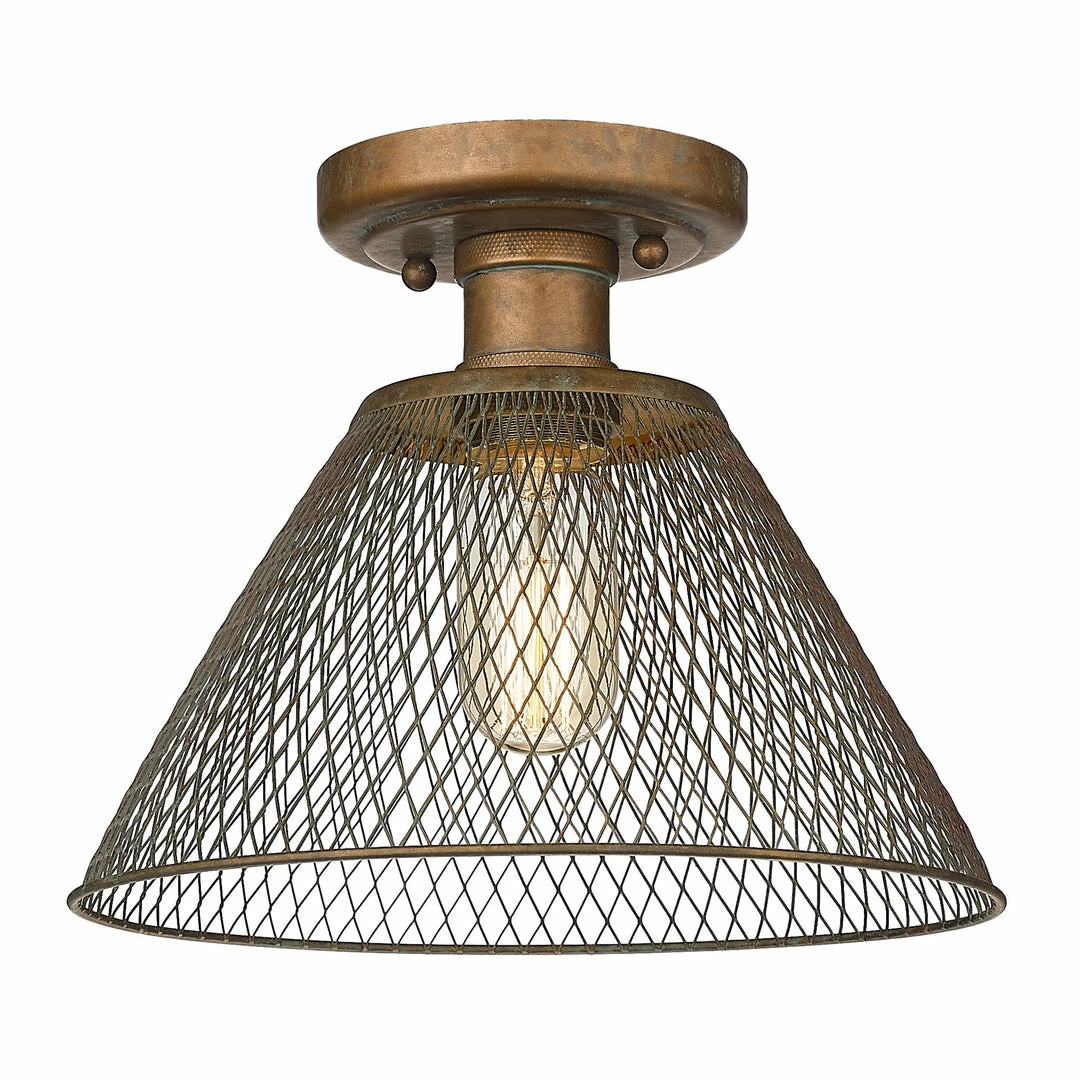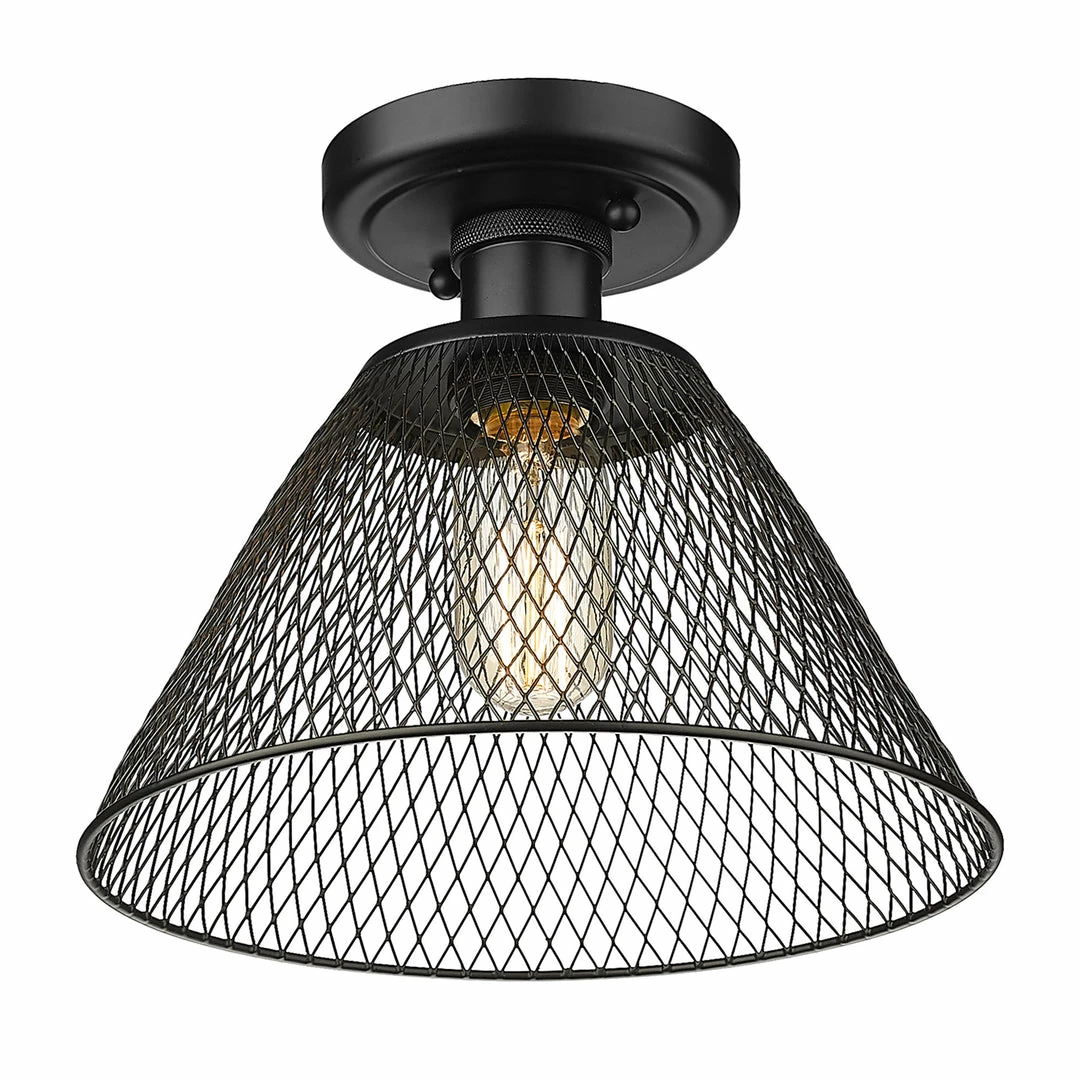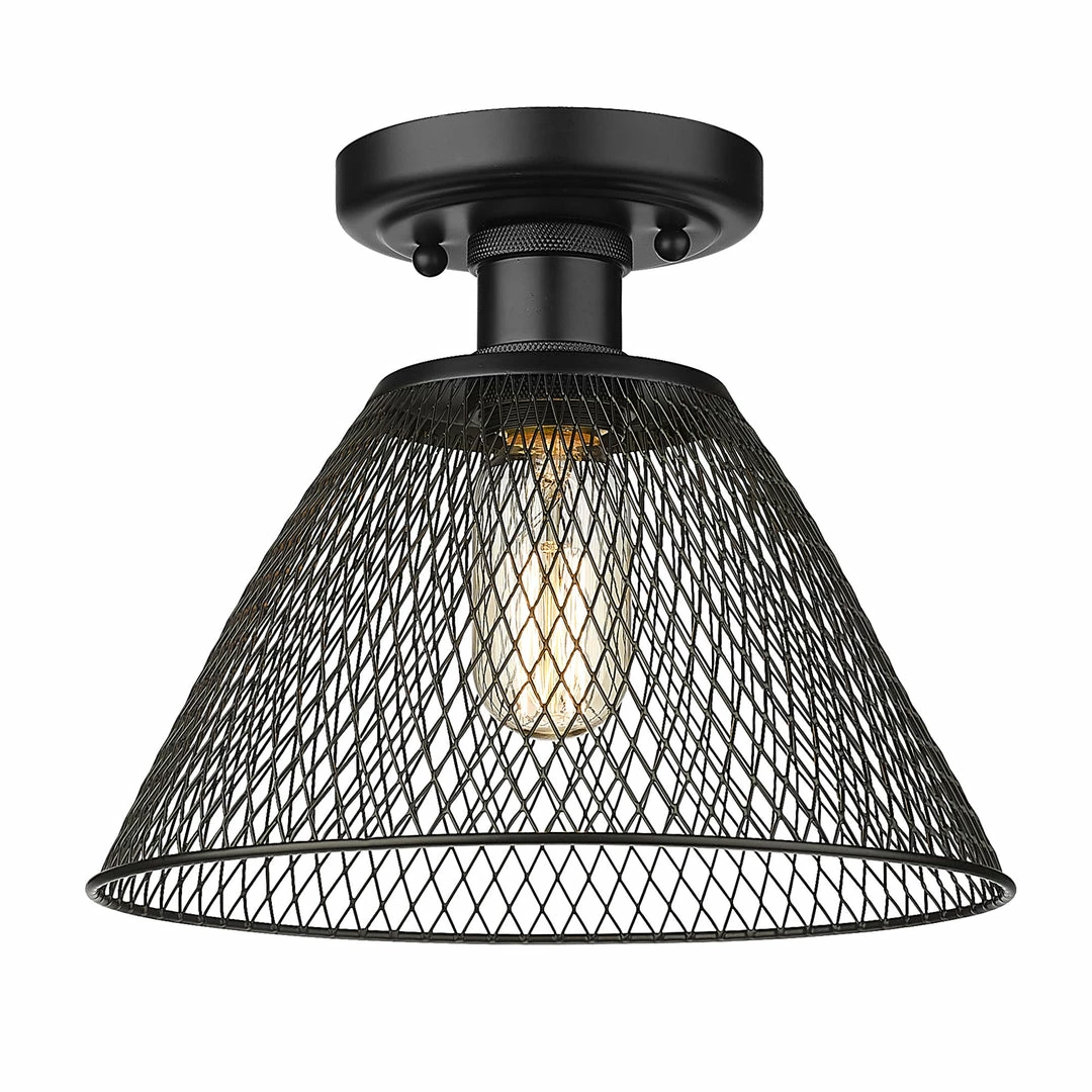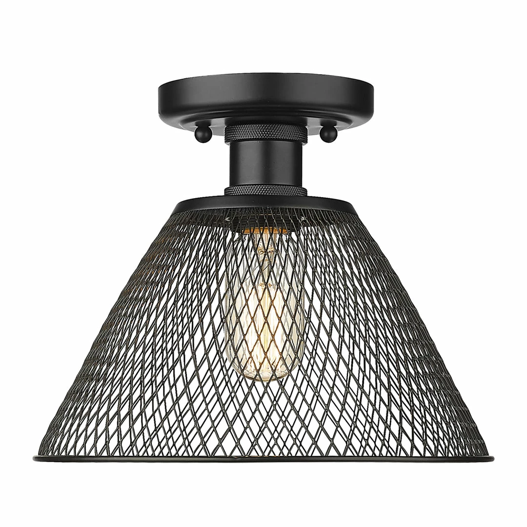 This cool, industrial design works well in a variety of interiors. Multiple finish options create an array of bright, stylish fixtures. Enhance your home’s style with the beautiful details of the Carver Collection. Safety-rated for damp locations, these semi-flush fixtures are ready for any room. Place this in a foyer, dining room, hallway, or entry. The mesh shades work best in industrial to farmhouse decors.