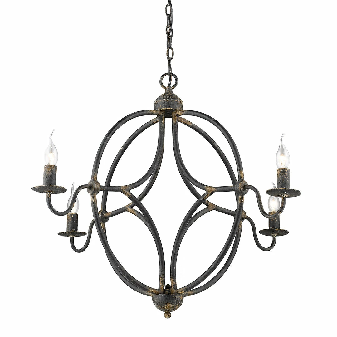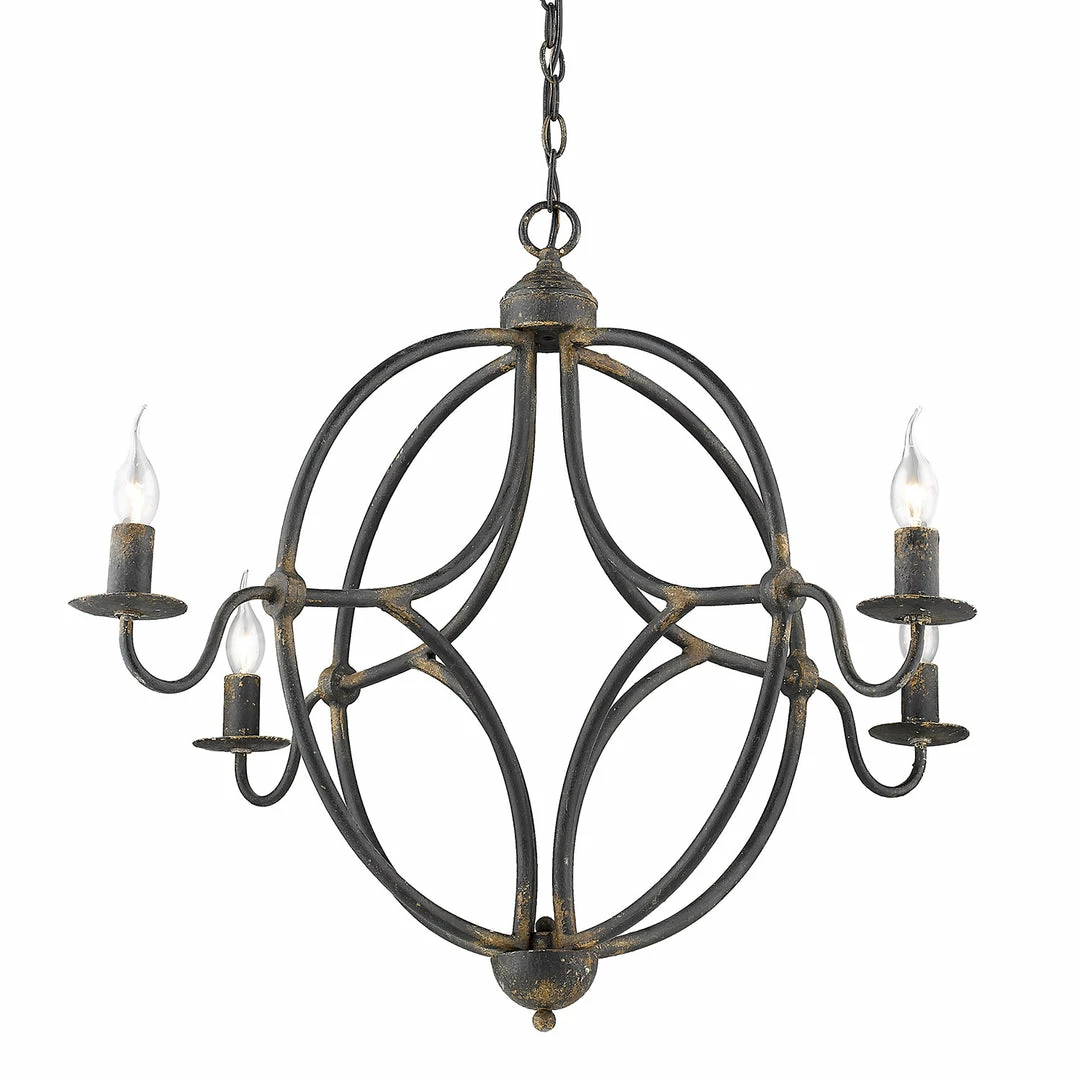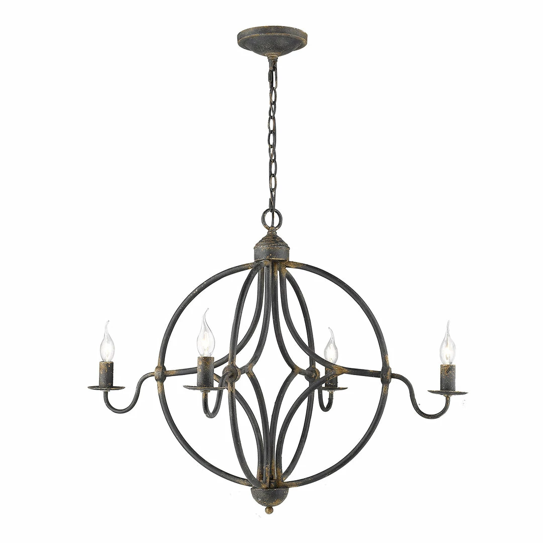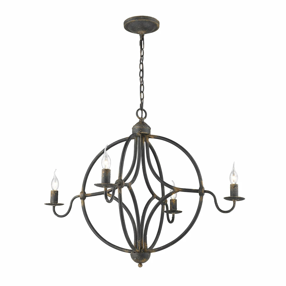The Caspian Collection features spherical chandeliers. This four-light chandelier is offered in a number of finishes that features a rusty patina that takes you back in time. The transitional style of this pendant will fit perfectly with your farmhouse design and it is available in two finishes. Chandeliers create stylish focal points and this 4-light is comfortably sized for a dining room, living room, or entry.
