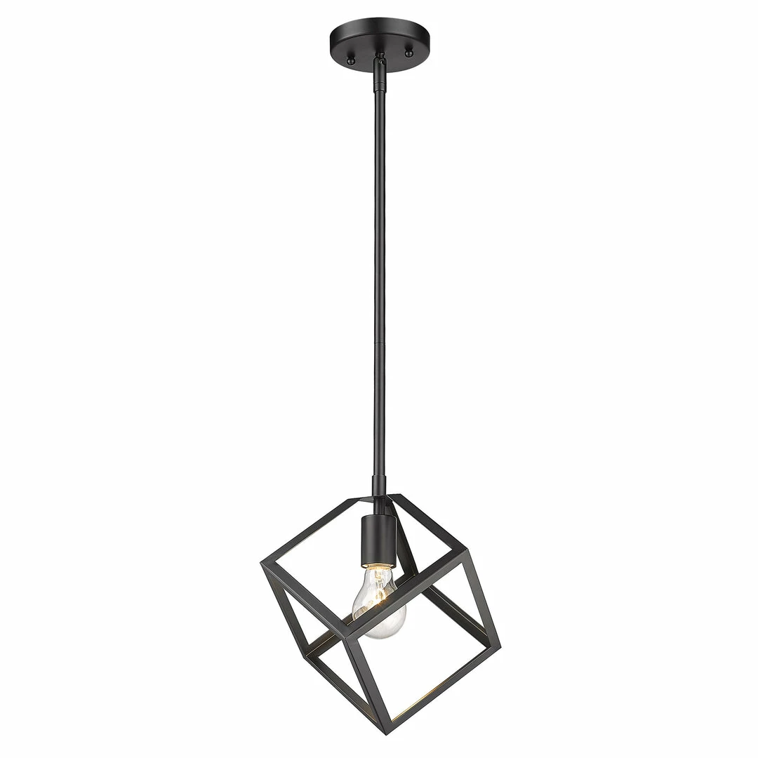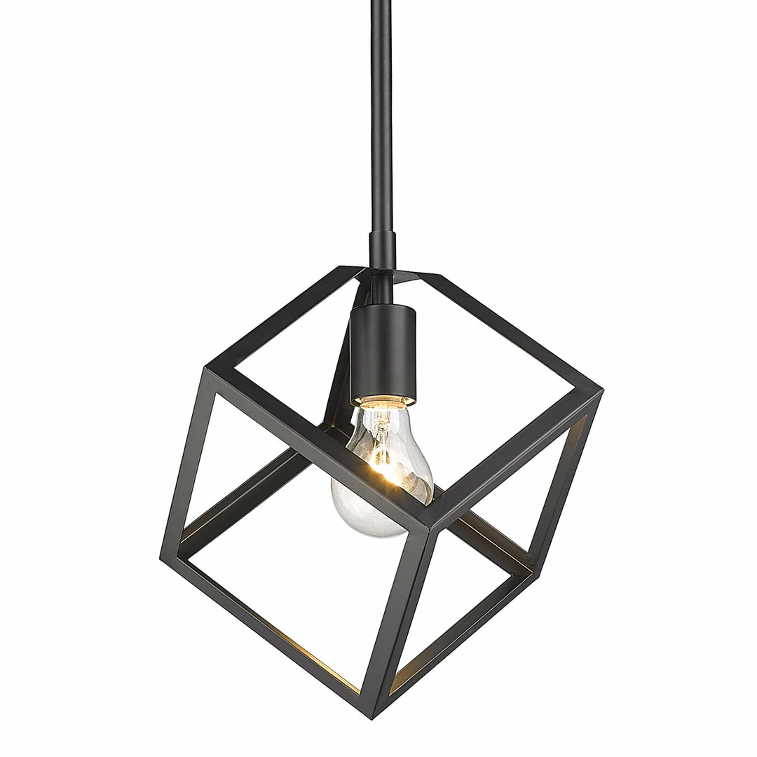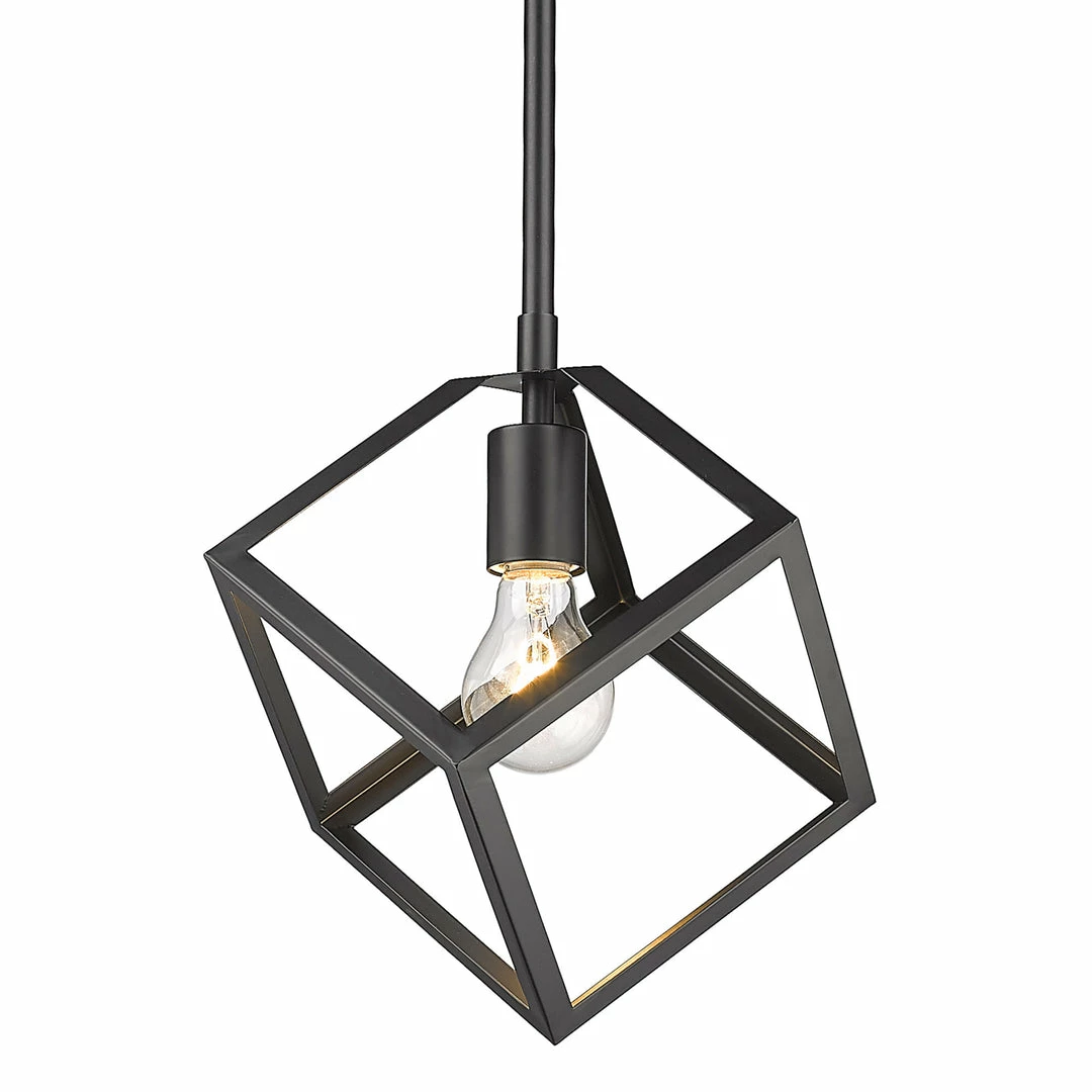 Strong, industrial lines and a unique geometric design are the basis of the Cassio series. Dramatic, double edges and bold lines make Cassio a focal point. As if frozen in space, an exposed lamp sits within a suspended 3-dimensional cube. Cassio is sure to add visual interest to any space. The open, glass-free cage lends an airy, playful tone while providing utility in the form of widespread light and easy bulb changes.