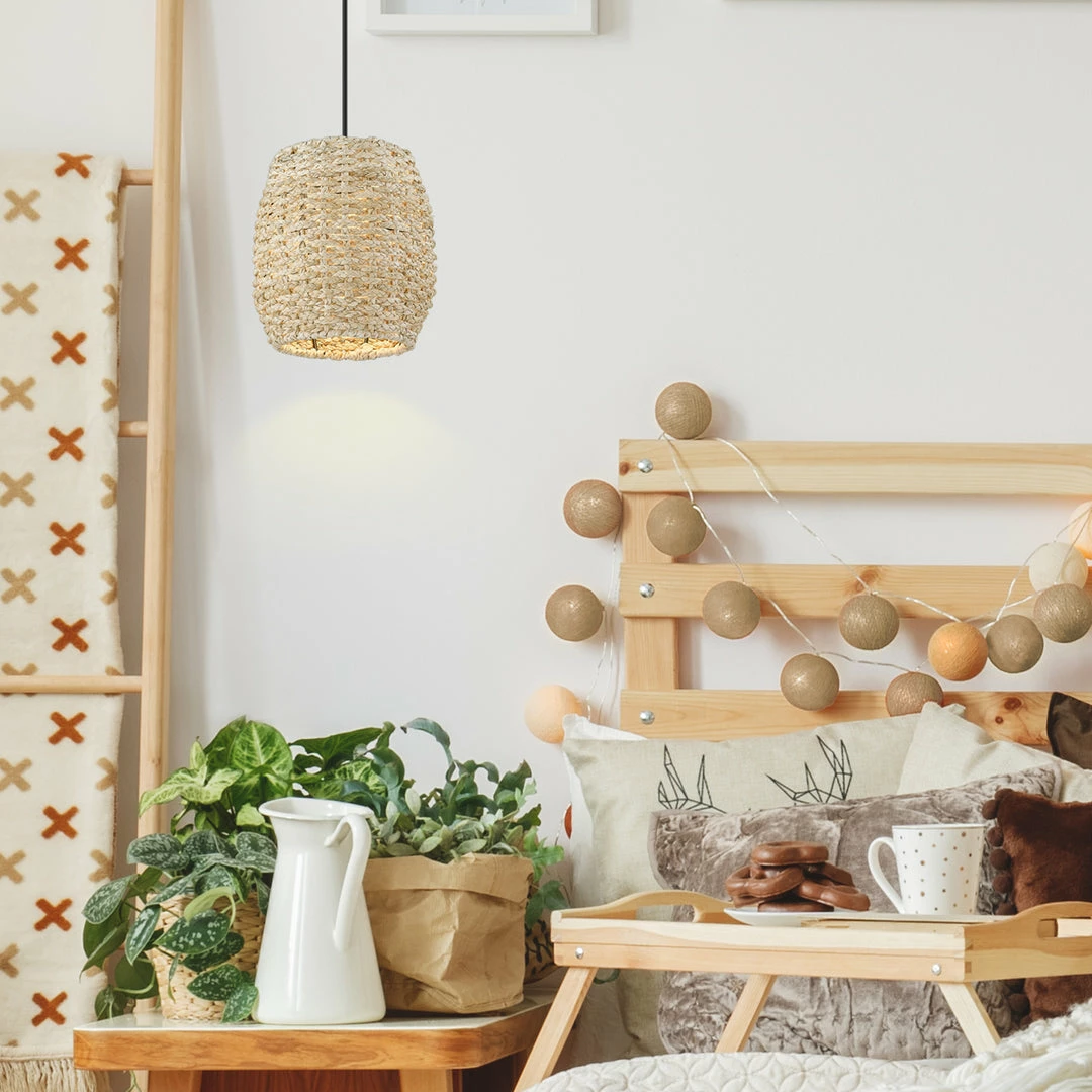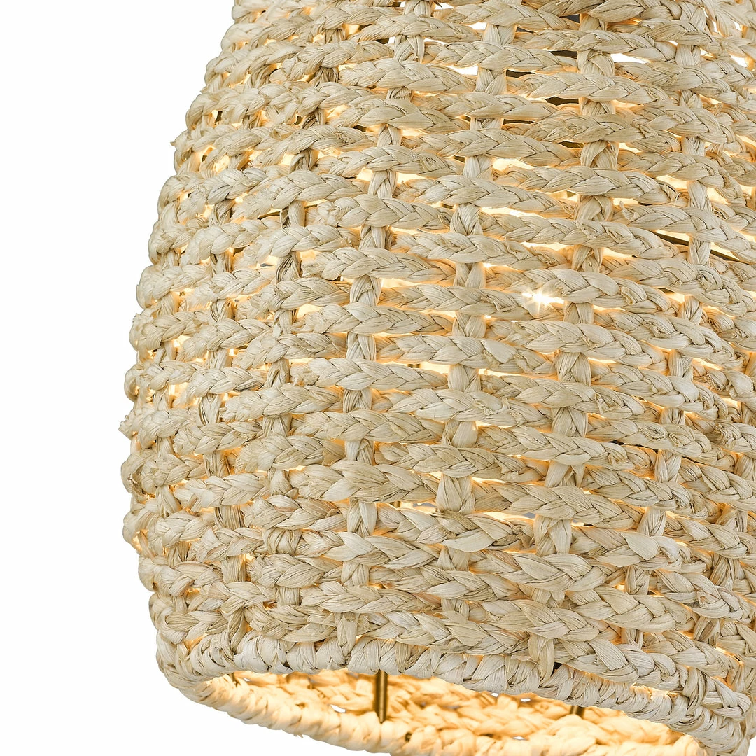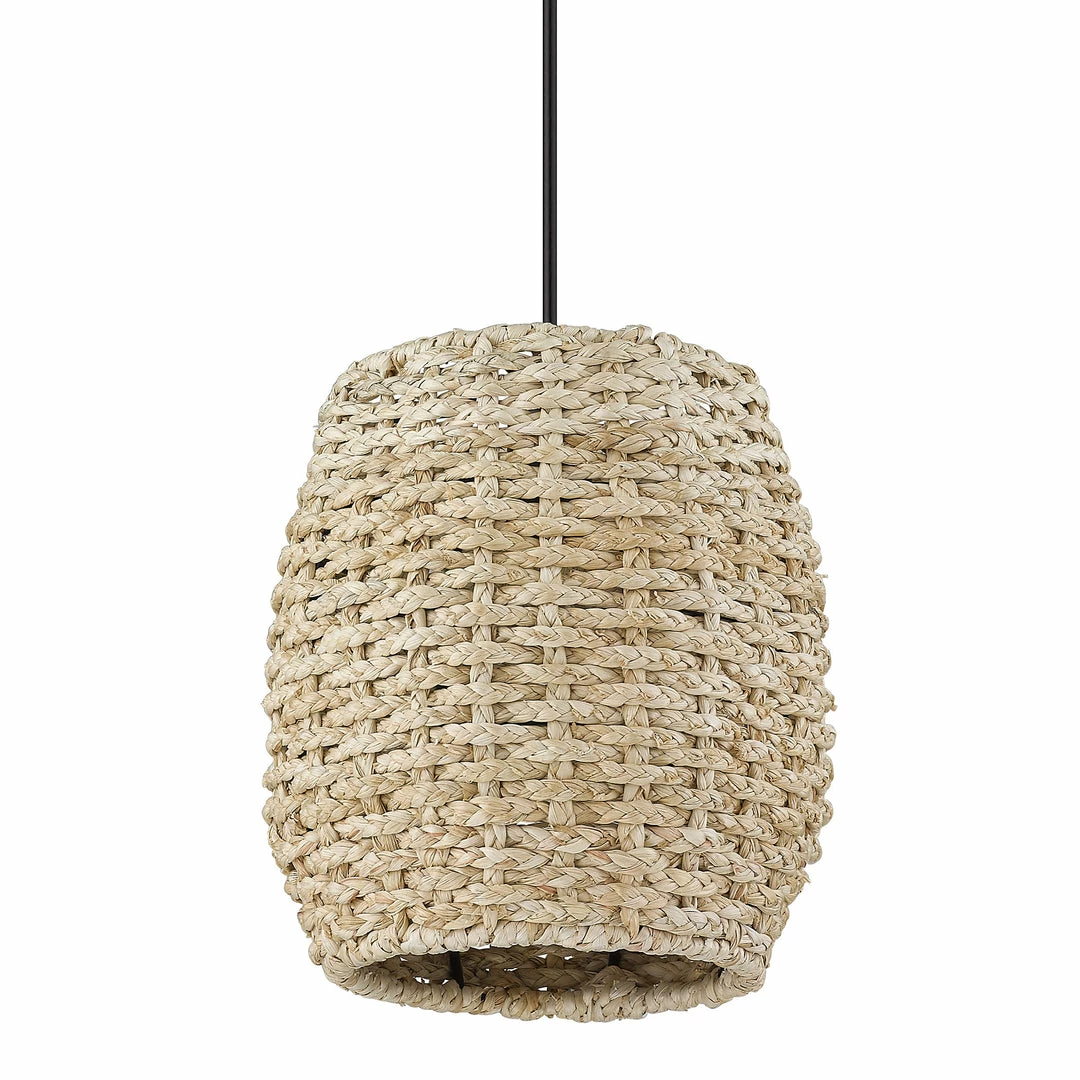 Inspired by traditional native basket making, our designers created Cheyanne to hang with rustic pride. Dried corn leaves were braided and then woven into a beautifully patterned shade. When lit, bulbs glow from within before spreading downward. Catch a peek at the elegant sockets through gaps in the shade. A contrasting matte black finish adds a refreshing modern appeal. This natural collection adds authenticity to any global space.