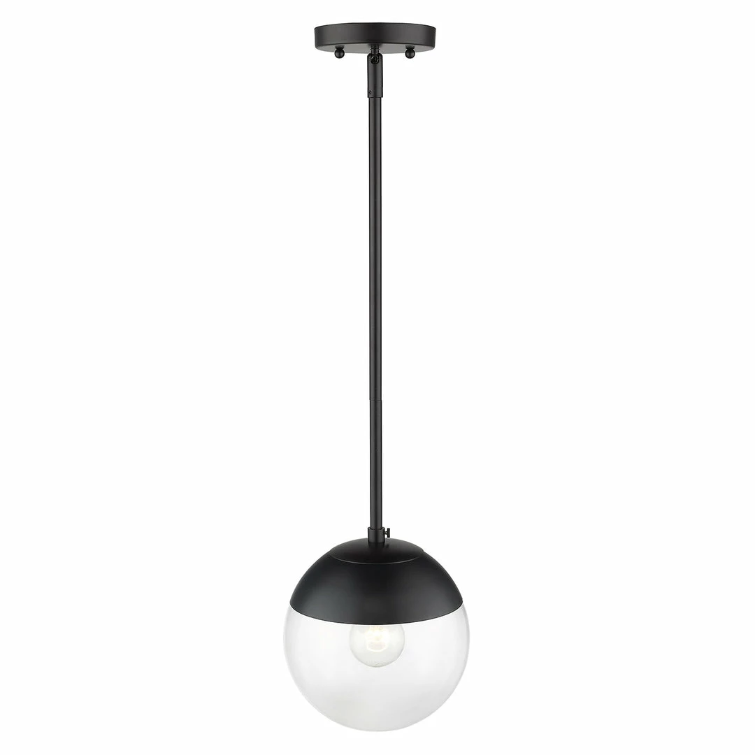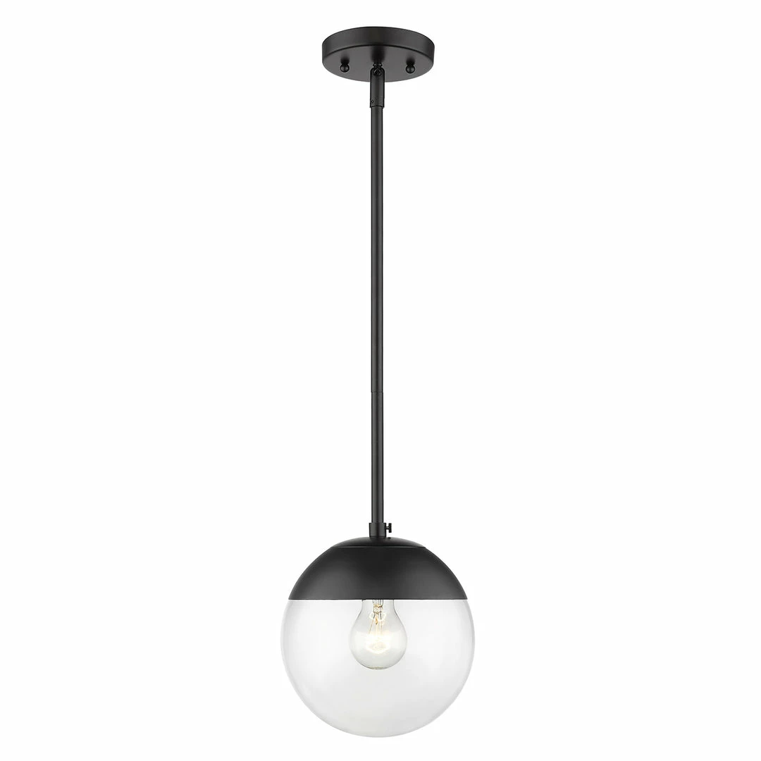 Mid-century modern design with a modern twist, these fashionable orbs are highly customizable. Available in clear or opal glass with plated chrome, pewter or brass or smooth matte black hardware. Caps are available in a number of accent colors to further customize your look. Choose colors and finishes that complement your existing dรฉcor or design your entire room around your favorite color combination. This small, rod-hung pendant features a may be hung individually or grouped over a bar.