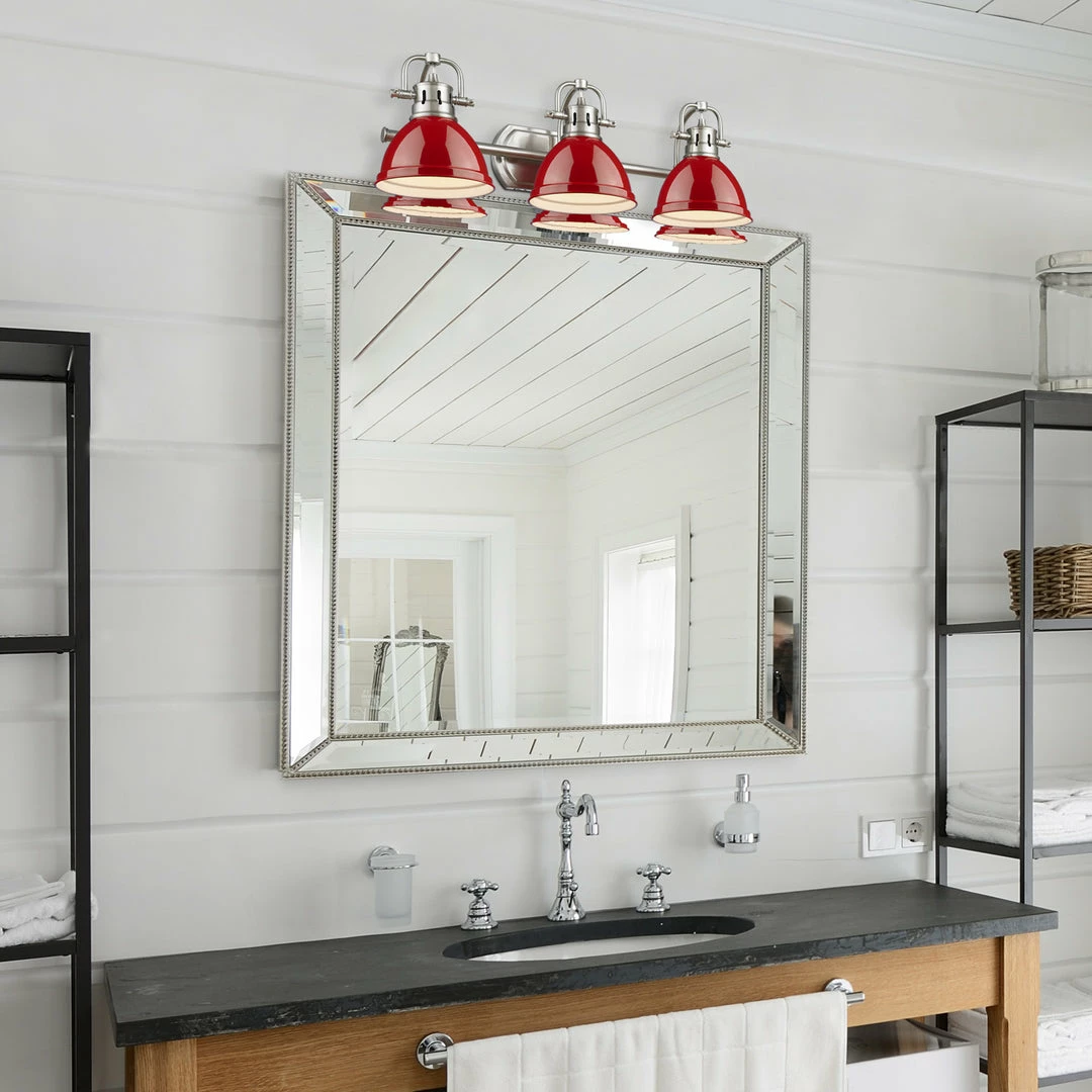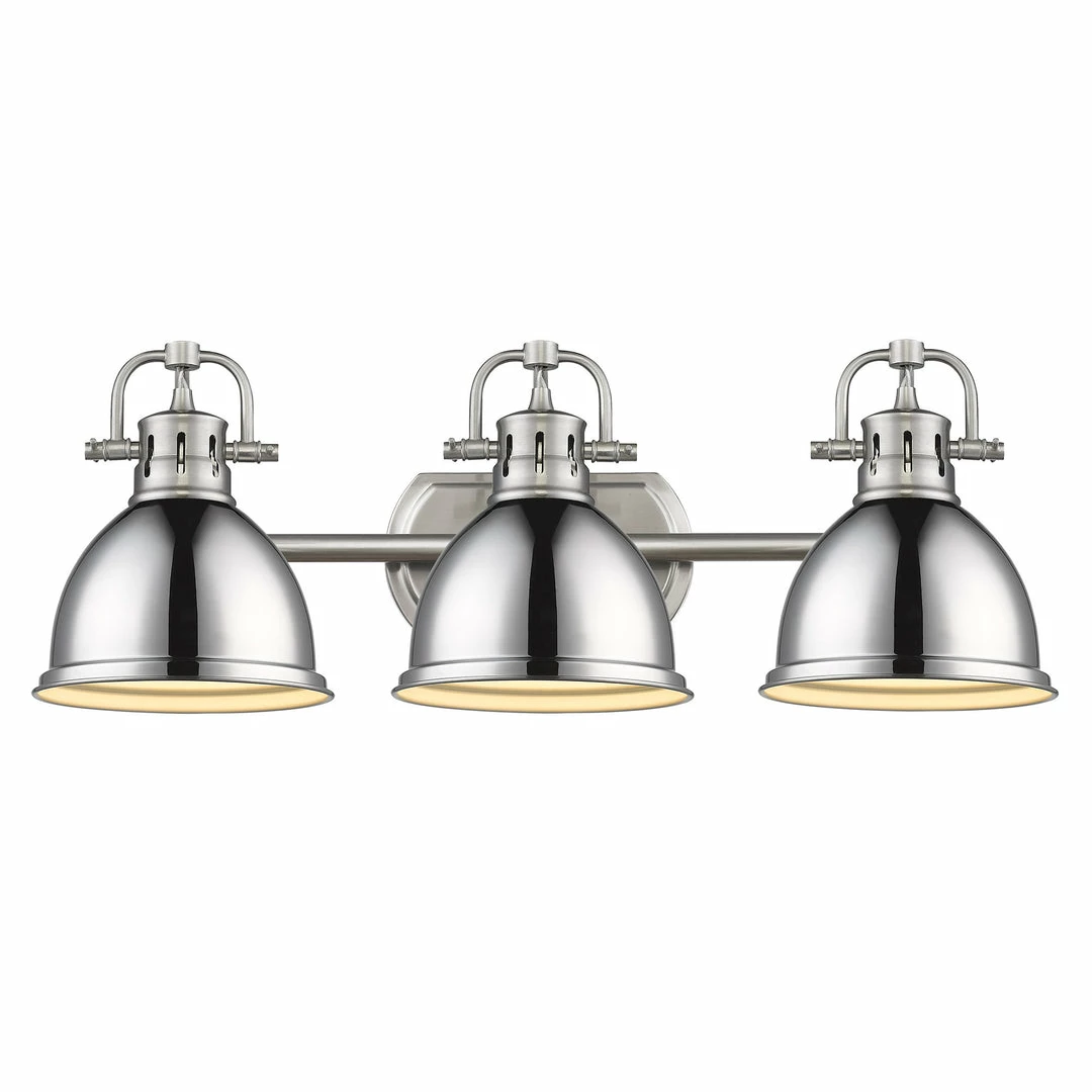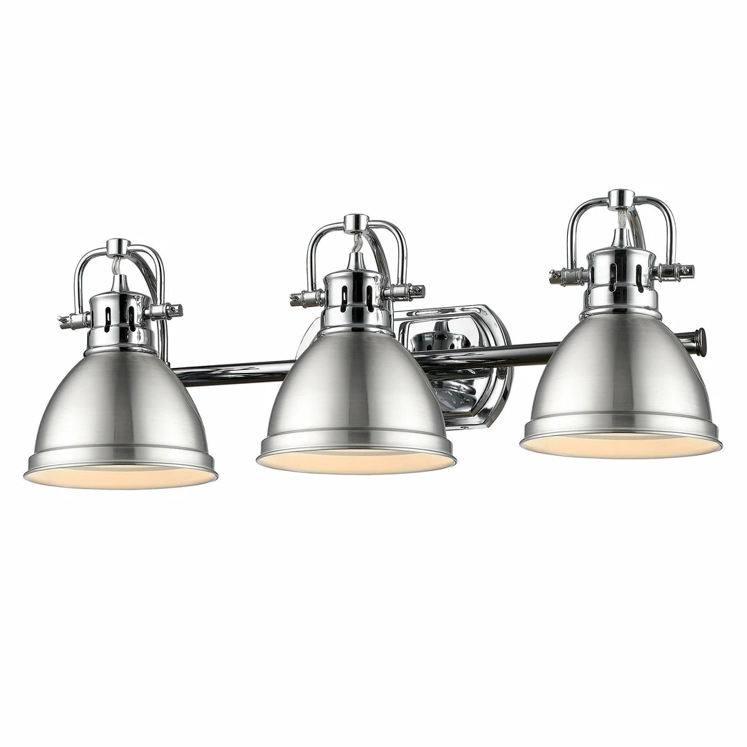The Duncan collection is contemporary style with an industrial feel. The collection features a variety of simple, traditional silhouettes that are a nod to a bygone era. Transform the look of your room with these classic, vintage-inspired fixtures. A variety of plated and painted metal shade finishes are offered in a select combination of options. This bath vanity is perfect for modern or contemporary style home decors. It is UL approved for damp locations like the bathroom.