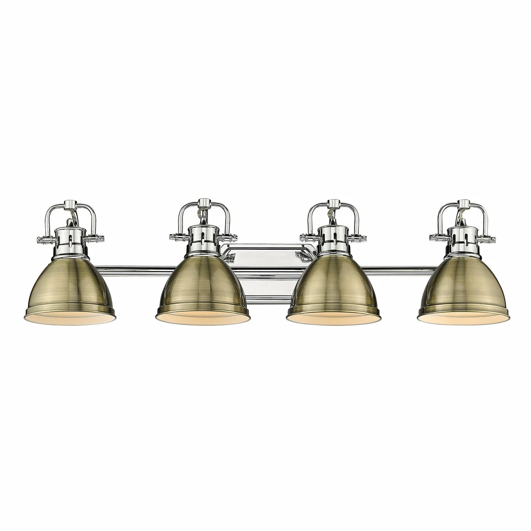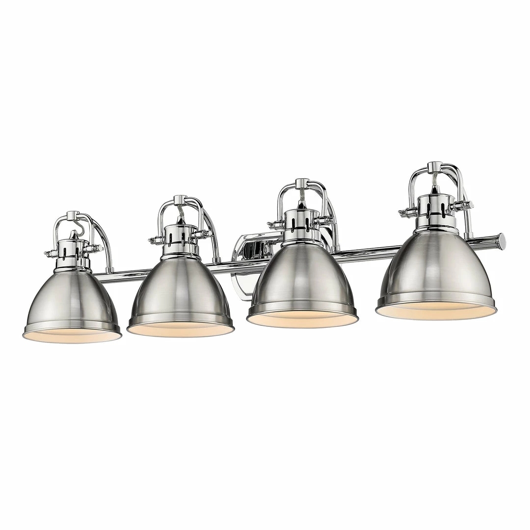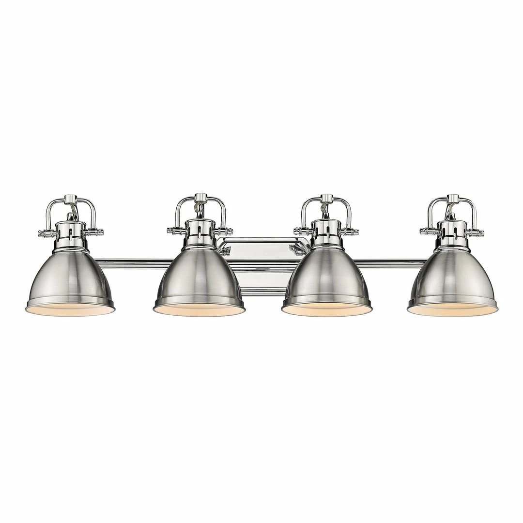 The Duncan collection is contemporary style with an industrial feel. The collection features a variety of simple, traditional silhouettes that are a nod to a bygone era. Transform the look of your room with these classic, vintage-inspired fixtures. A variety of plated and painted metal shade finishes are offered in a select combination of options. This bath vanity is perfect for modern or contemporary style home decors. It is UL approved for damp locations like the bathroom.
