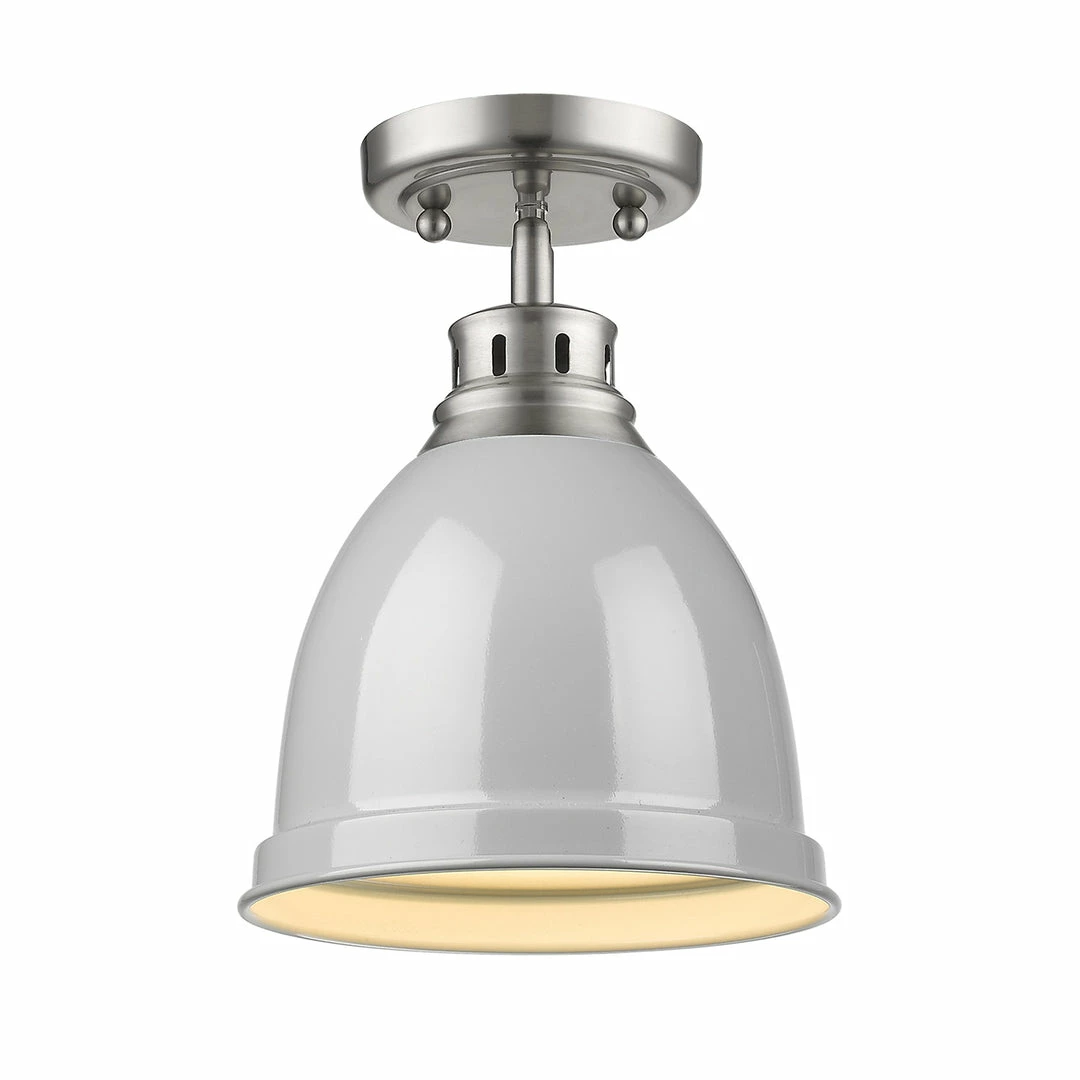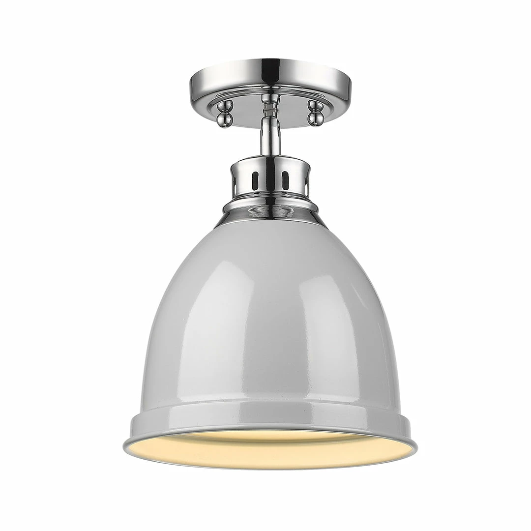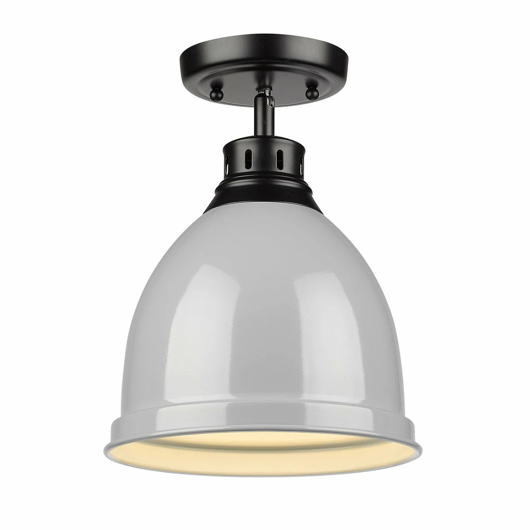 Transform the look of your room with this classic, vintage-inspired fixture, the Duncan collection is contemporary style with an industrial feel. The collection features a variety of simple, traditional silhouettes that are a nod to a bygone era. A variety of plated and painted metal shade finishes are offered in choice combinations. This flush mount is UL approved for use in a bathroom, but also works perfectly in a kitchen, living room, entry, or hallway. The style is perfect for modern or contemporary home decors.