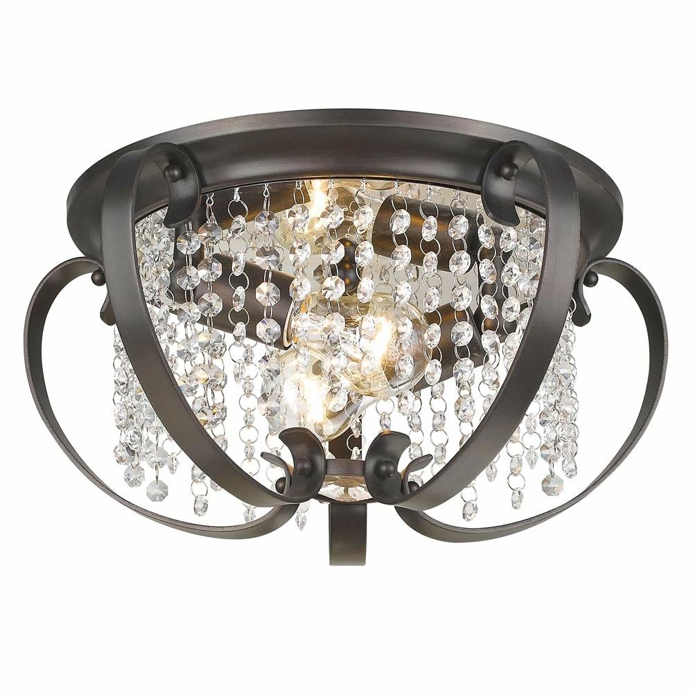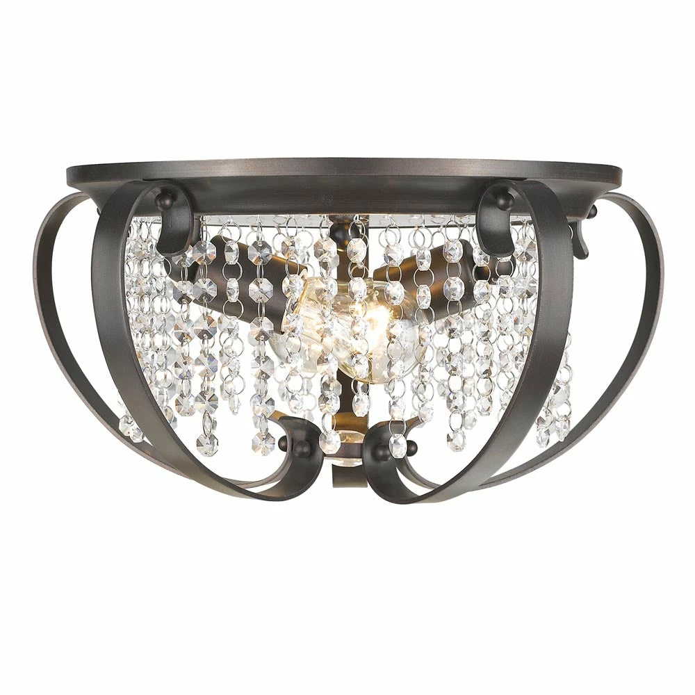 Beauty, glamour and fantasy are the inspirations behind this enchanted collection, the Ella collection lends charm and romance to a room. The style is transitional, but ideal for eclectic and contemporary room decors. Riveting, multi-faceted clear crystal accents twinkle vivaciously. Offered in multiple finishes. This 2-light flush mount is great in a foyer, hall or bedroom.
