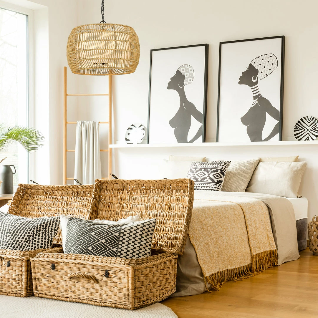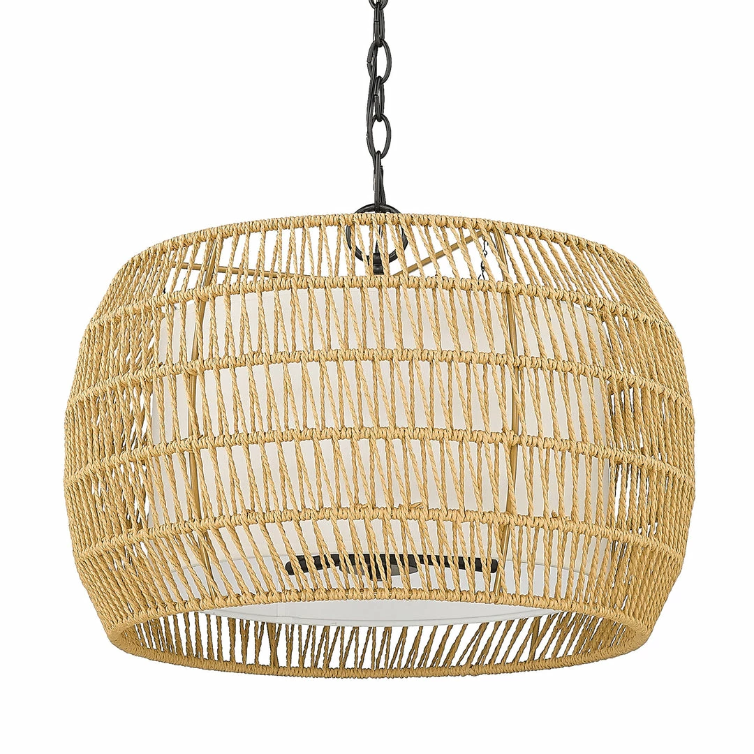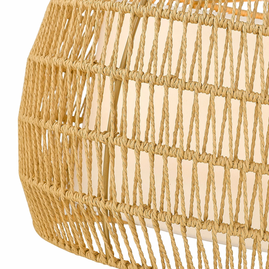 The epitome of understated elegance, the Everly collection showcases rustic, natural beauty. The series takes inspiration from the airiness of bohemian decor. Handwoven, the braided rattan rope protectively shields an inner Modern White Shade. The interior shade diffuses the bright lamps, and the outer rattan shade has a playful, intricate pattern.