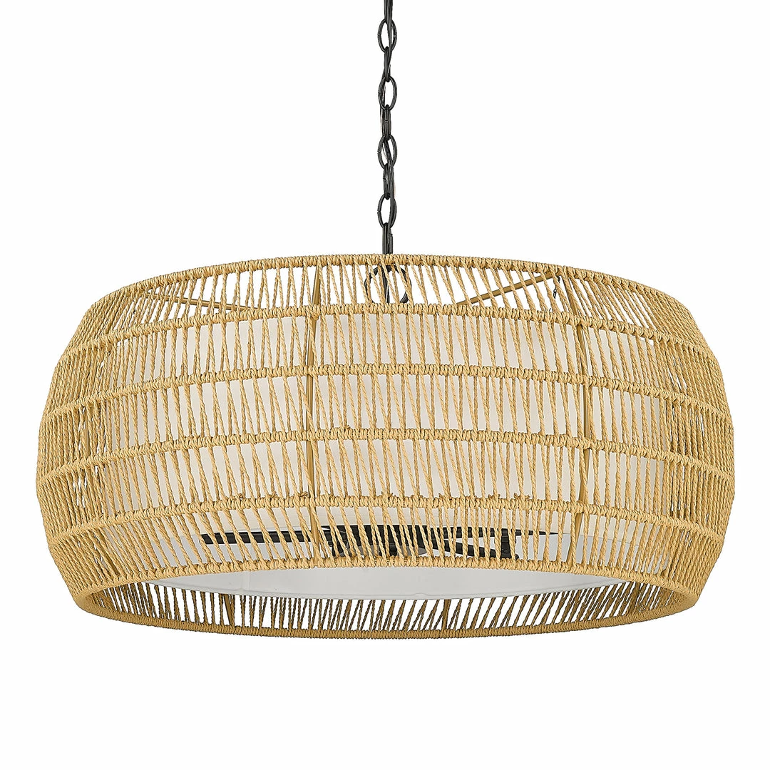 The epitome of understated elegance, the Everly collection showcases rustic, natural beauty. The series takes inspiration from the airiness of bohemian decor. Handwoven, the braided rattan rope protectively shields an inner Modern White Shade. The interior shade diffuses the bright lamps, and the outer rattan shade has a playful, intricate pattern.