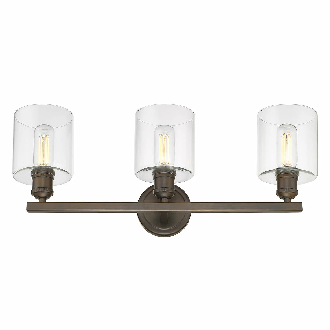 Fisher has a cool industrial design that is the perfect finishing touch for a traditional to modern bathroom. Bring out all of your decor’s refined details with this durable and subtly elegant design. This 3-light bath fixture is safety rated for all damp locations, and is easy to install.
