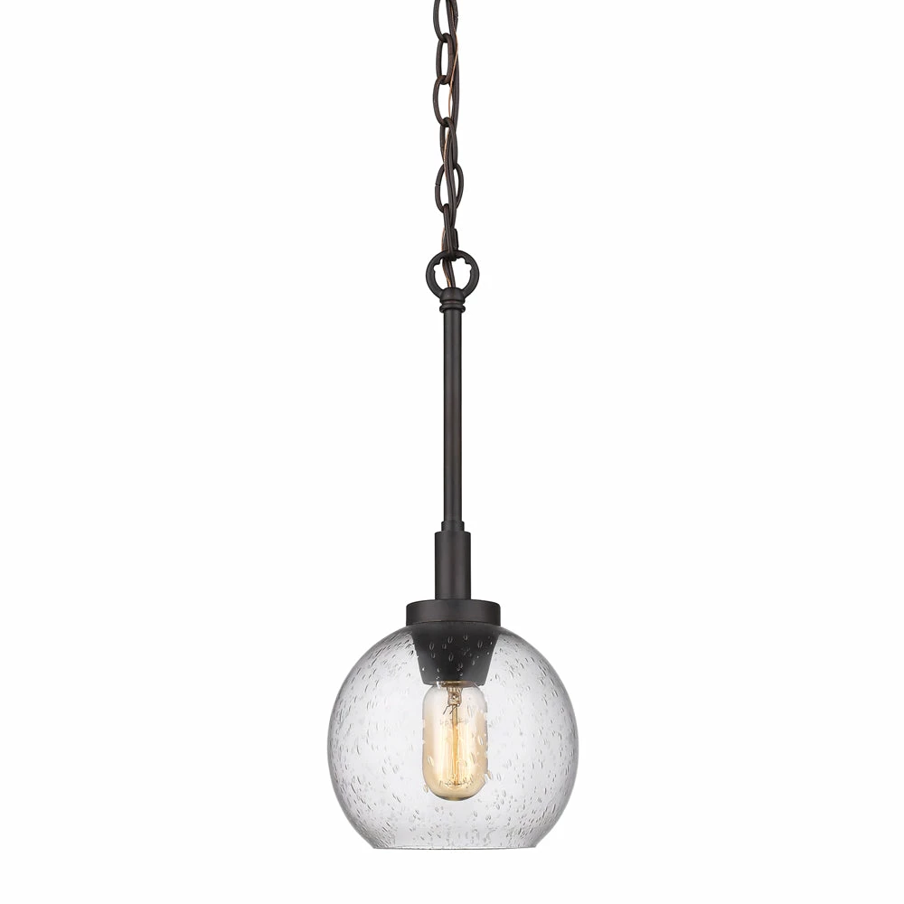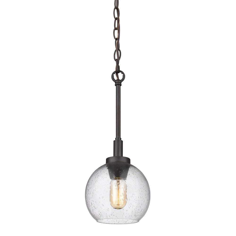 A number of sophisticated finishes complement the available selection of glass shades and heighten the rustic industrial look of the Galveston Collection. This strikingly masculine collection is perfect for vintage farmhouse and industrial decors. This mini pendant provides soft task lighting, fully illuminating a kitchen bar or countertop.
