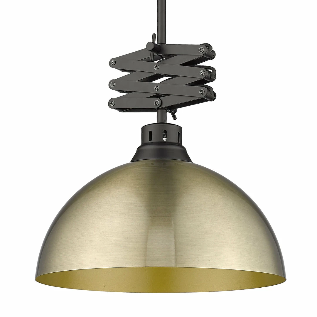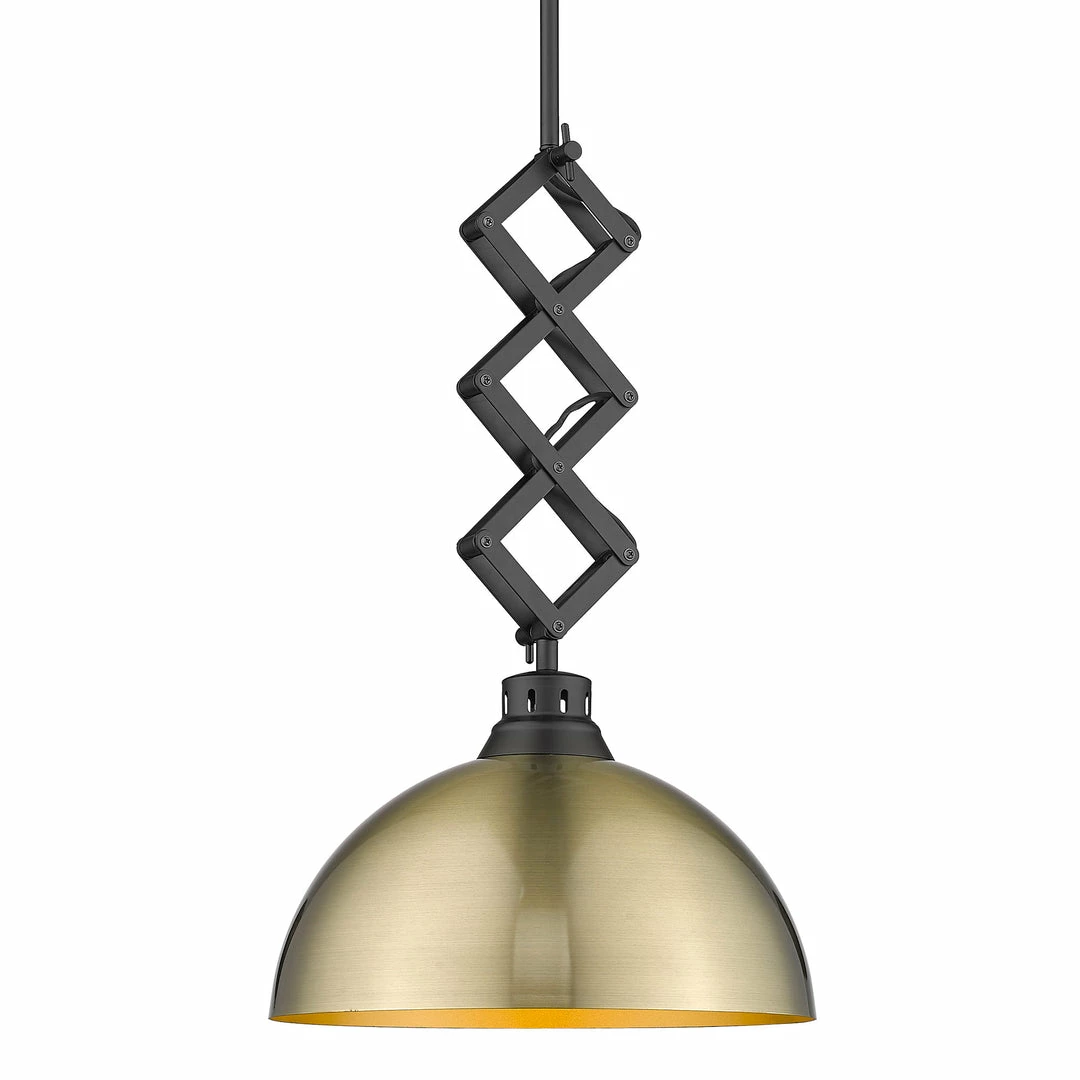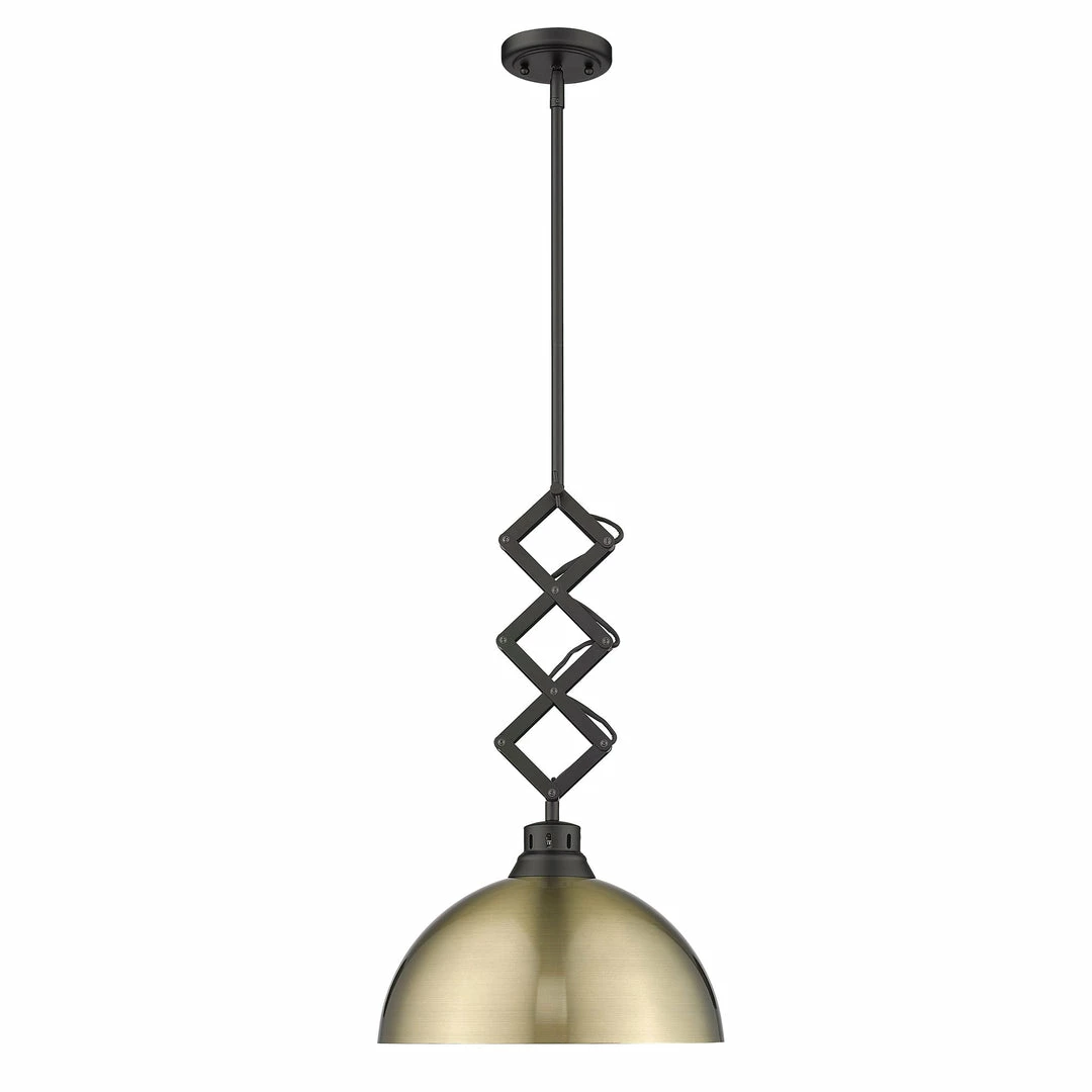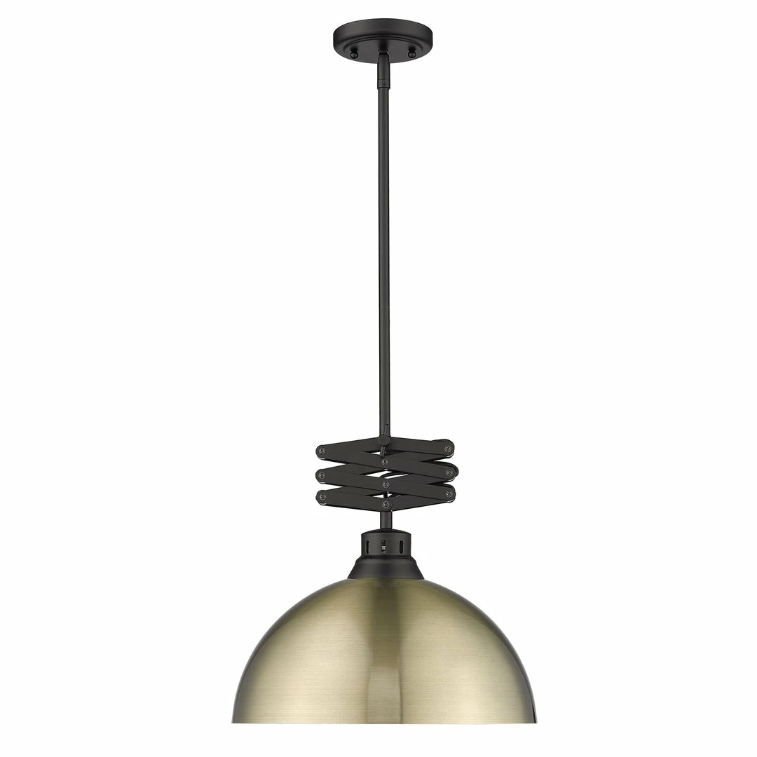 This industrial-inspired design blends old and new. Hawthorn features accordion style components which can be extended to lower or shortened to raise the pendant to your preferred position. Elongated cut outs on the steel shade are reminiscent of vintage machinery. The pendant can be adjusted for style and focused task lighting. The extending feature can be locked in place with thumbscrews for style and function. The collection is available in a choice-selection of finish and shade color combinations. The interior of the shade is painted to match the exterior.