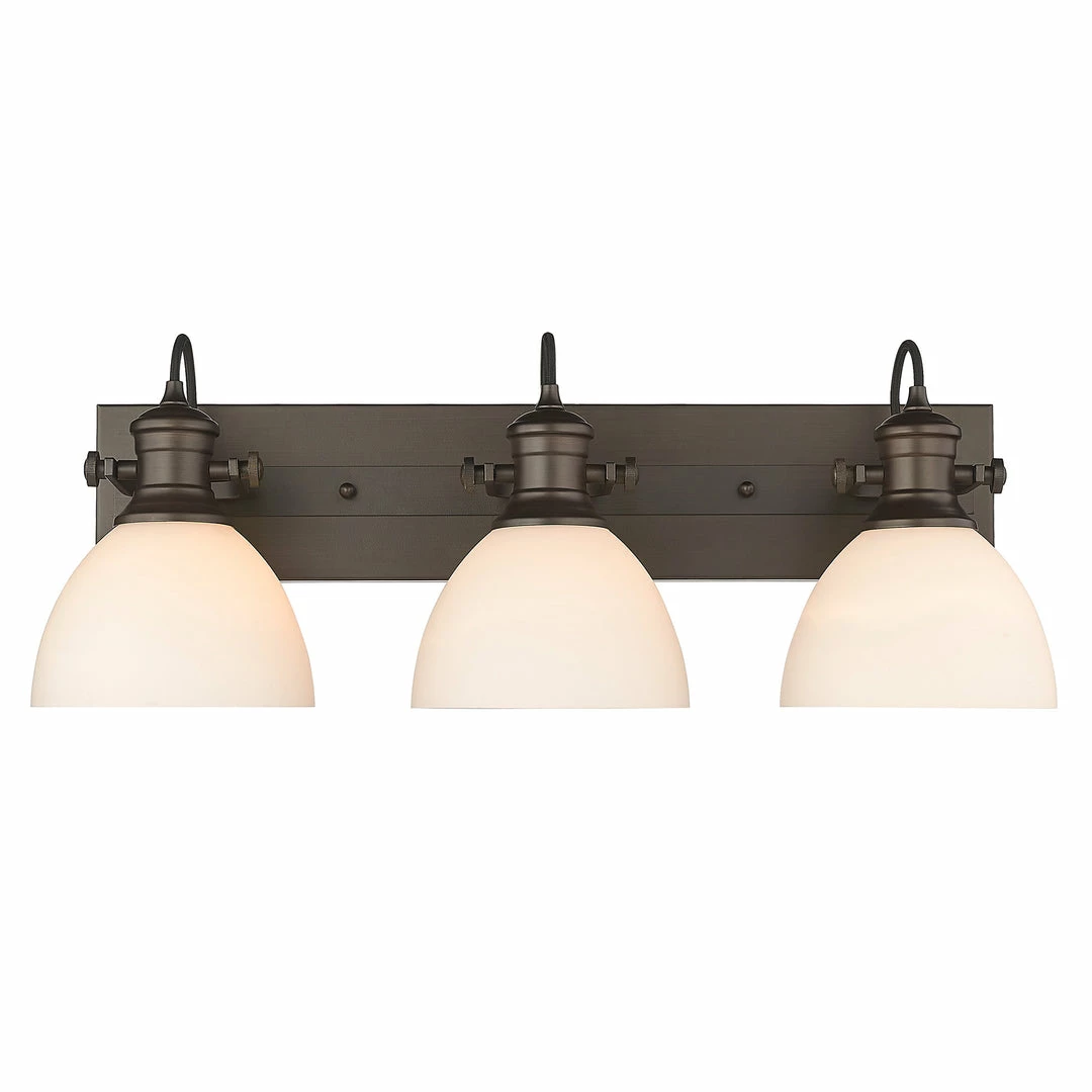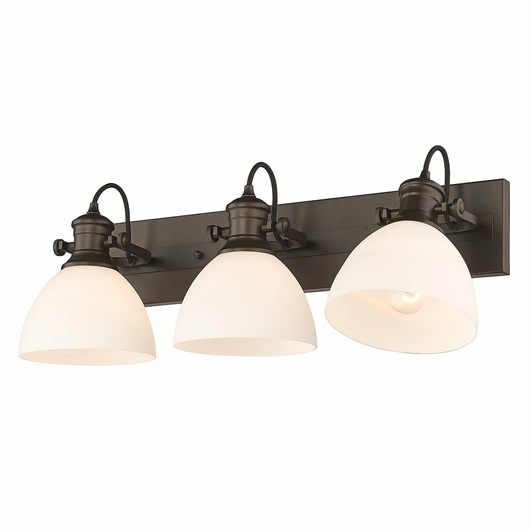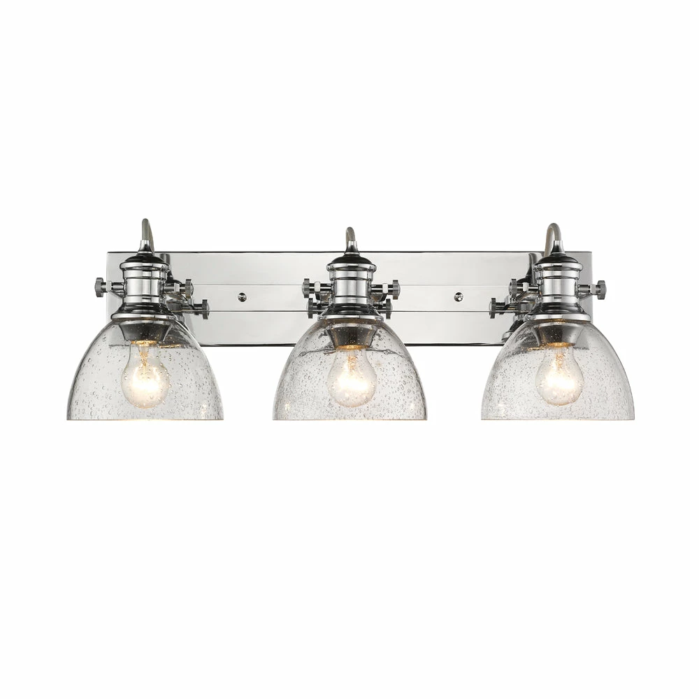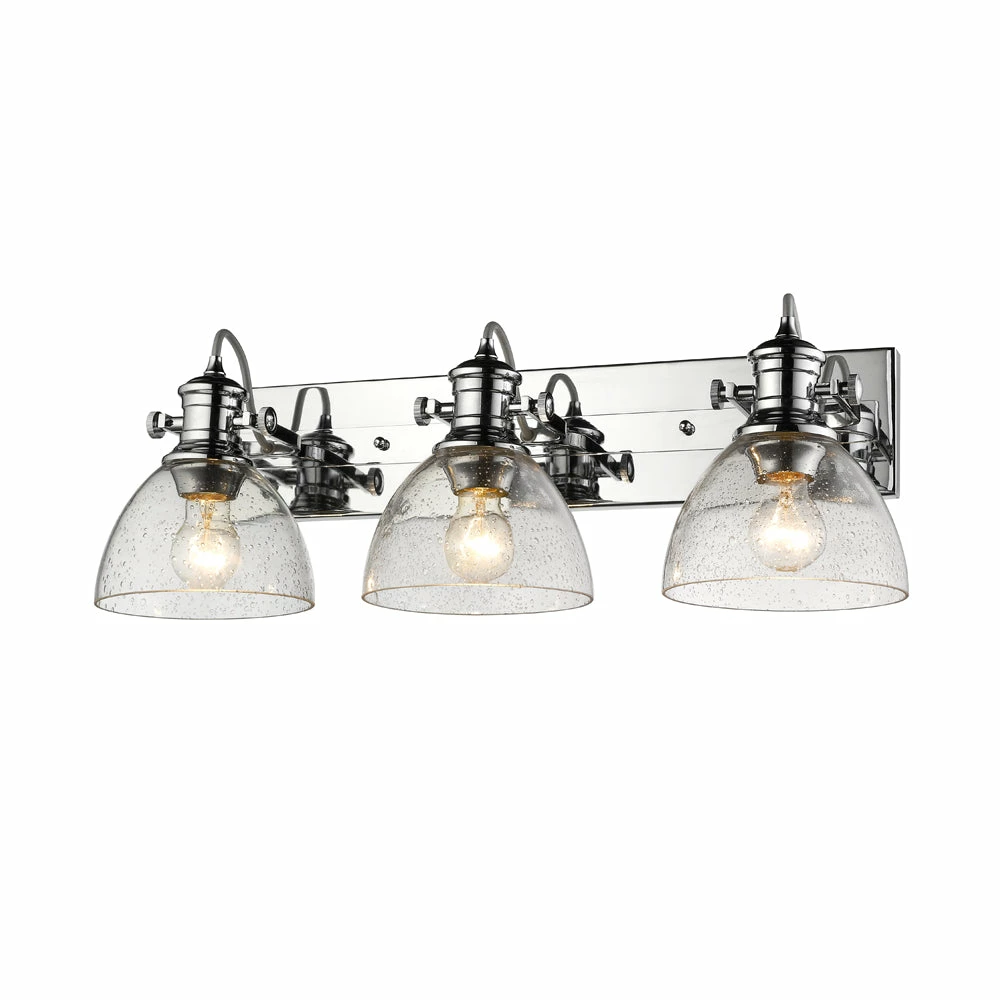 Offered in a variety of smooth finishes, with select glass options, Hines is suitable for a variety of decors. The transitional style is a marriage of traditional silhouettes with modern finishes. Enjoy a curated selection of finish and glass combinations with this series. This 3-light bath vanity is UL approved damp locations.