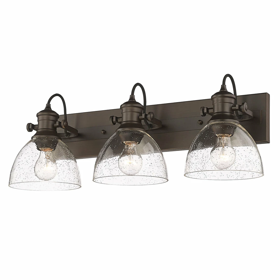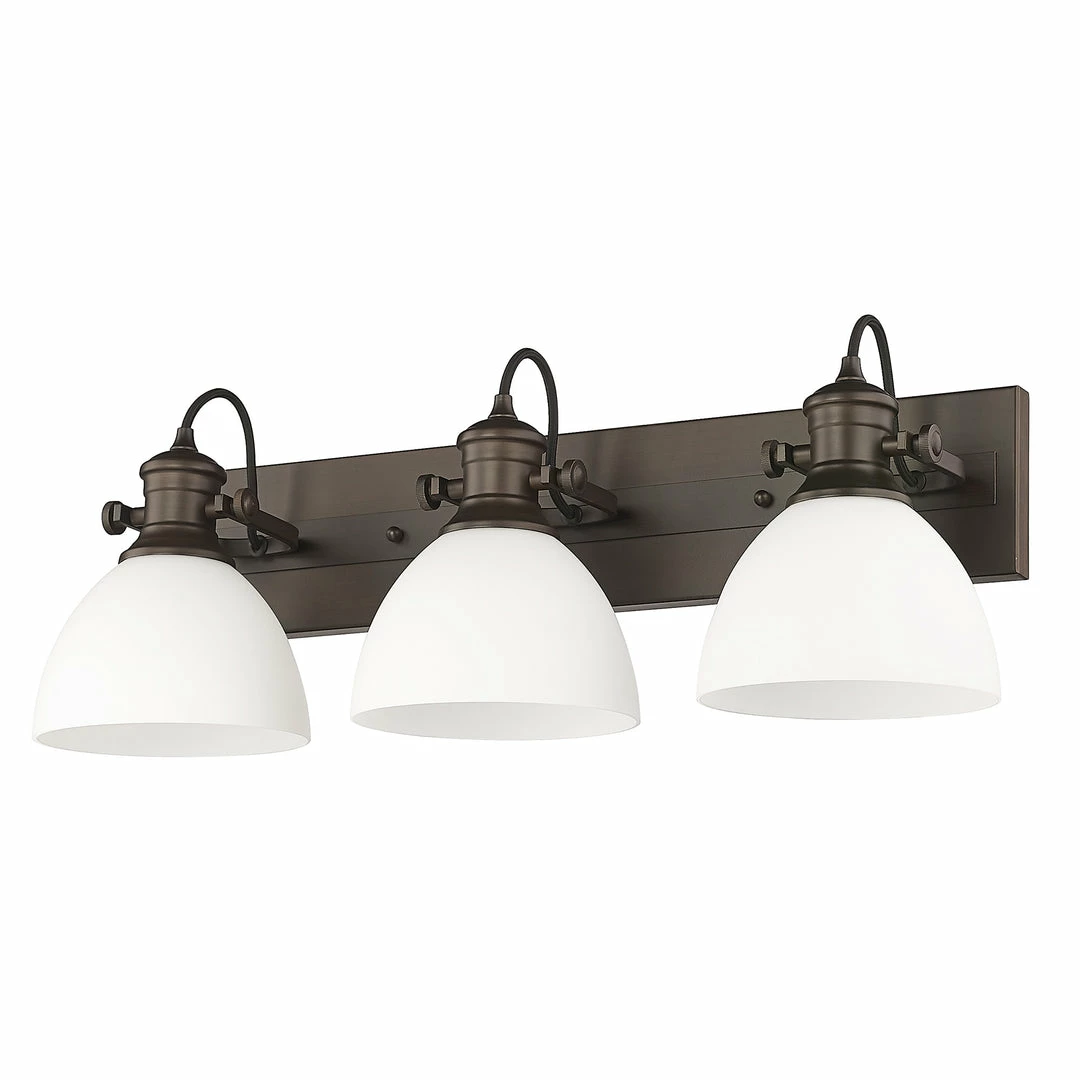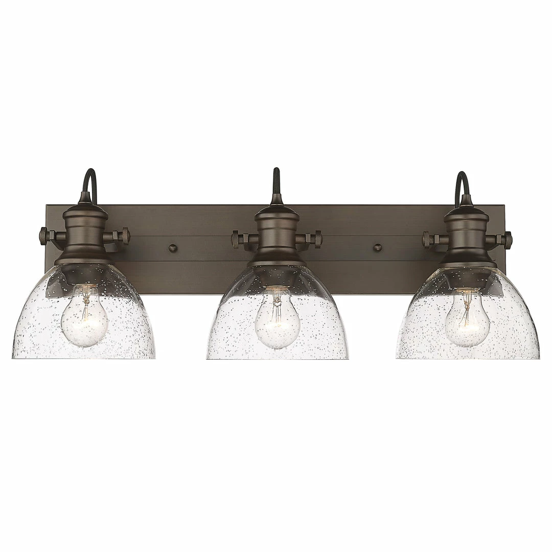 Offered in a variety of smooth finishes, with select glass options, Hines is suitable for a variety of decors. The transitional style is a marriage of traditional silhouettes with modern finishes. Enjoy a curated selection of finish and glass combinations with this series. This 3-light bath vanity is UL approved damp locations.