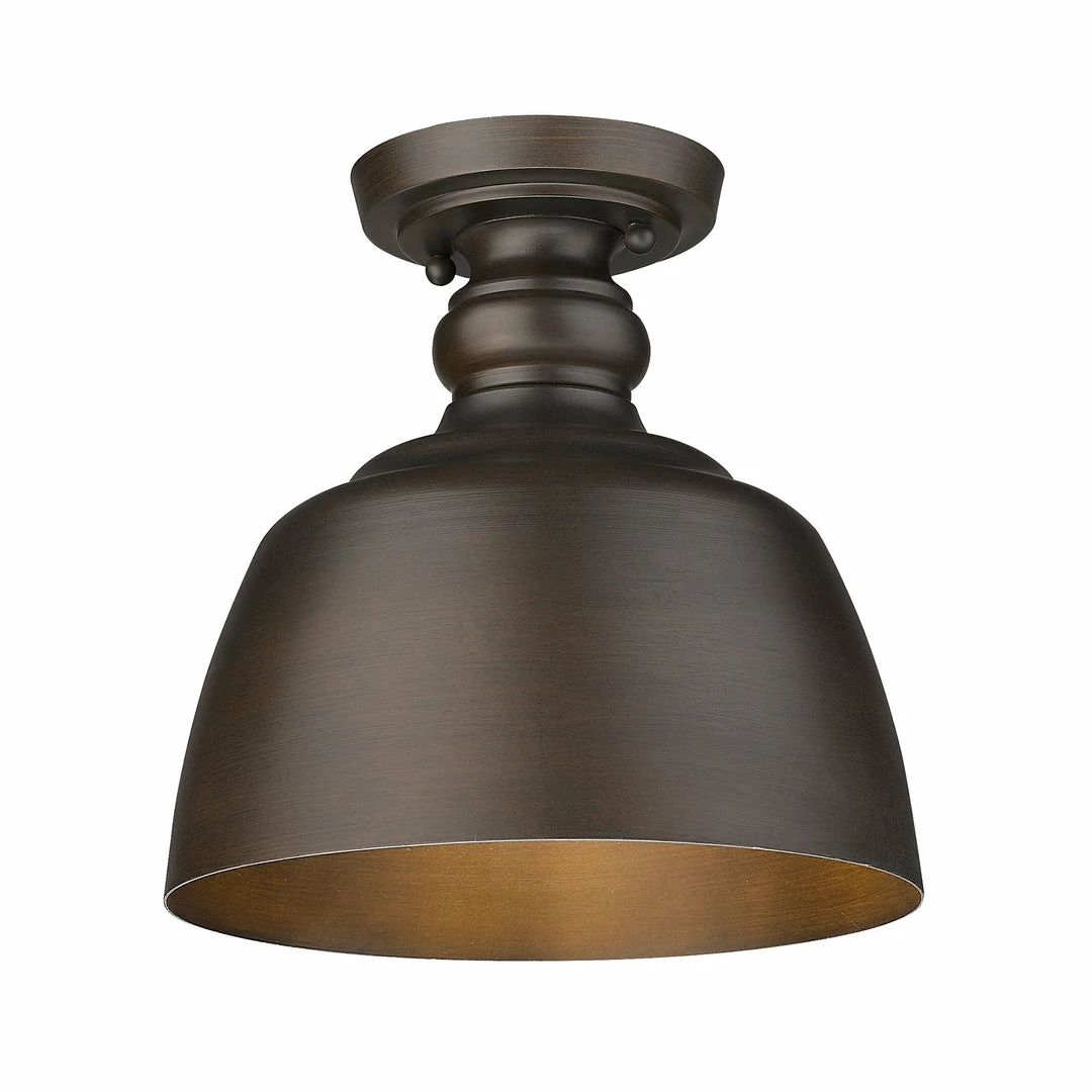 Capture authentic farmhouse charm with the Holmes Collection. These transitional metal fixtures have classic bell-shaped silhouettes that pay homage to history. A subtle Rubbed Bronze finish adds character and reinforces the look. The interiors of the metal shades are painted to match the exteriors. Place these damp-rated lights in any interior space.