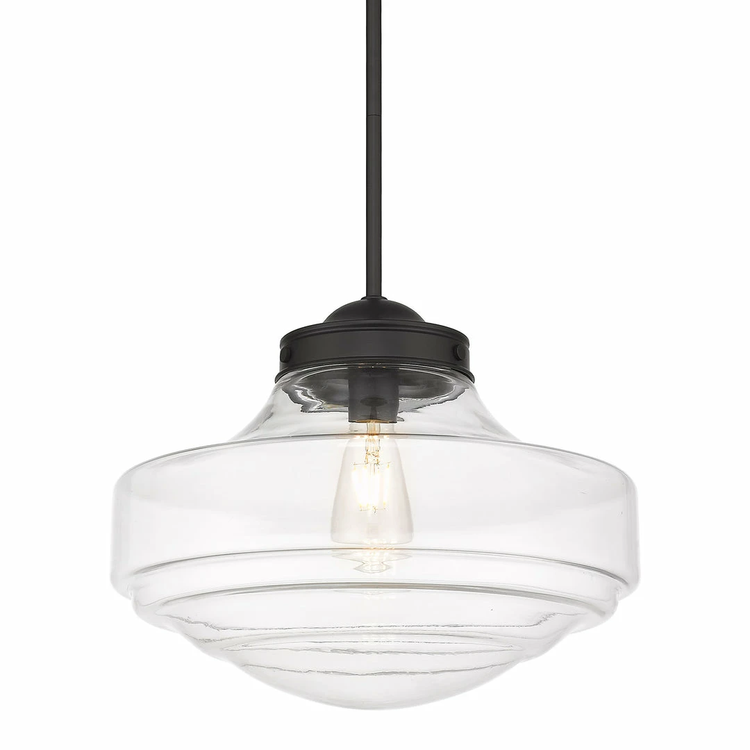 Vintage glass with a chic, retro silhouette creates the classic look of the Ingalls Collection. Blown by artisans into bold, striking molds, the glass creates a contemporary look. Inspired by old drive-ins and train car-style diners, these school-house fixtures are sure to turn heads. The contrasting matte black finish adds a modern update.